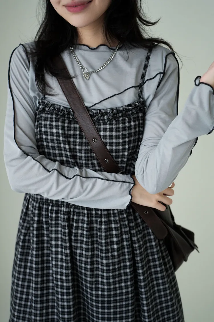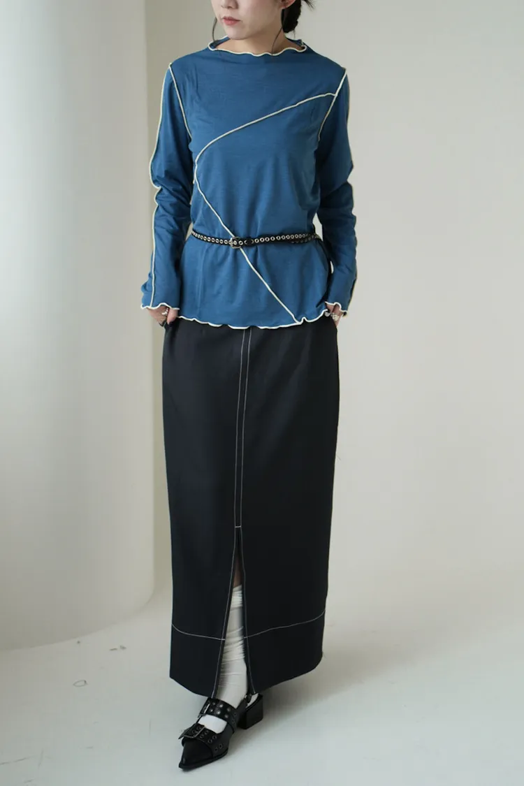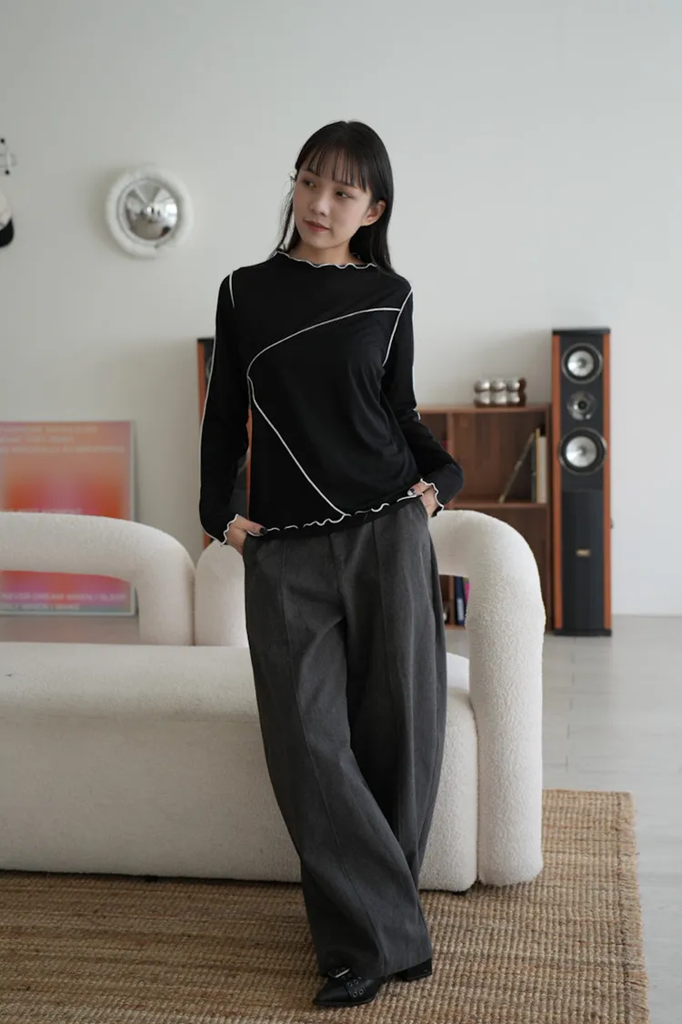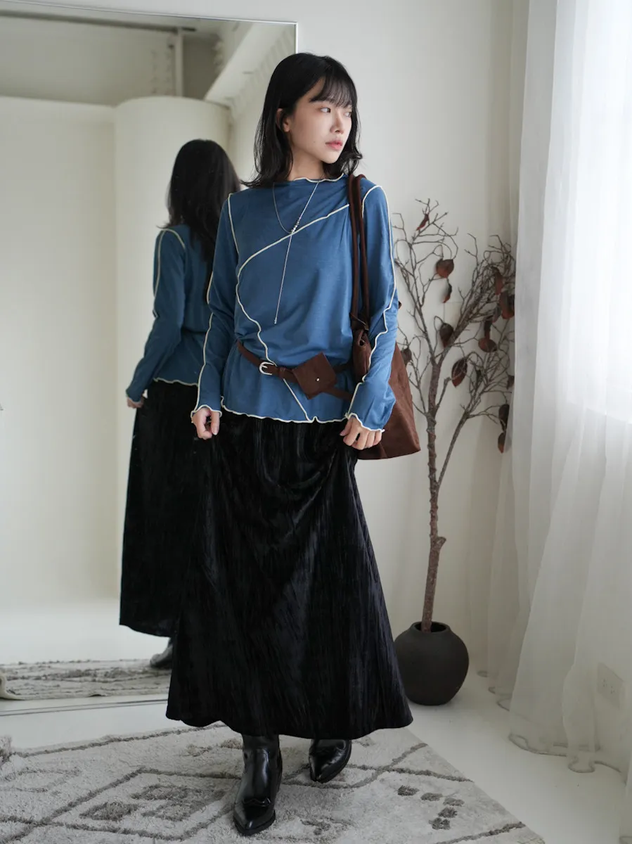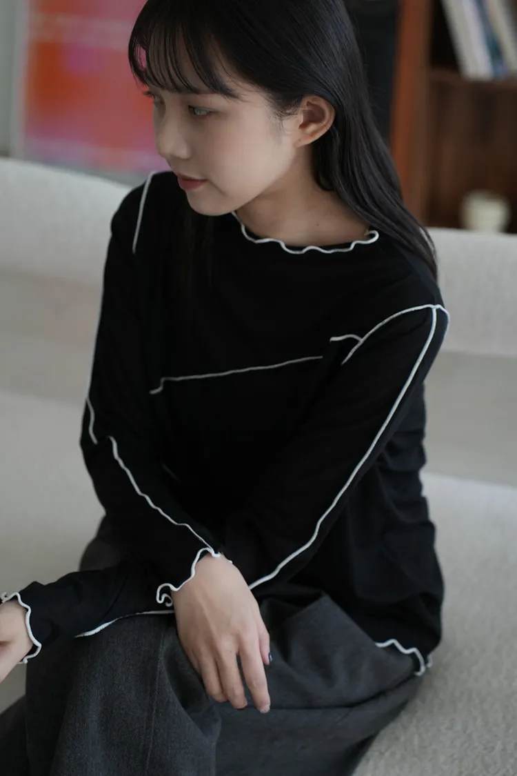日韓同時獲得 斜線滾邊打底上衣 4color