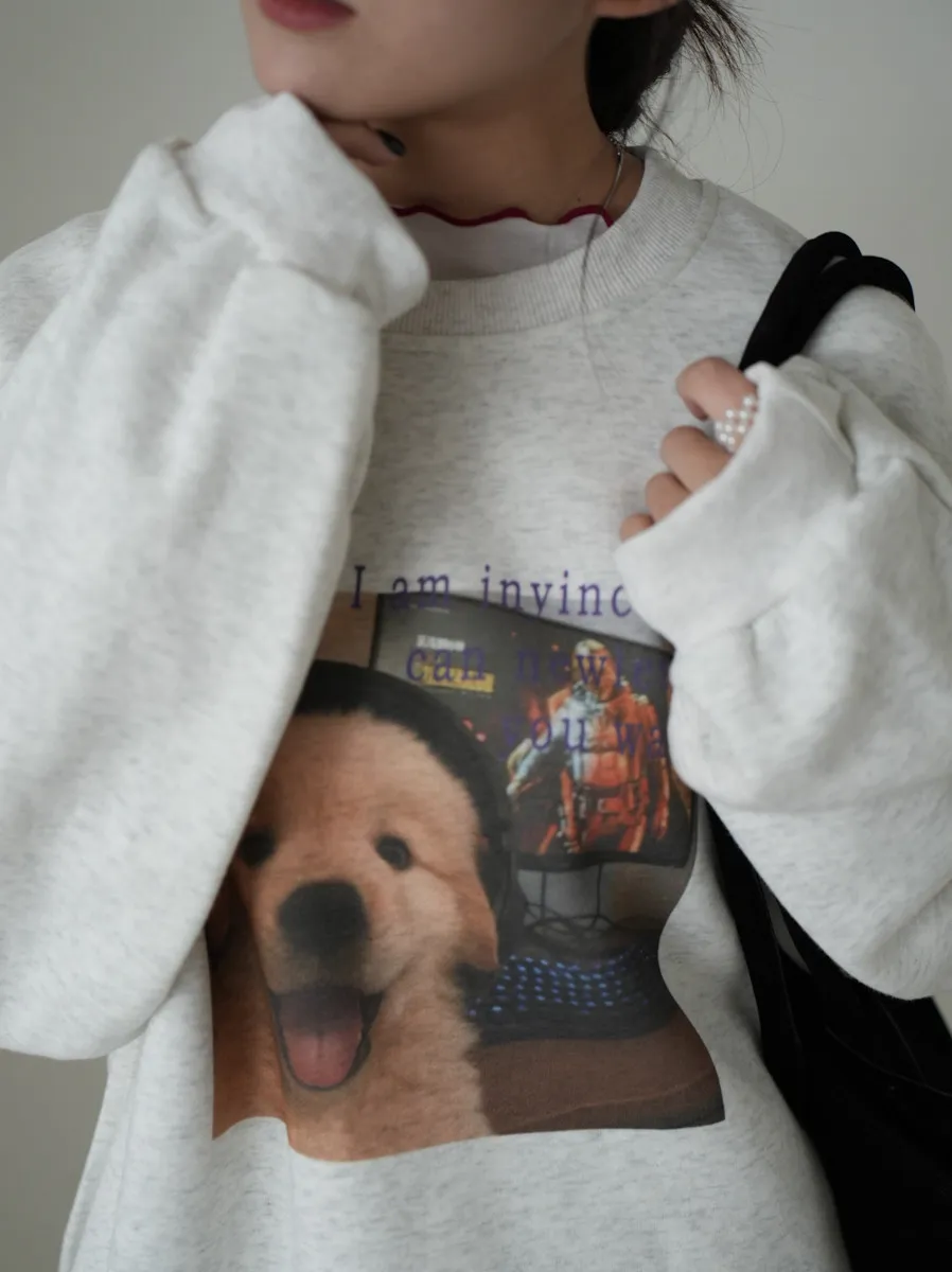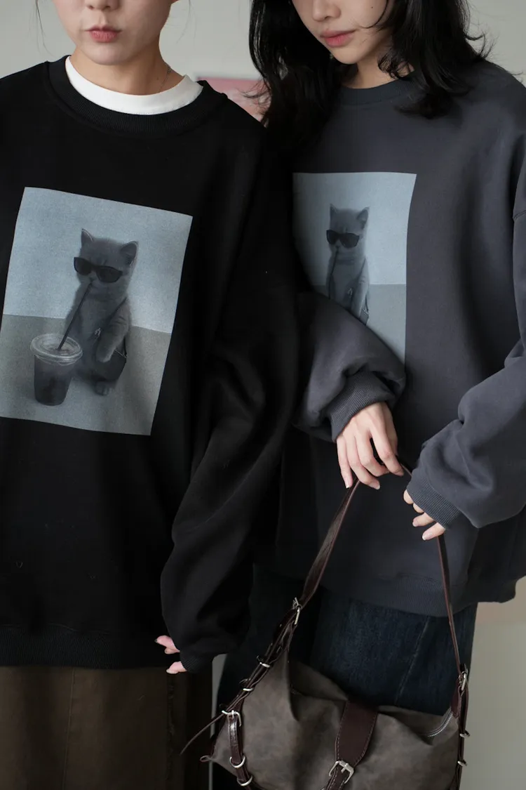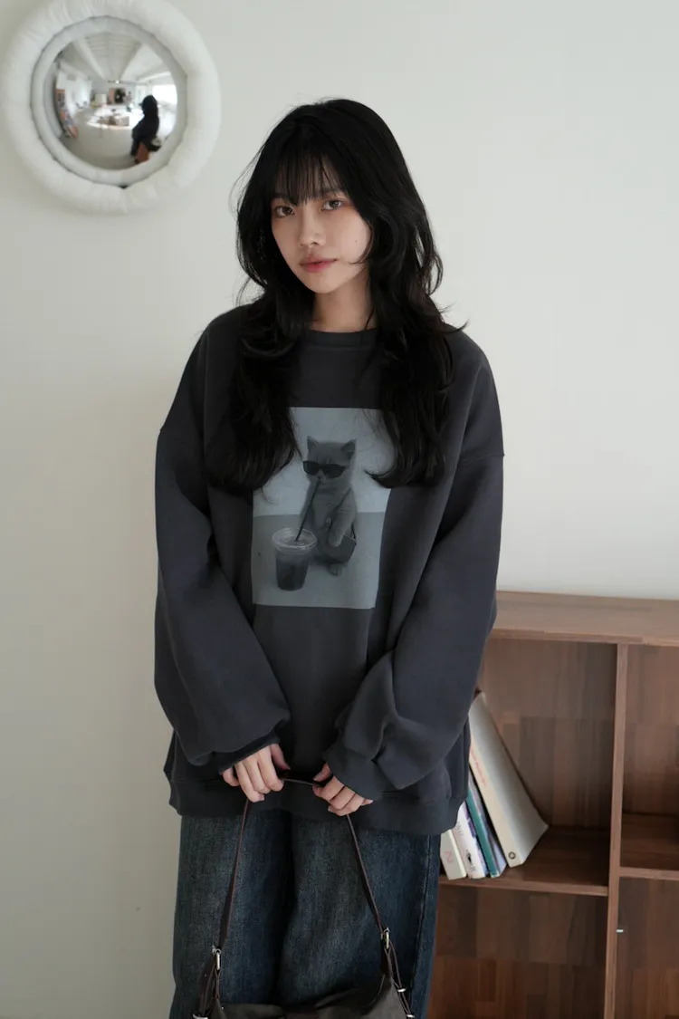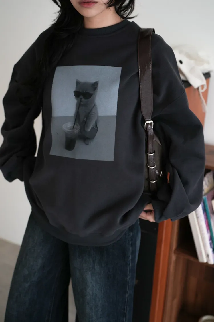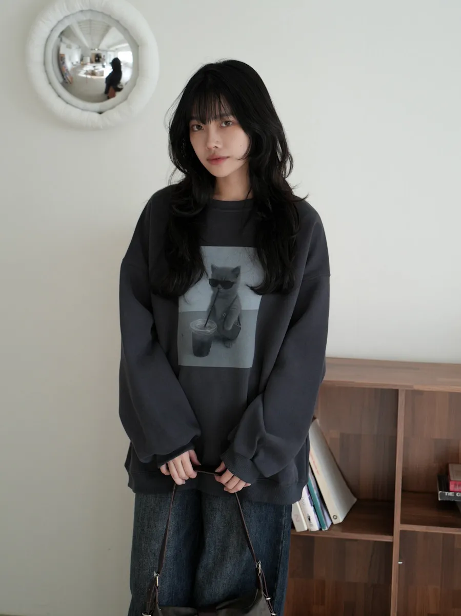 貓咪喝咖啡狗狗聽音樂長袖大學tee 4color