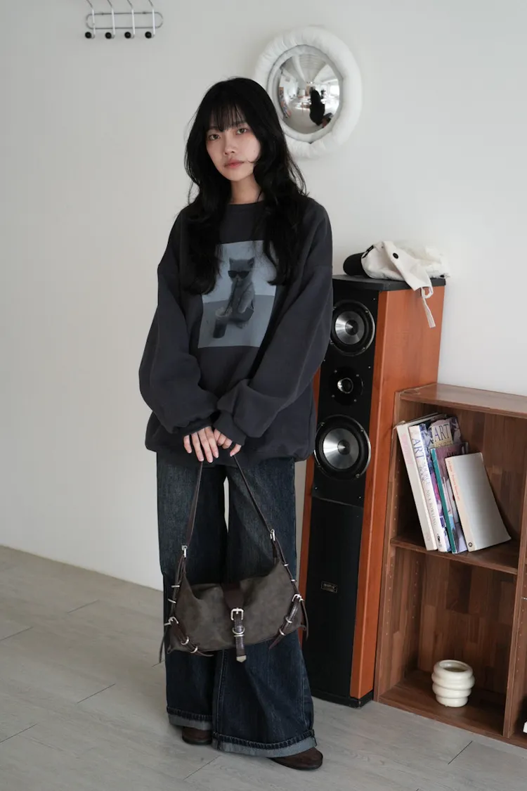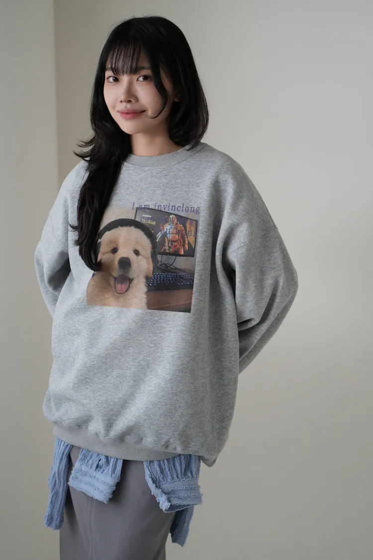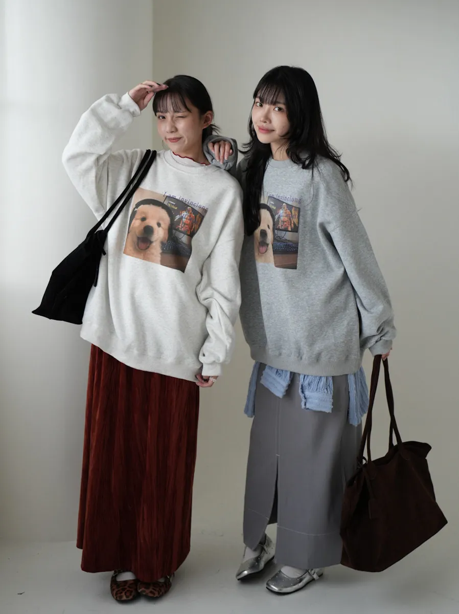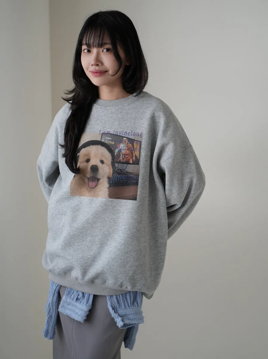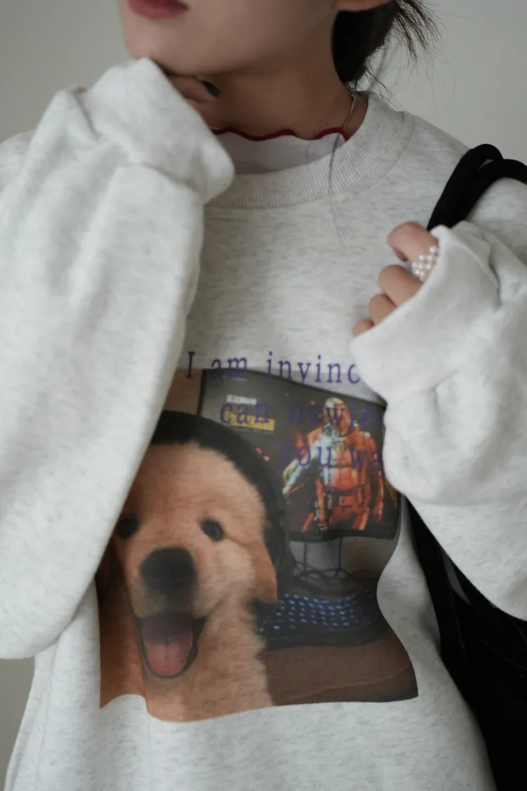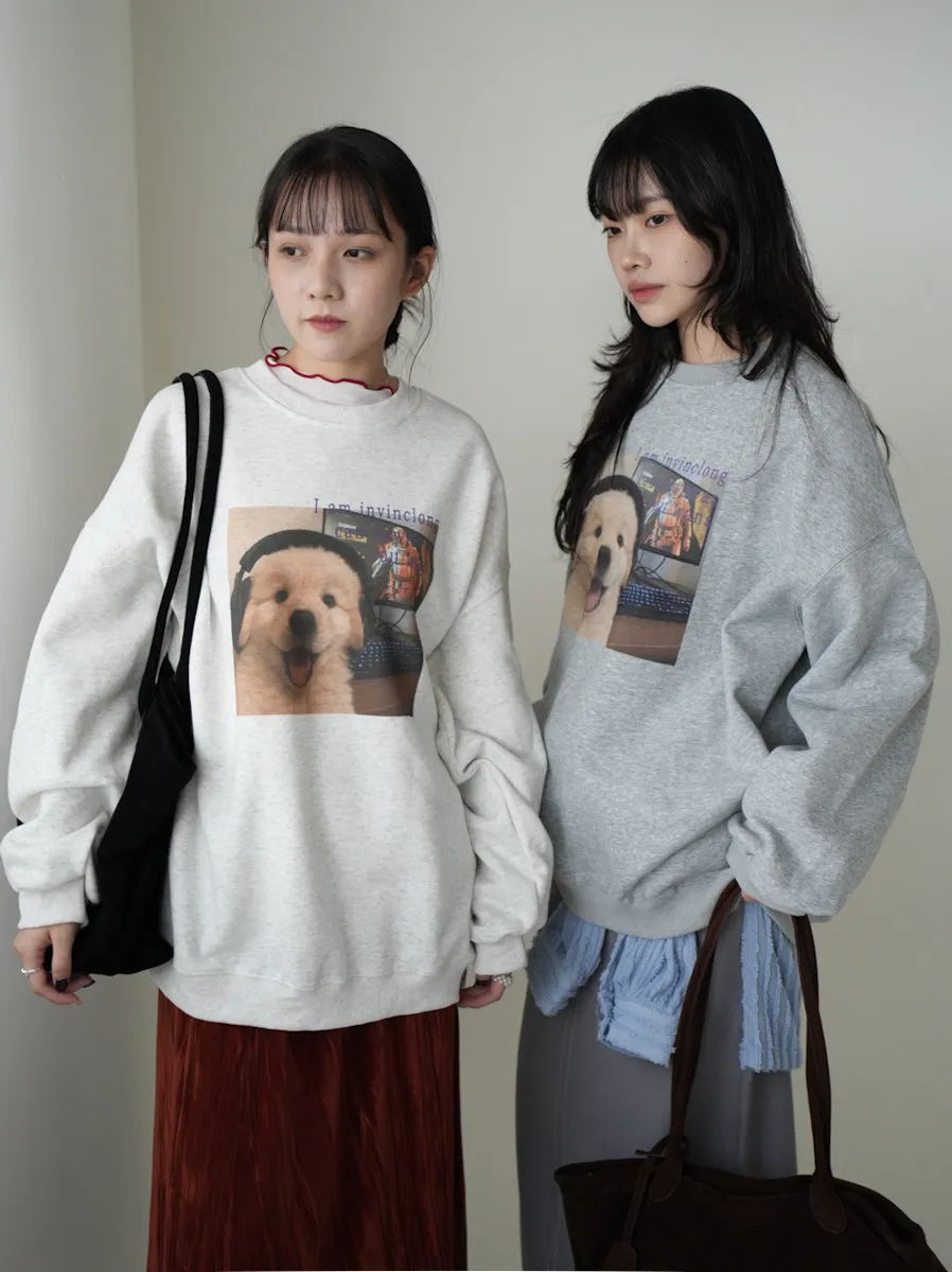 貓咪喝咖啡狗狗聽音樂長袖大學tee 4color