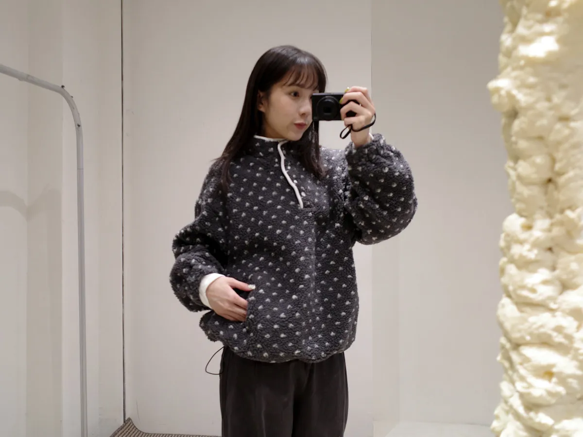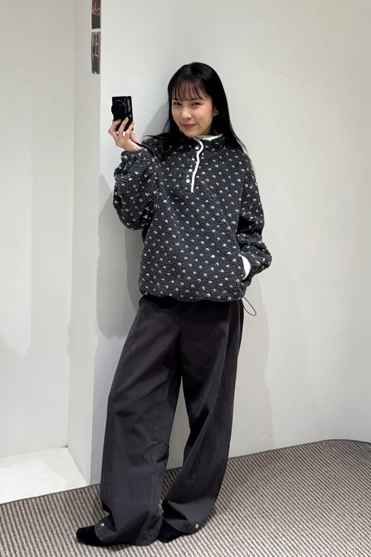 壓釦可開,有口袋,下擺有調節釦可縮口,棉花糖可