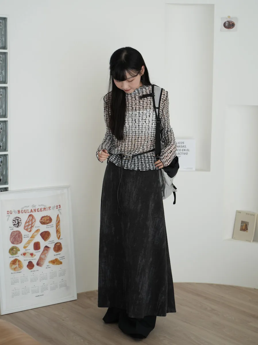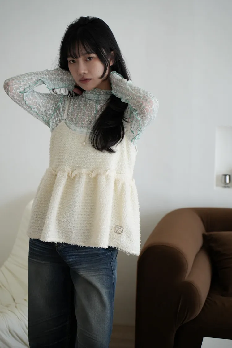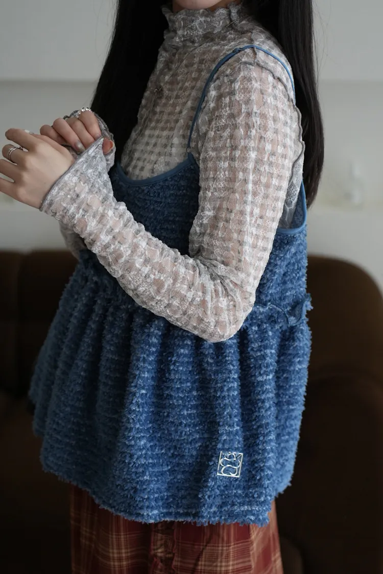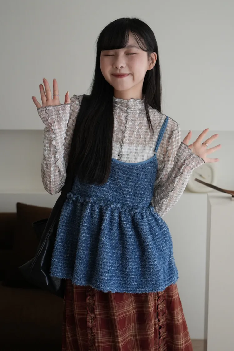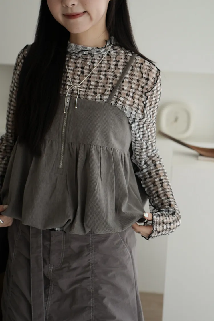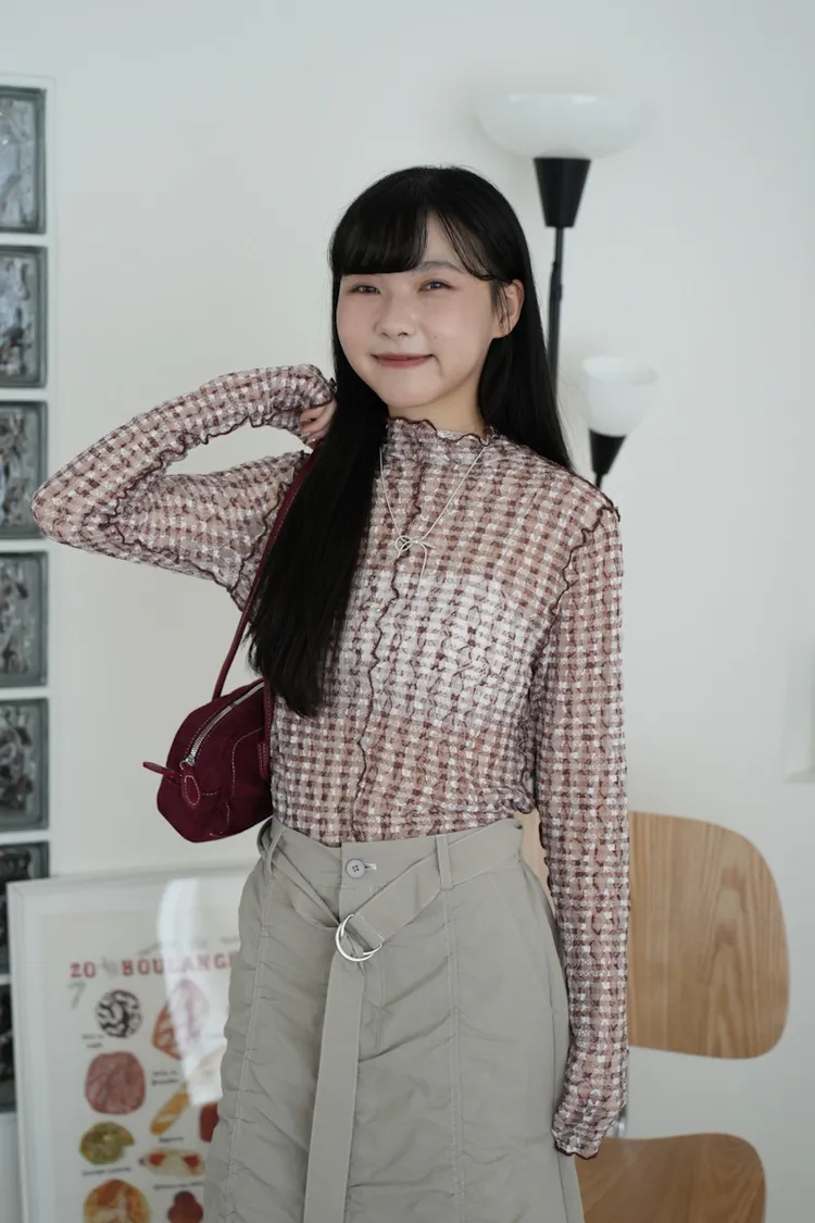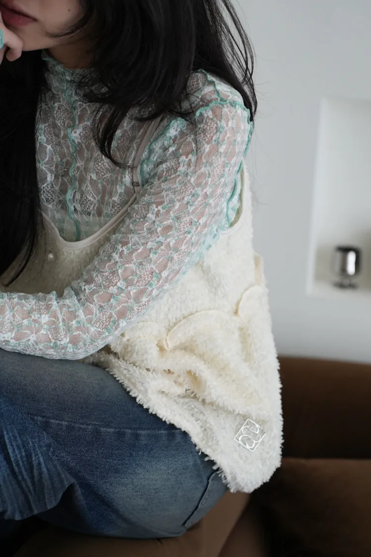 超級美 格紋蕾絲打底長袖上衣 4color
