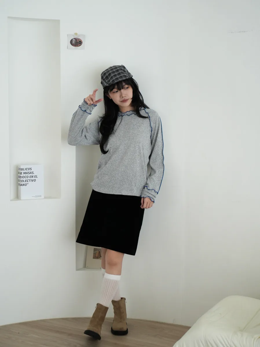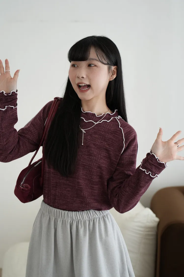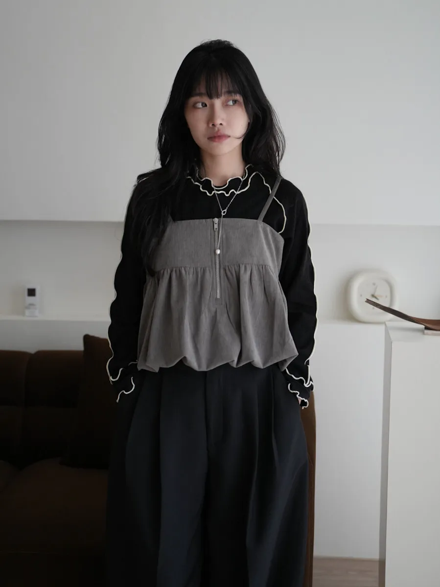 疊穿感拉滿雙層滾邊寬鬆上衣 4color