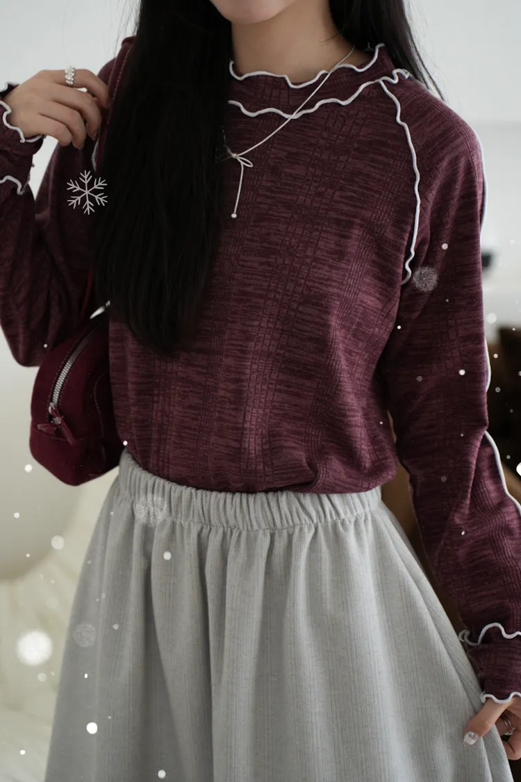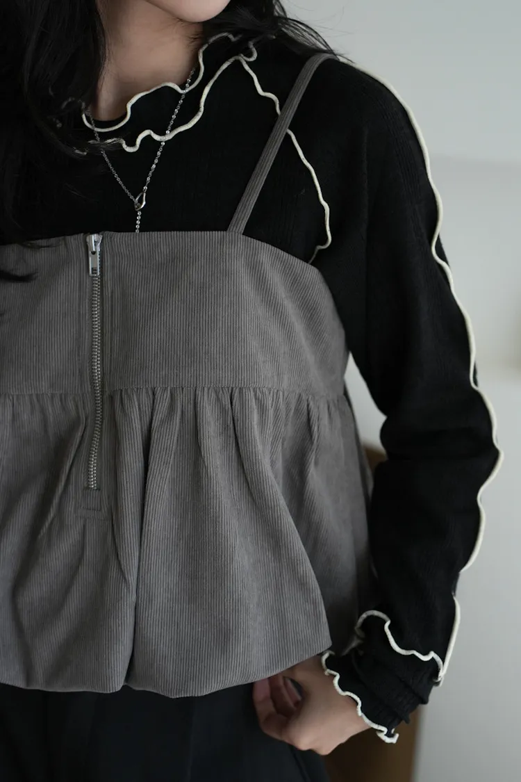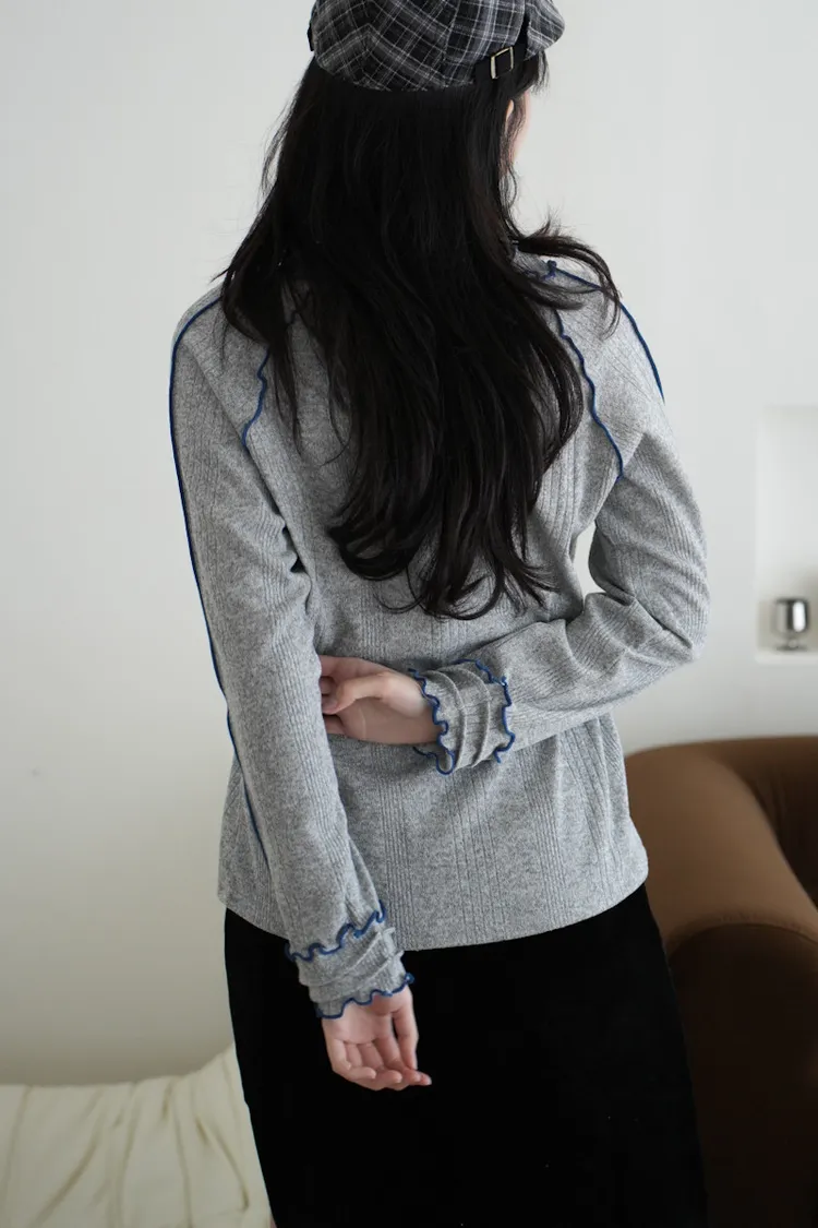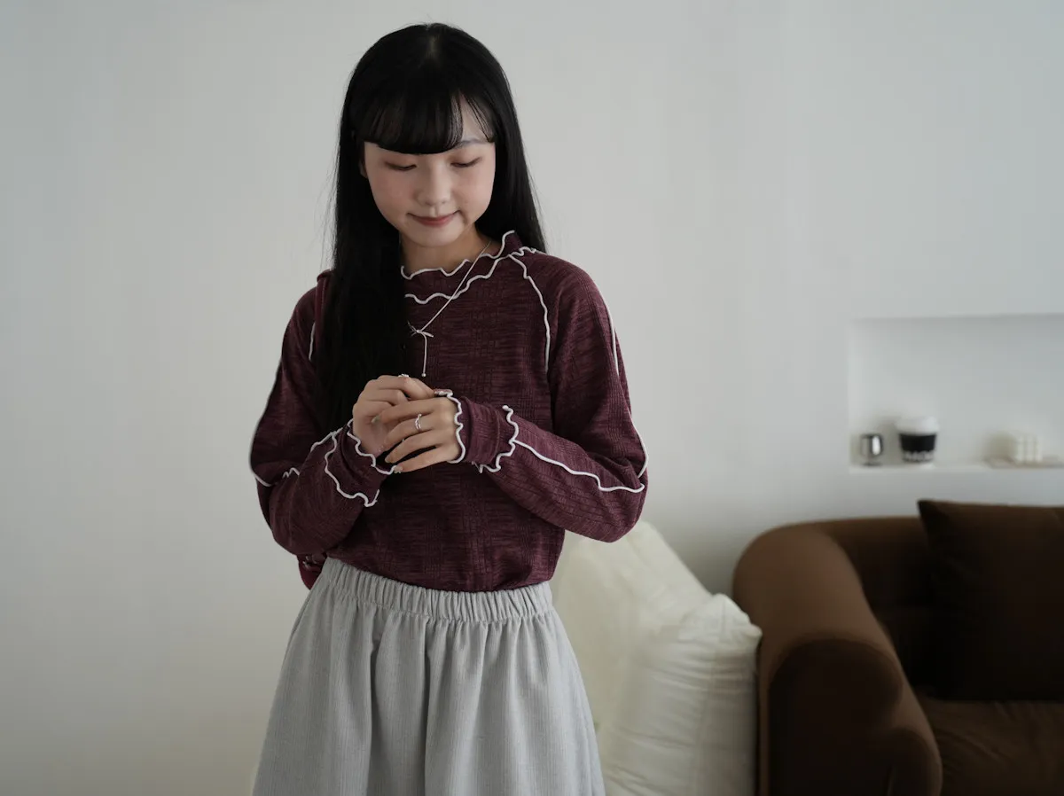疊穿感拉滿雙層滾邊寬鬆上衣 4color