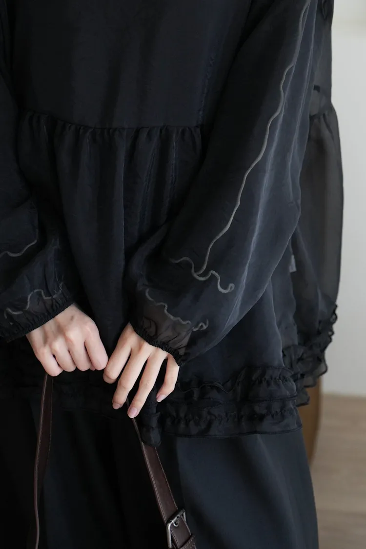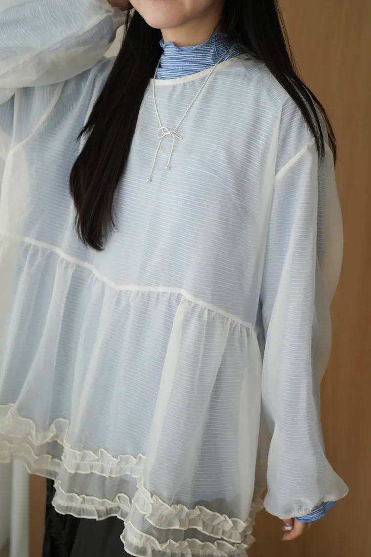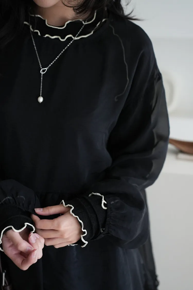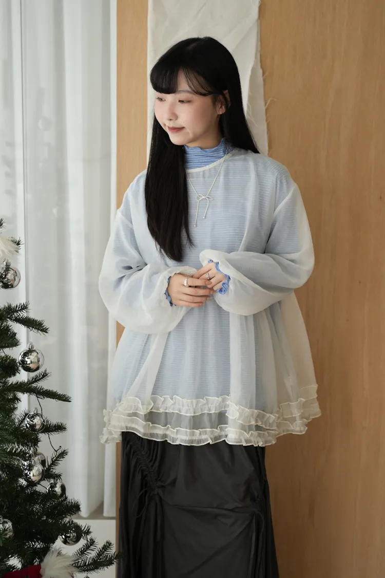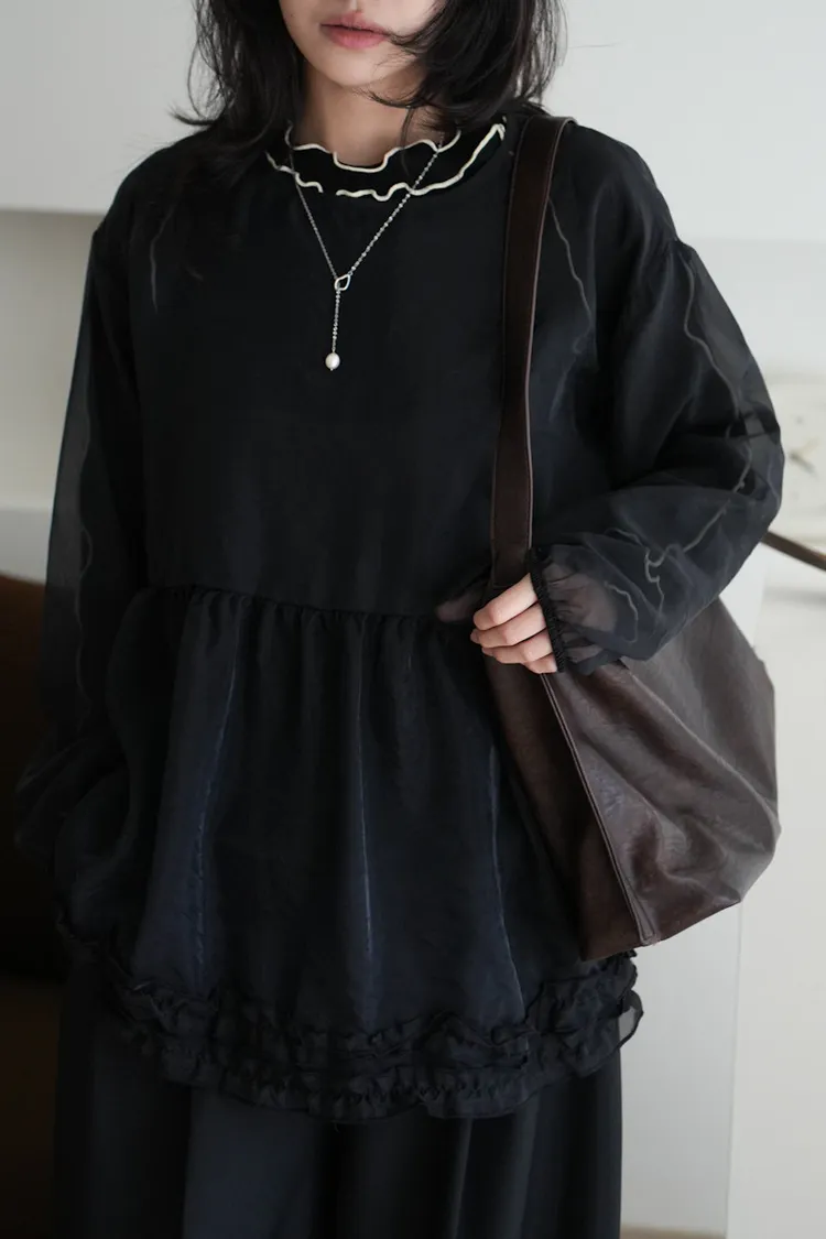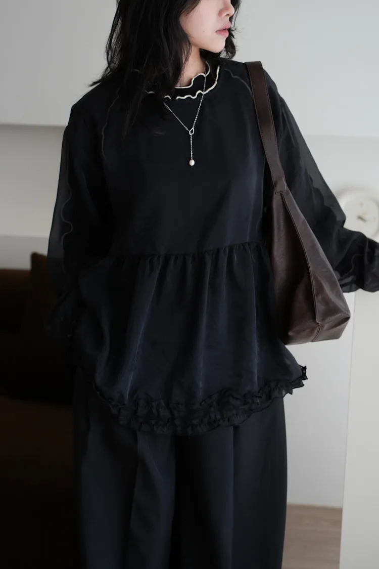 穿搭能力提升透光滾邊花瓣上衣 2color