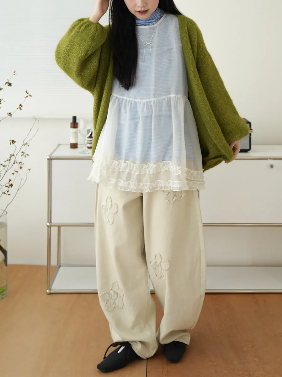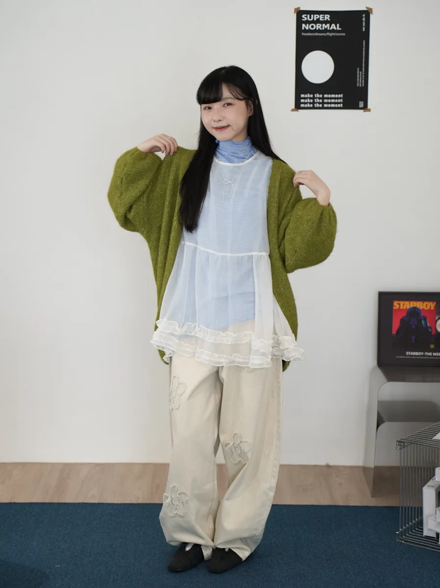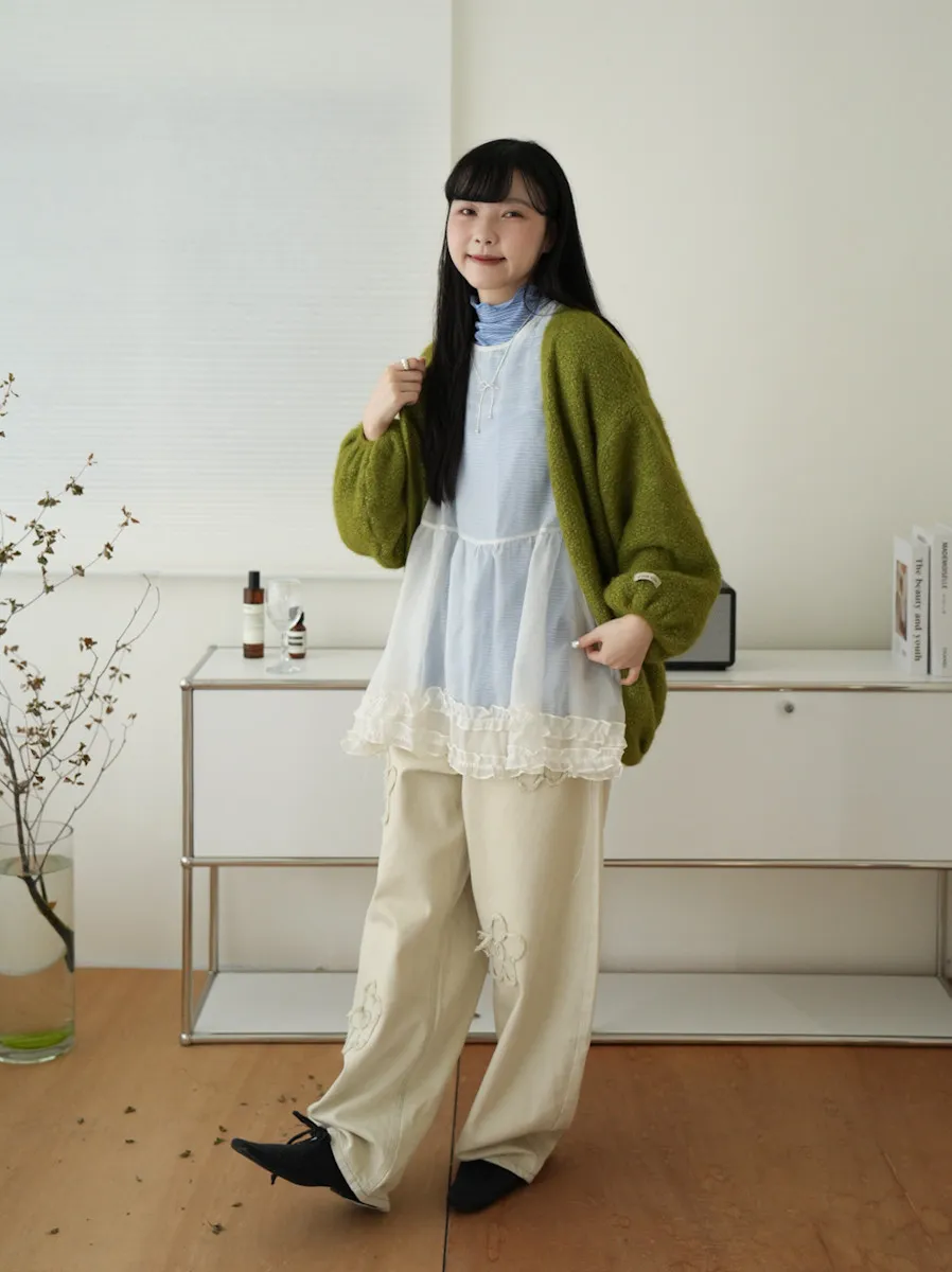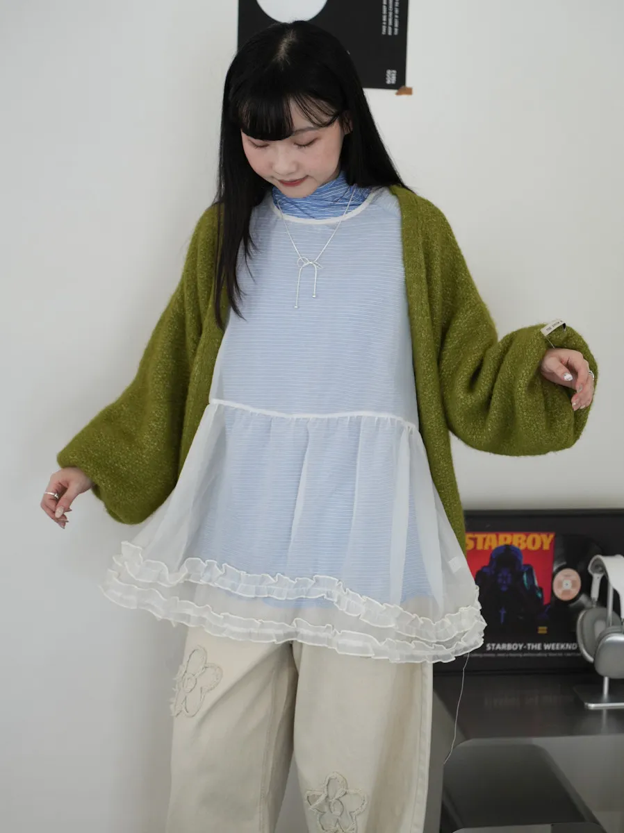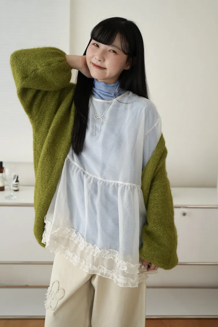穿搭能力提升透光滾邊花瓣上衣 2color