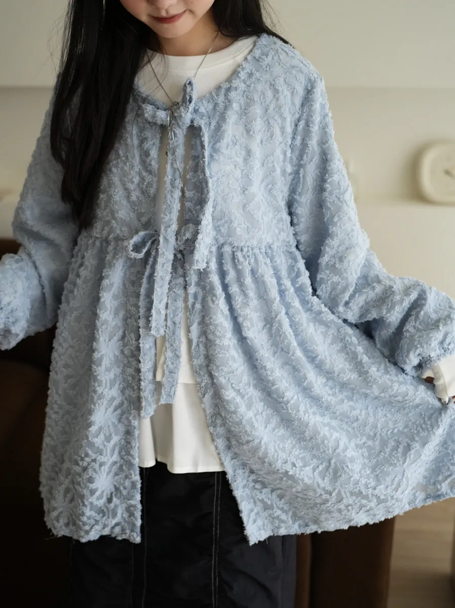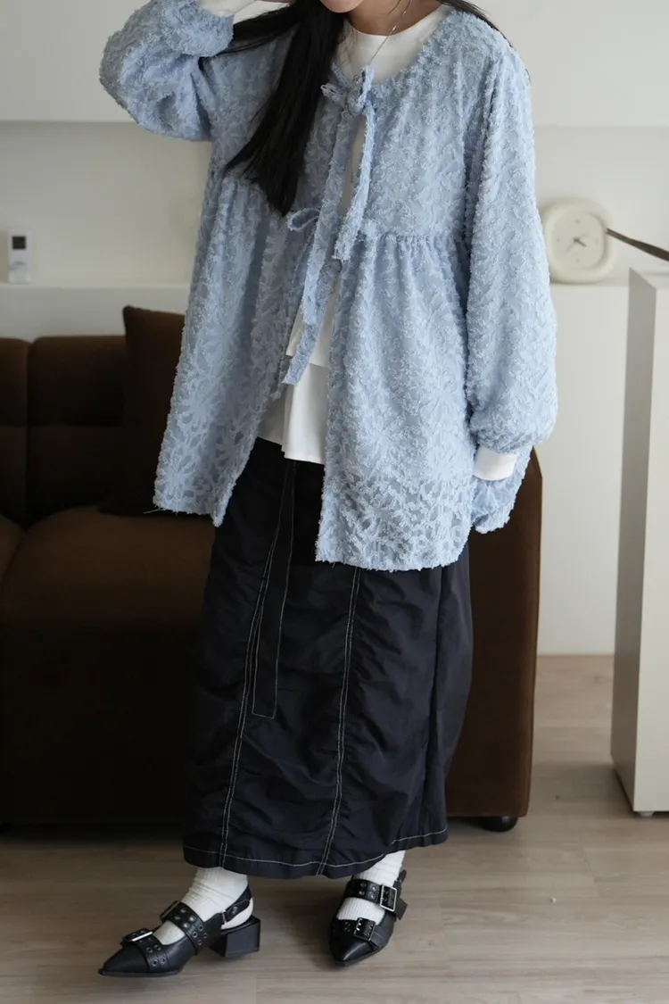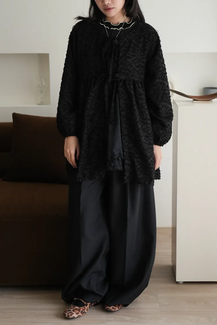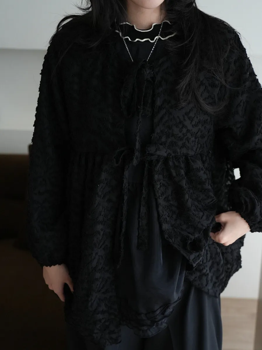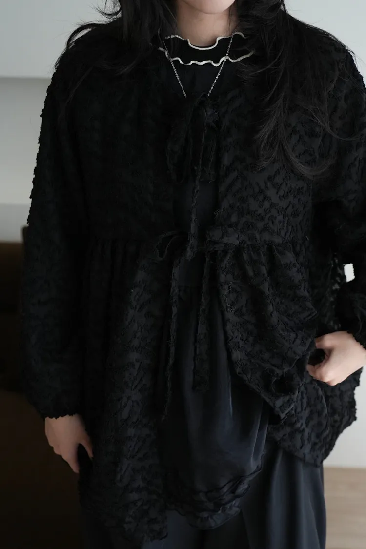 【售完不補】立體緹花綁帶罩衫 3color