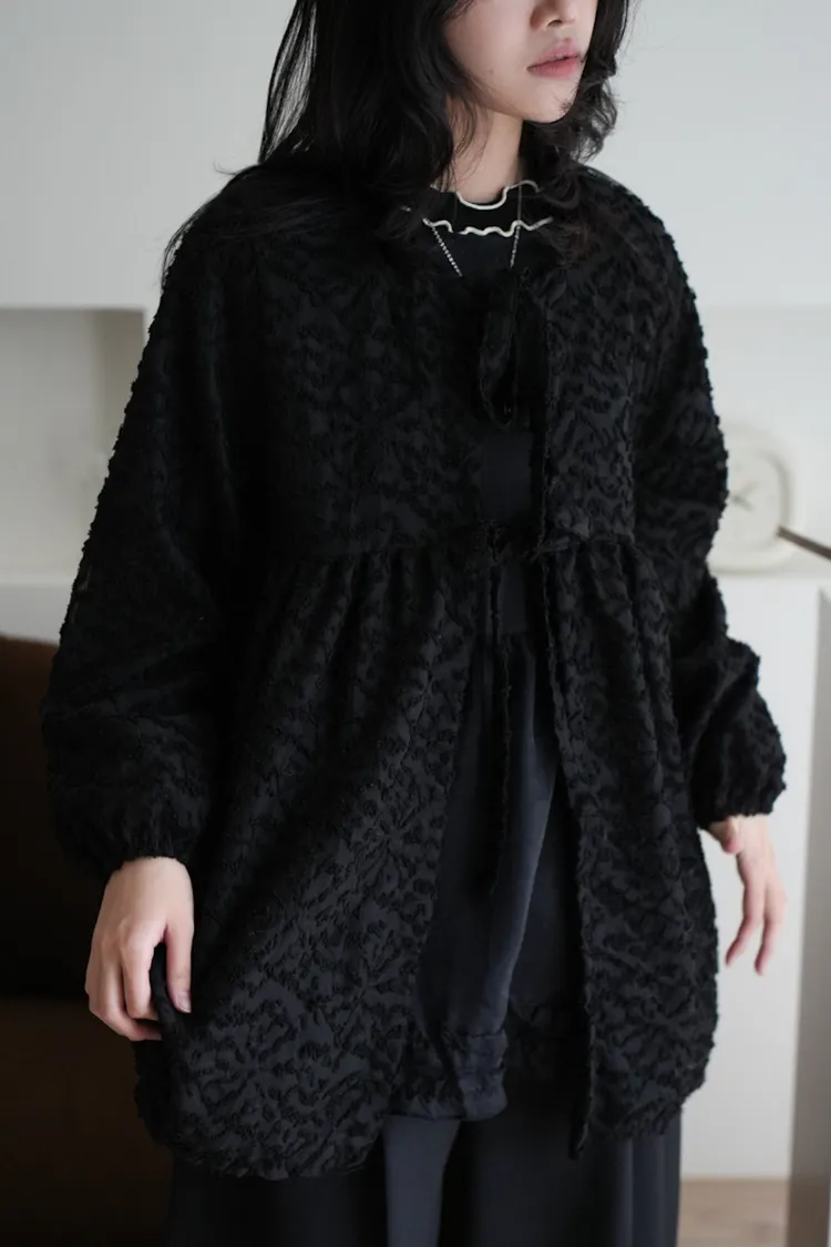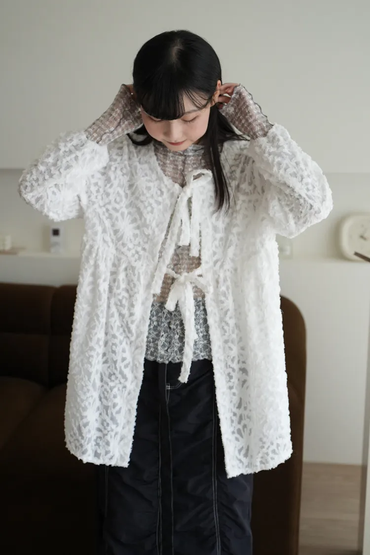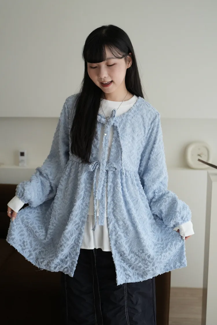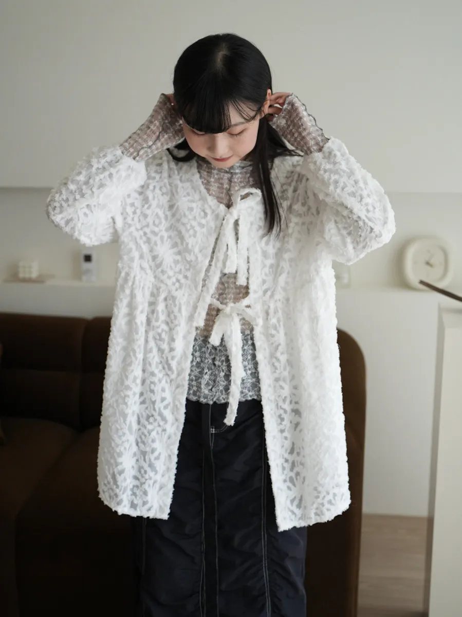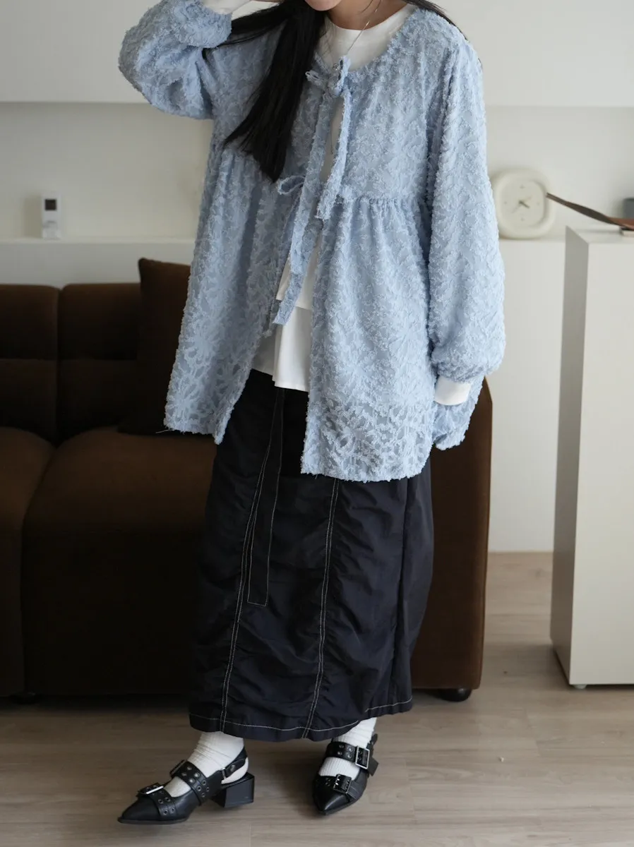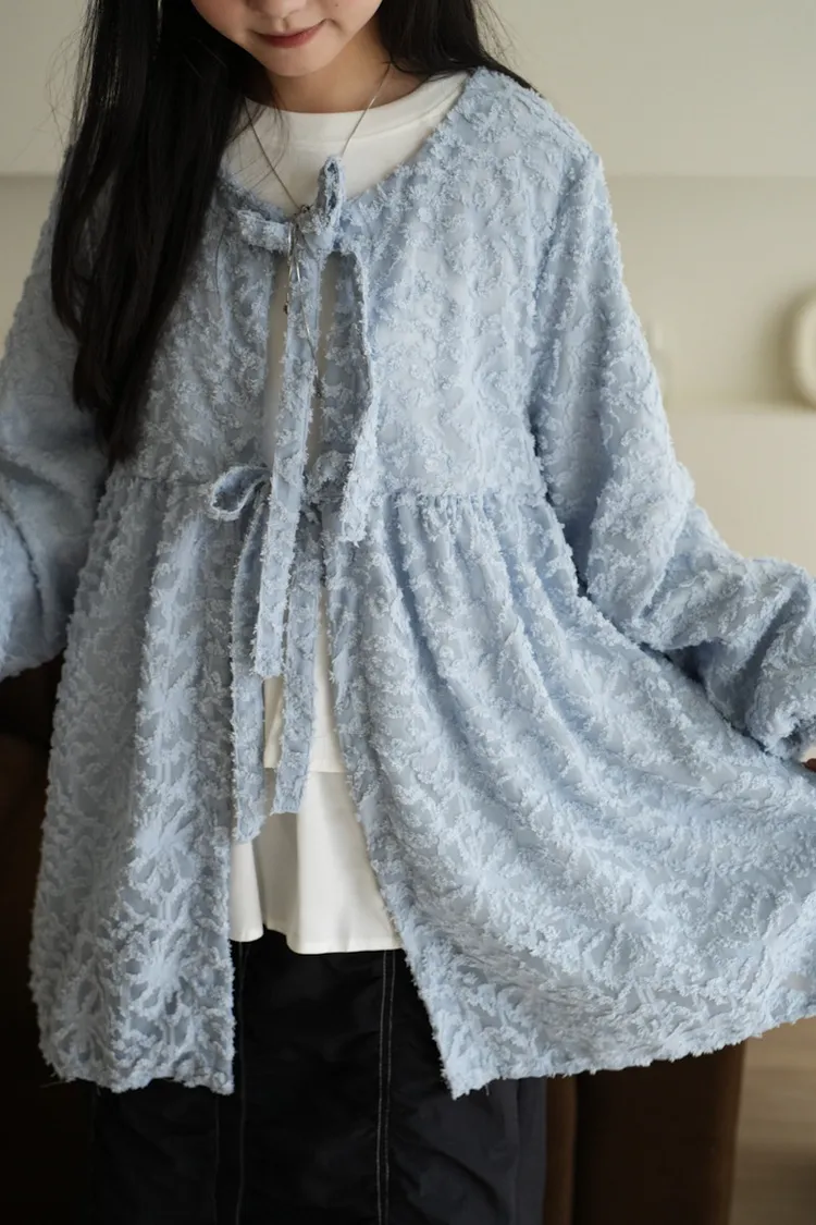 【售完不補】立體緹花綁帶罩衫 3color