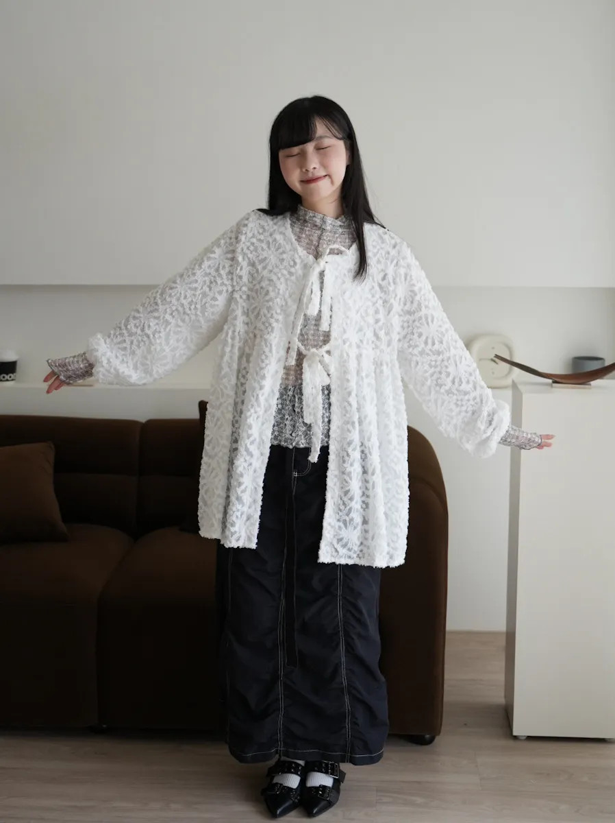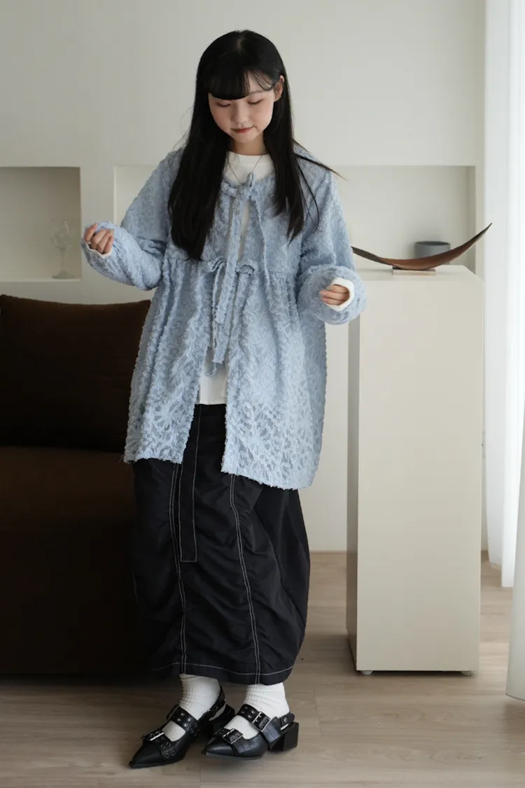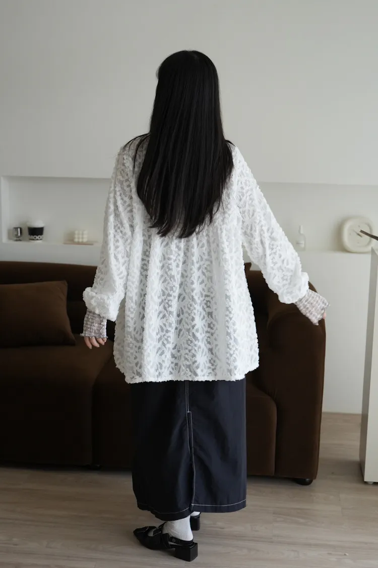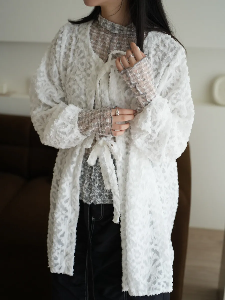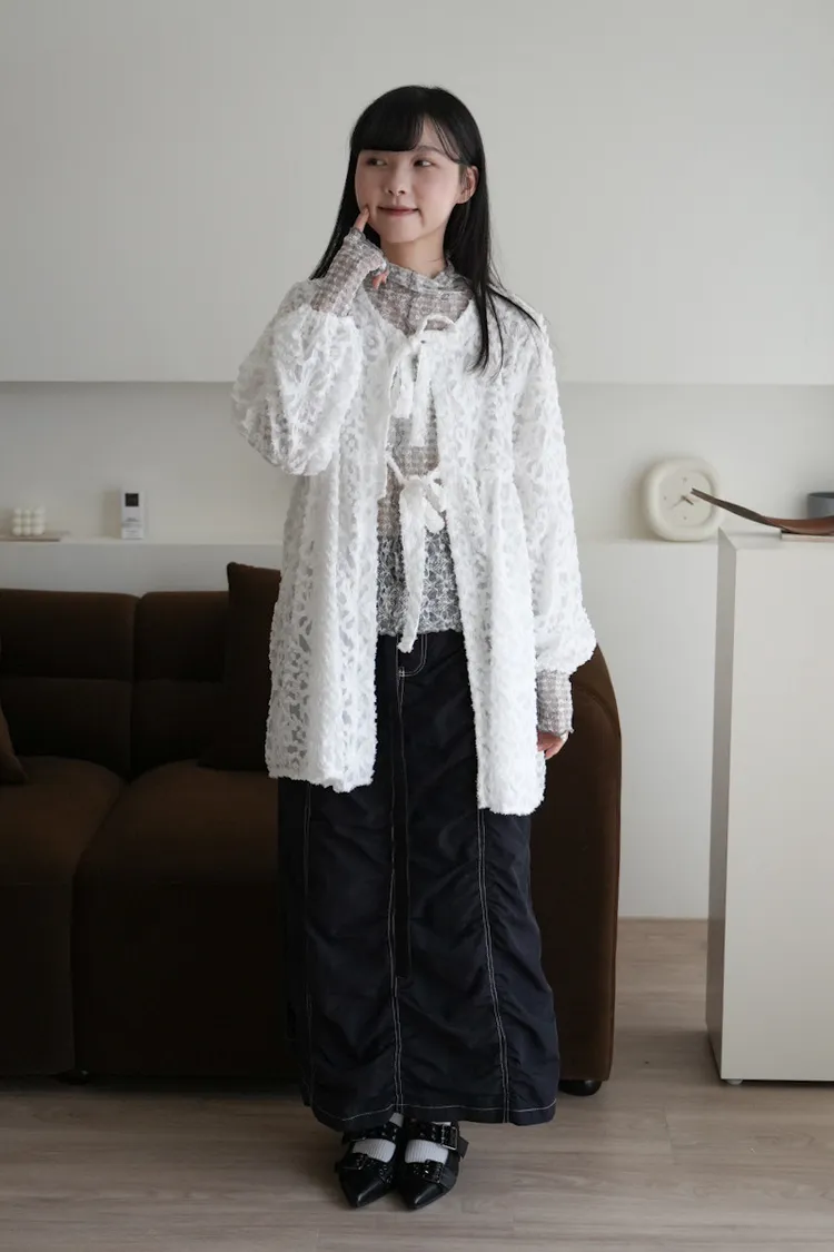 【售完不補】立體緹花綁帶罩衫 3color