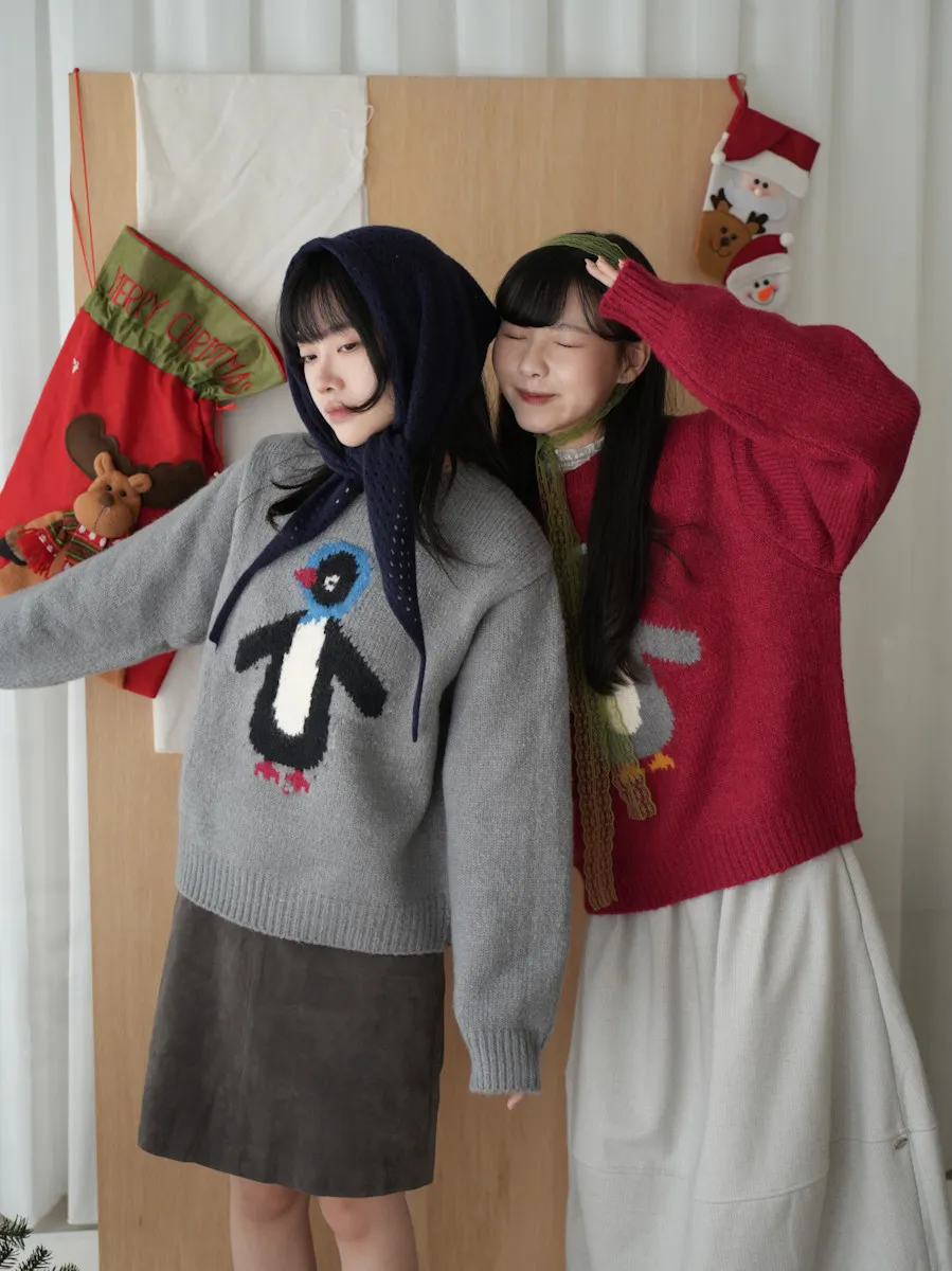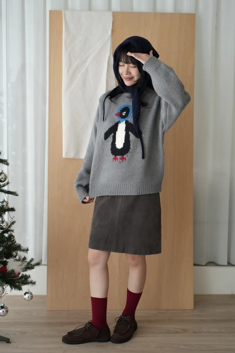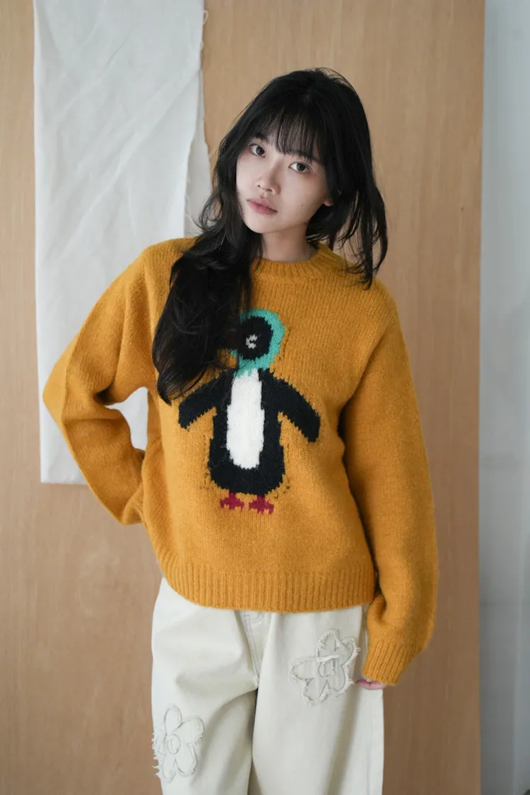 PINGU戴帽帽扎實正常版型毛衣 4color