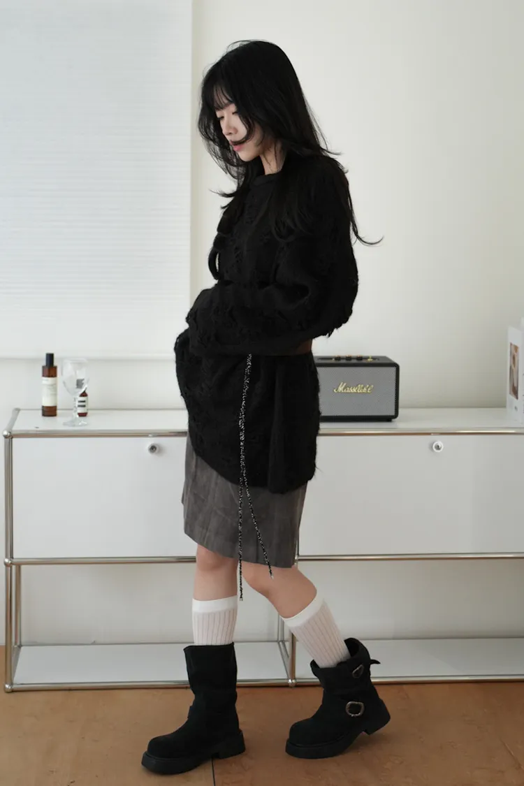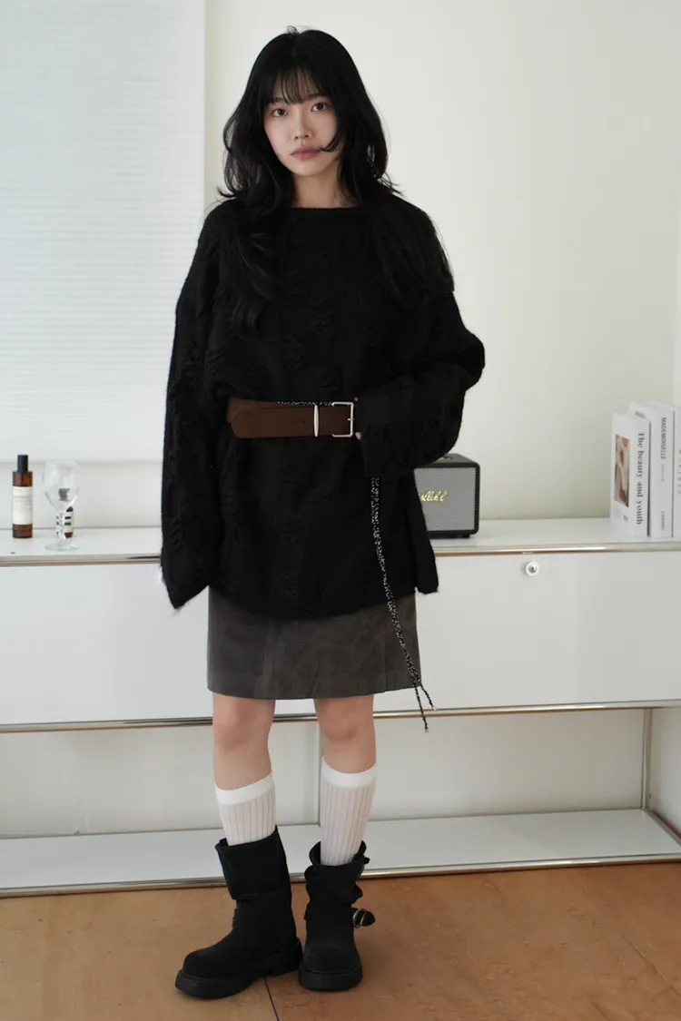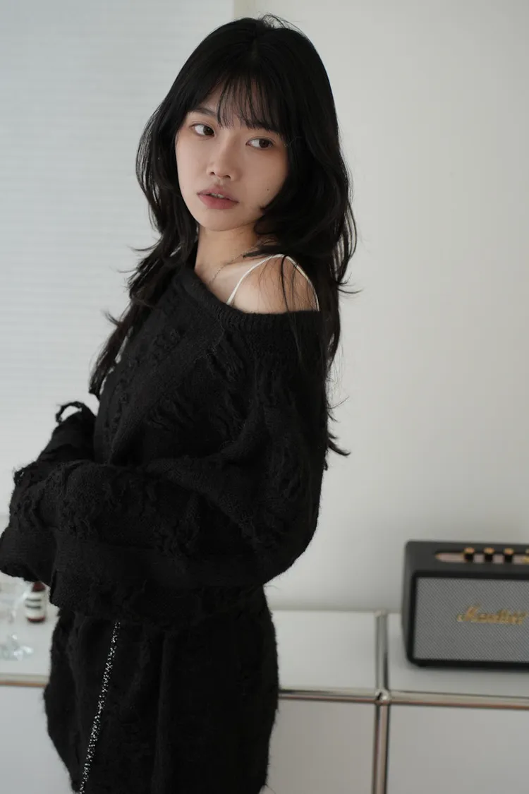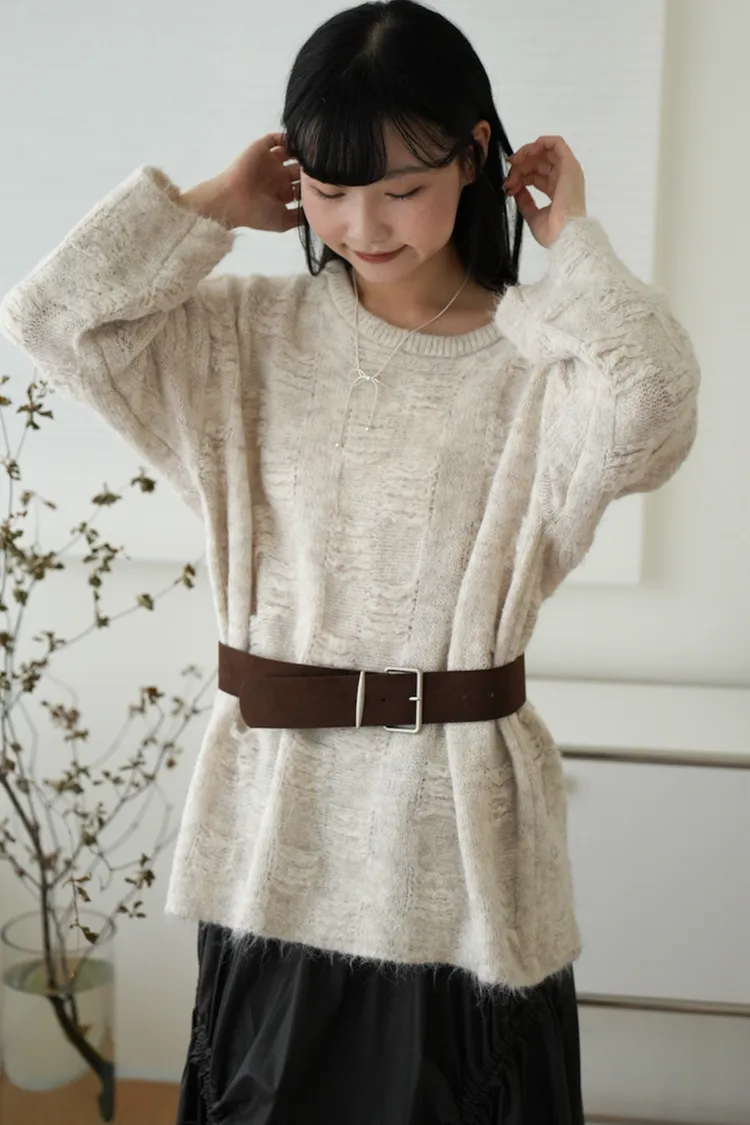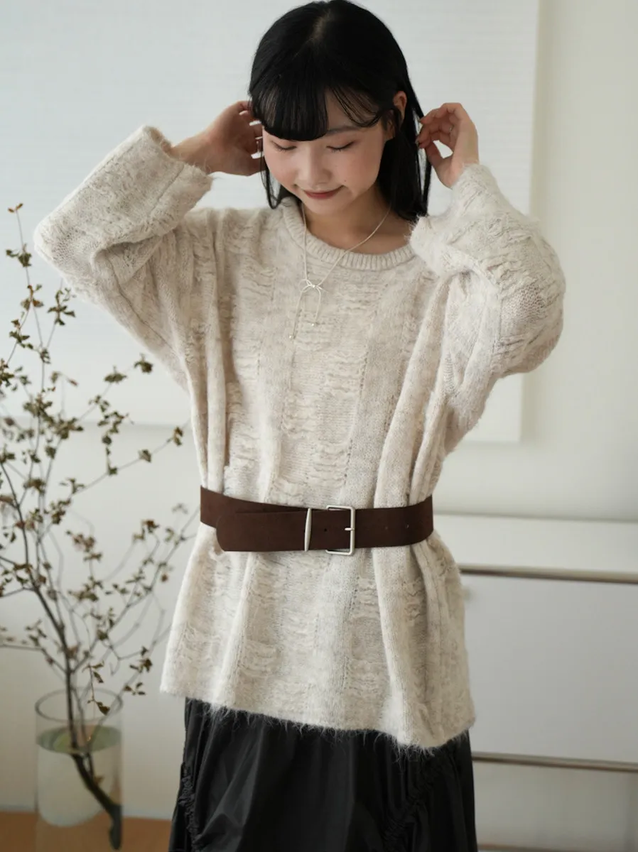 慵懶犯規 破壞感斜肩大毛衣附皮帶 2color