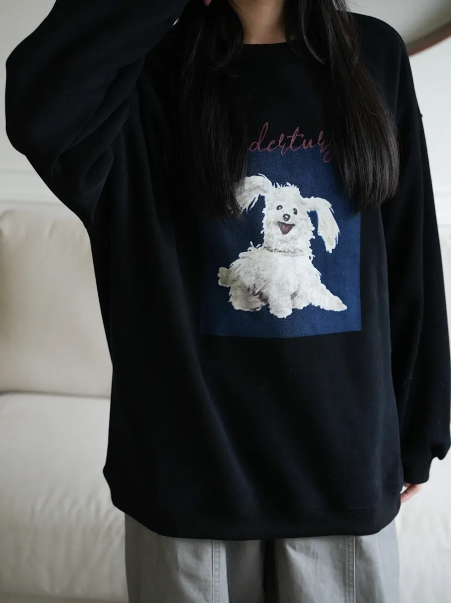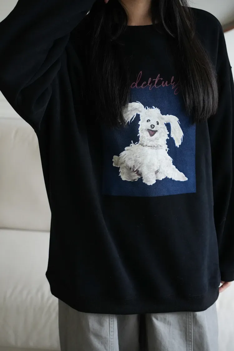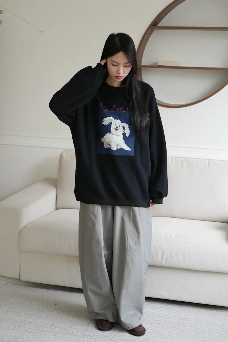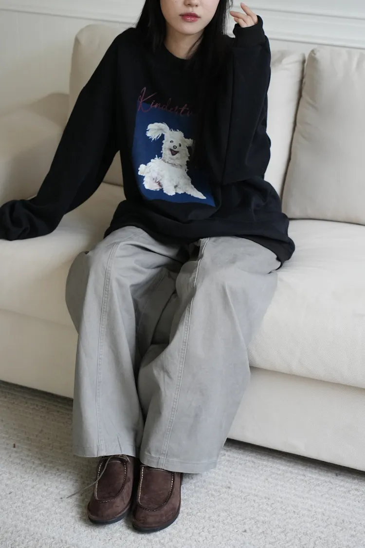 -糊塗狗狗over size大學tee 深灰1白3