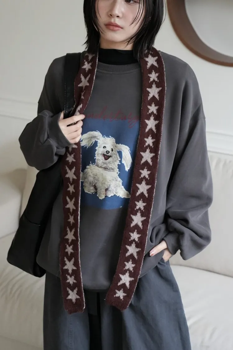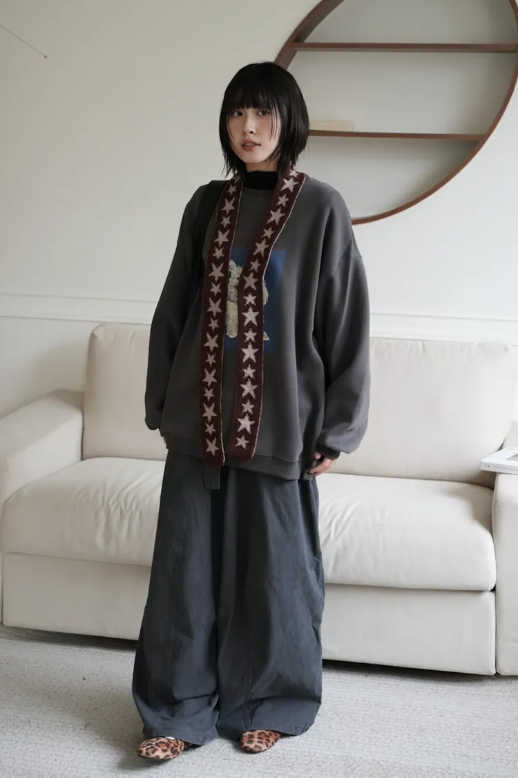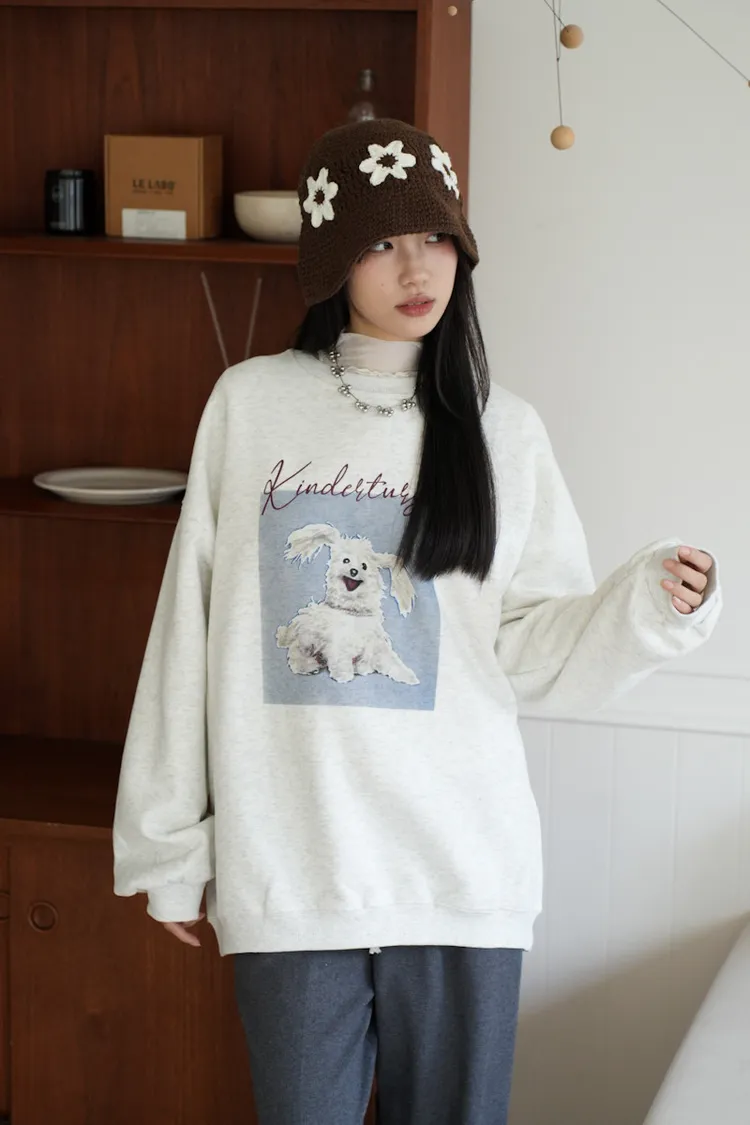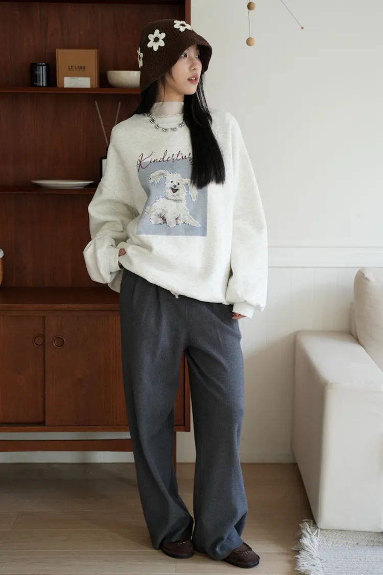 -糊塗狗狗over size大學tee 深灰1白3