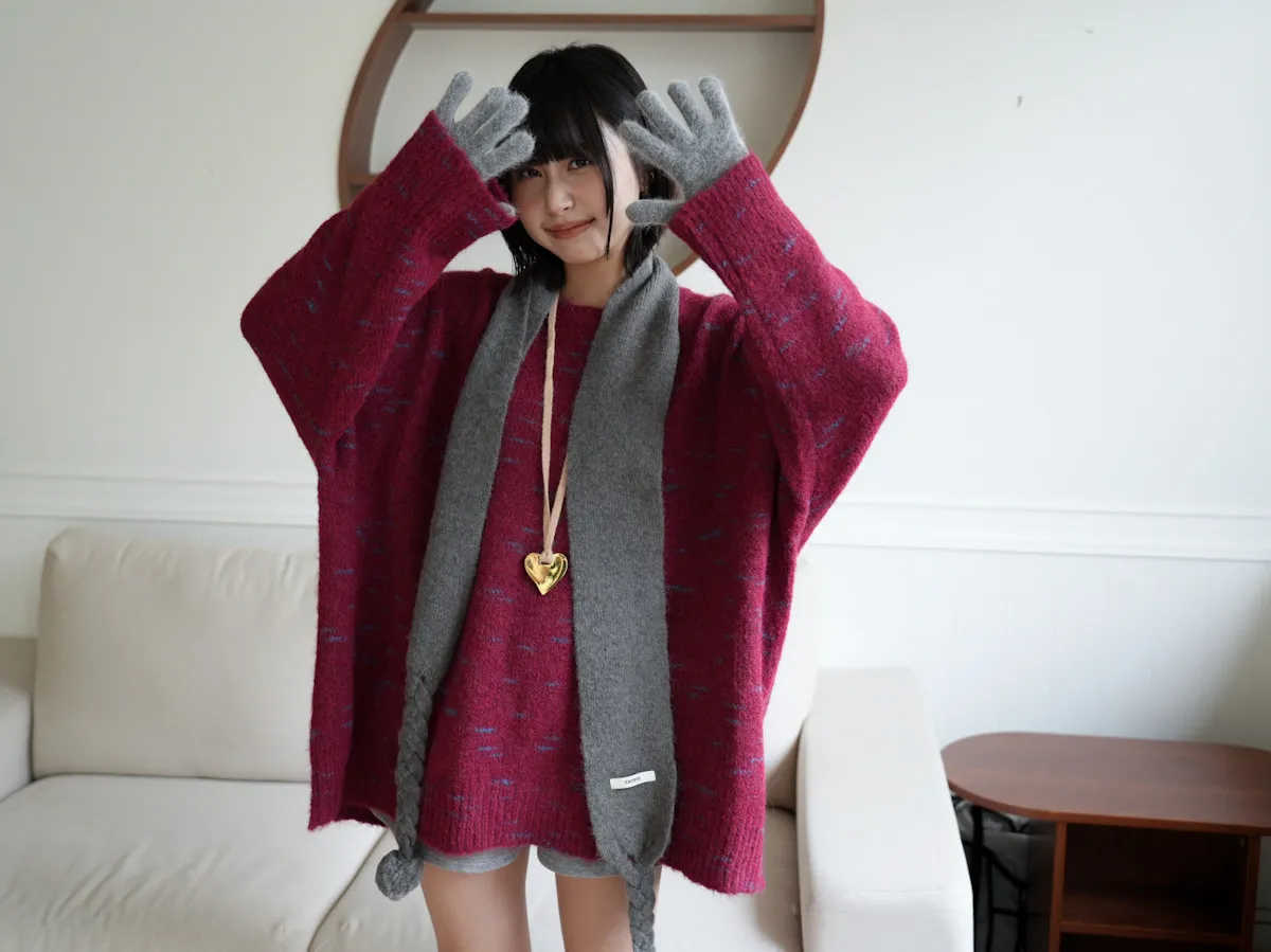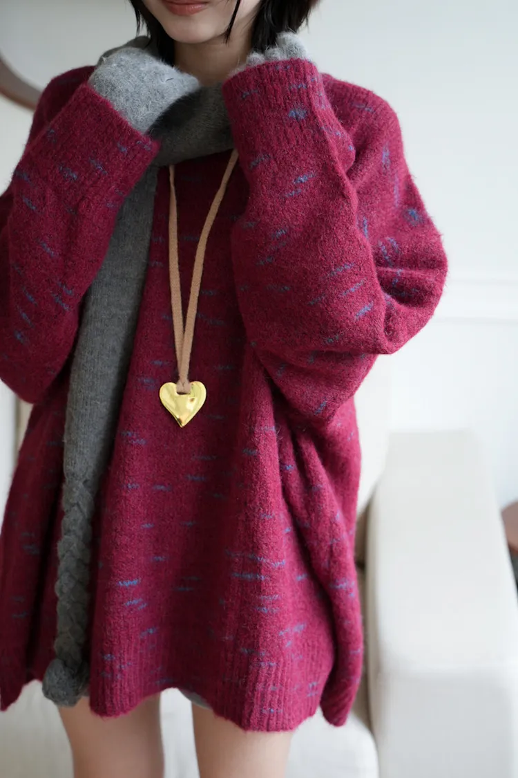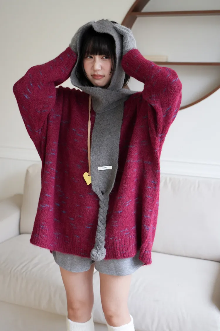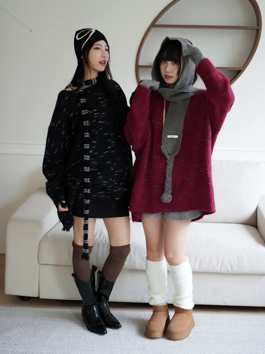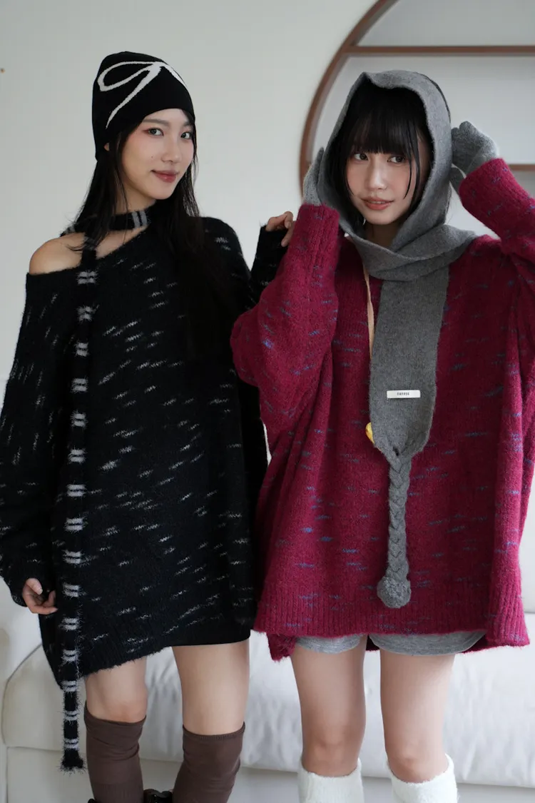 -混色雜訊over size 寬鬆大毛衣 黑4紅10