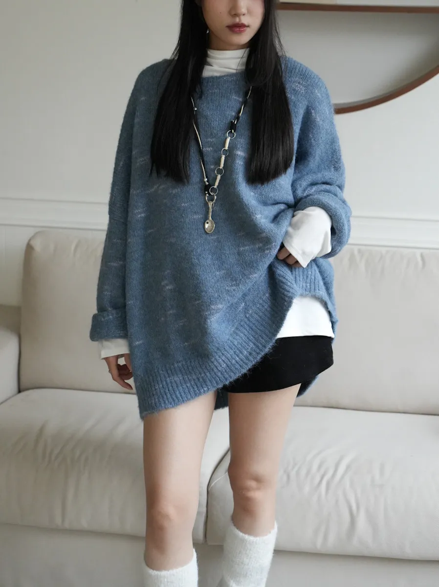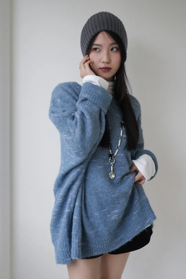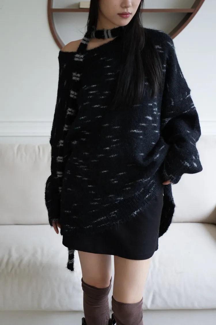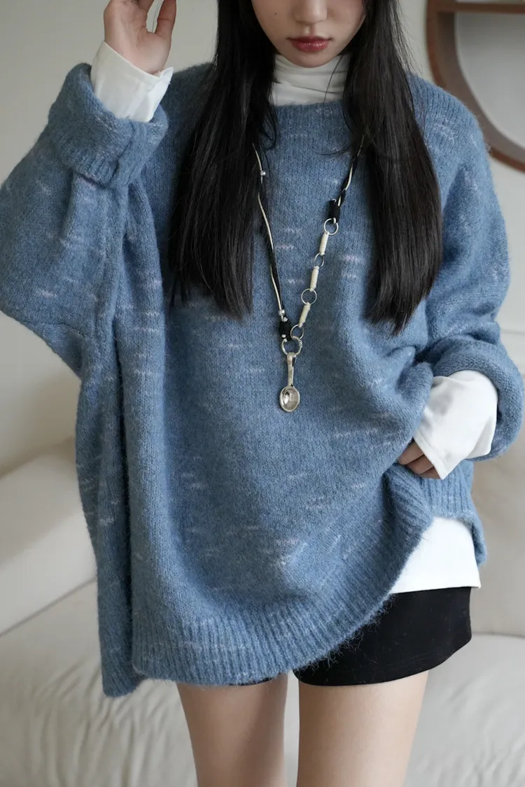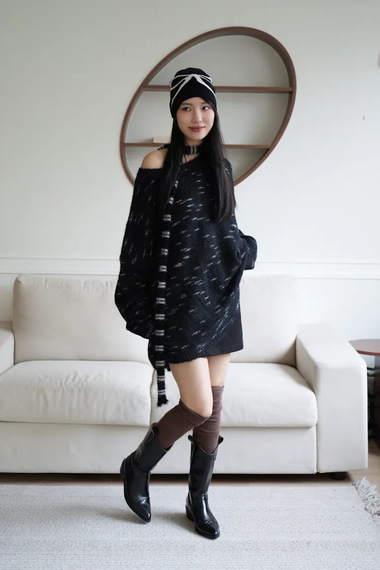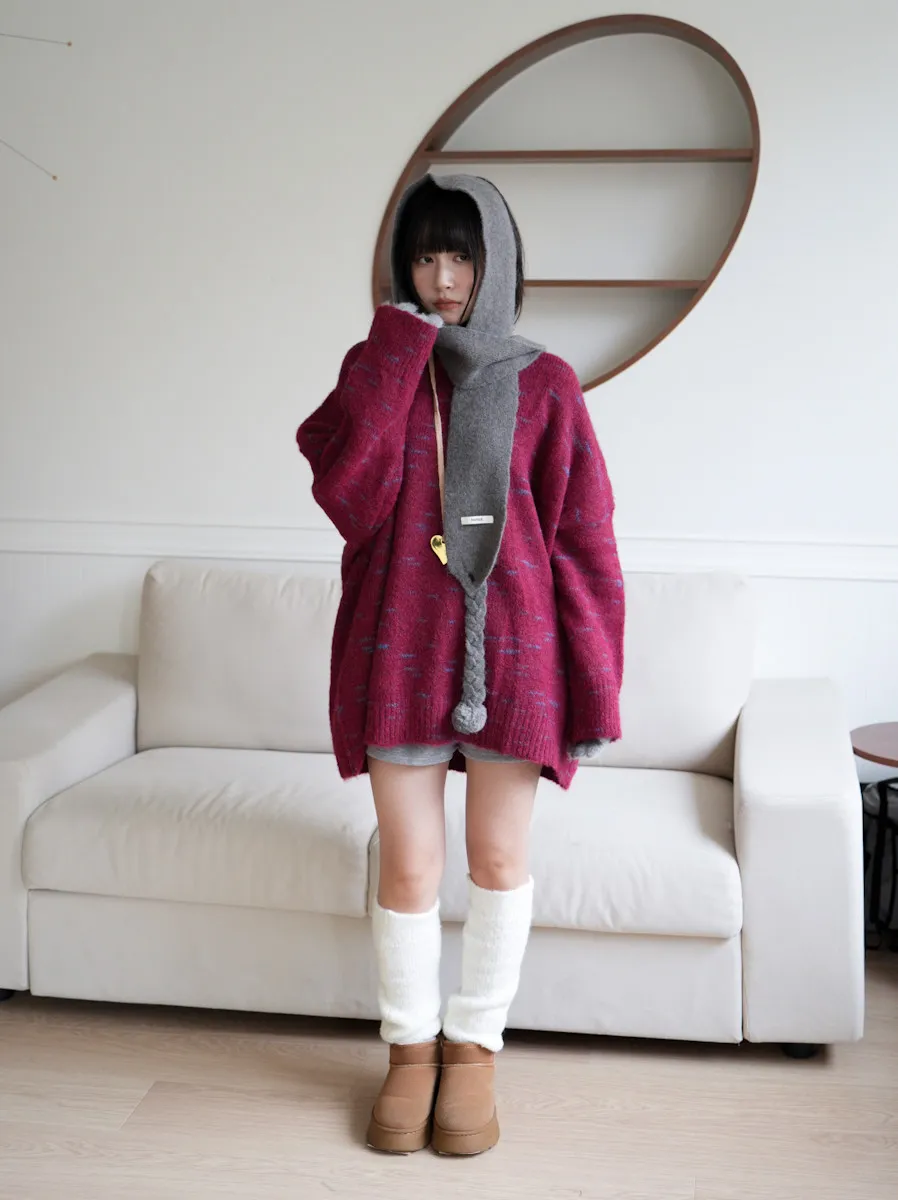 -混色雜訊over size 寬鬆大毛衣 黑4紅10