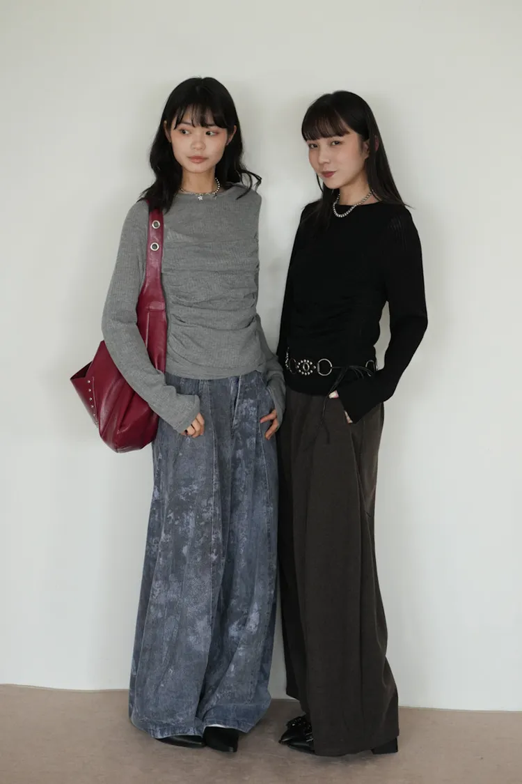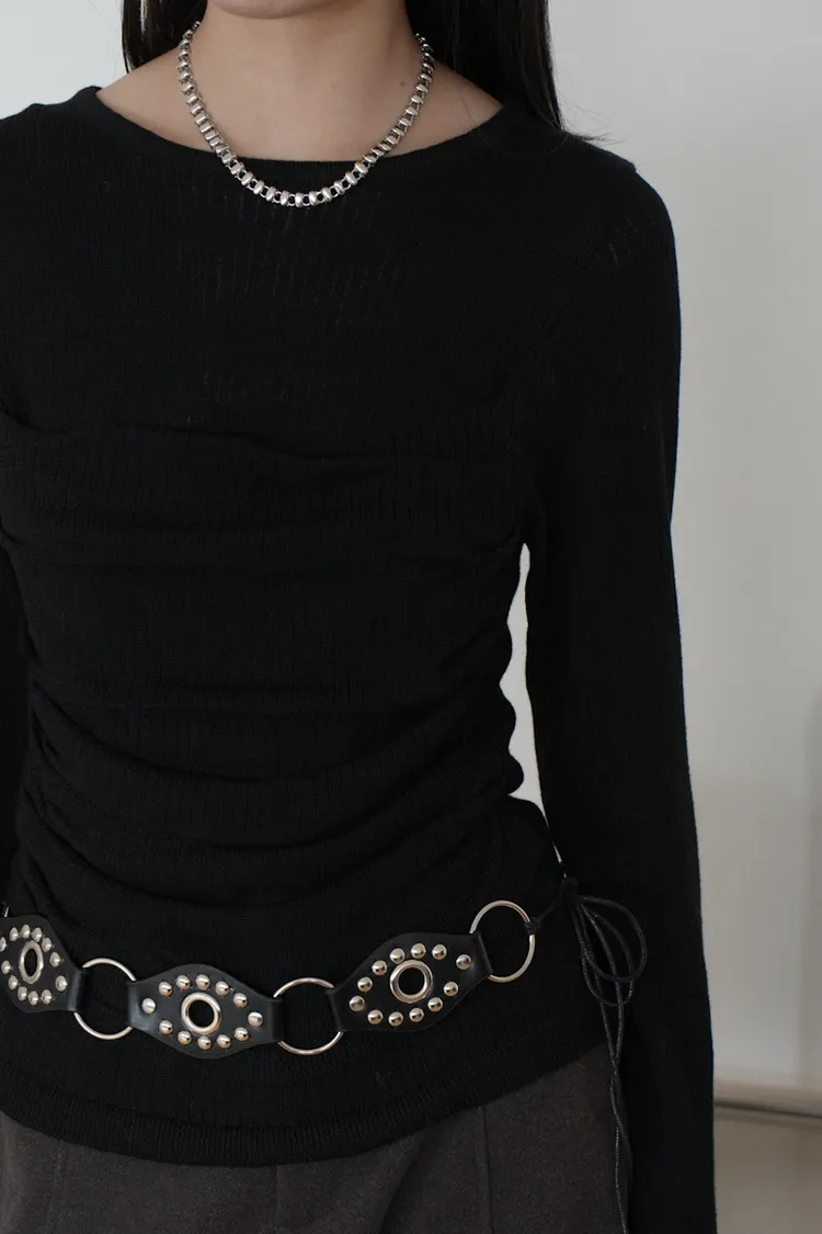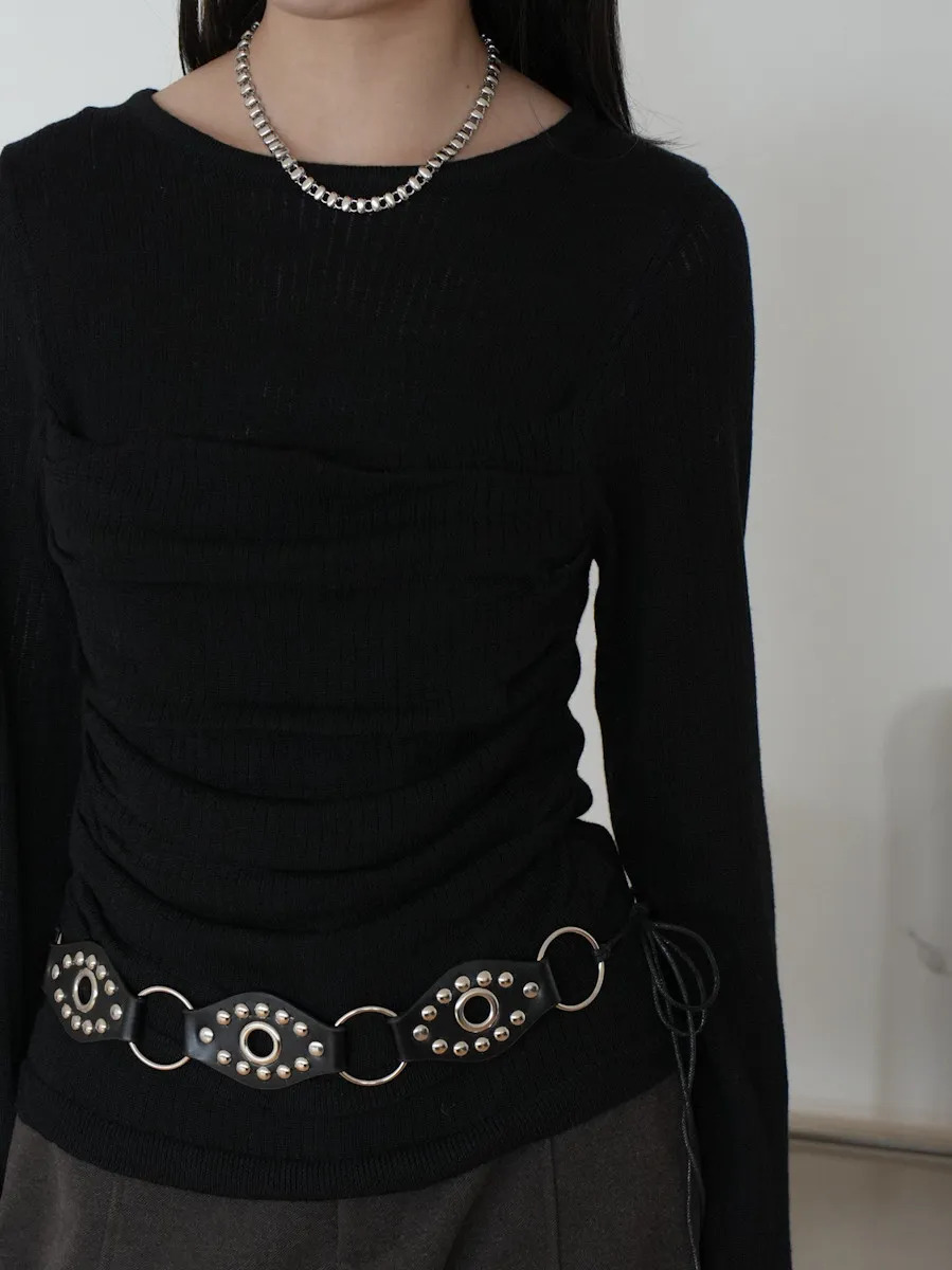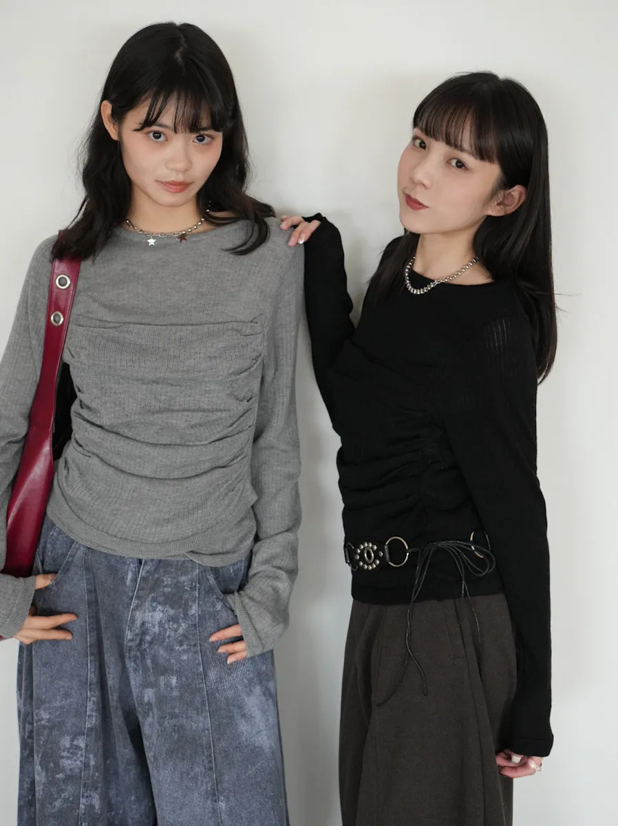 -抓褶羊毛成份毛衣上衣 黑5