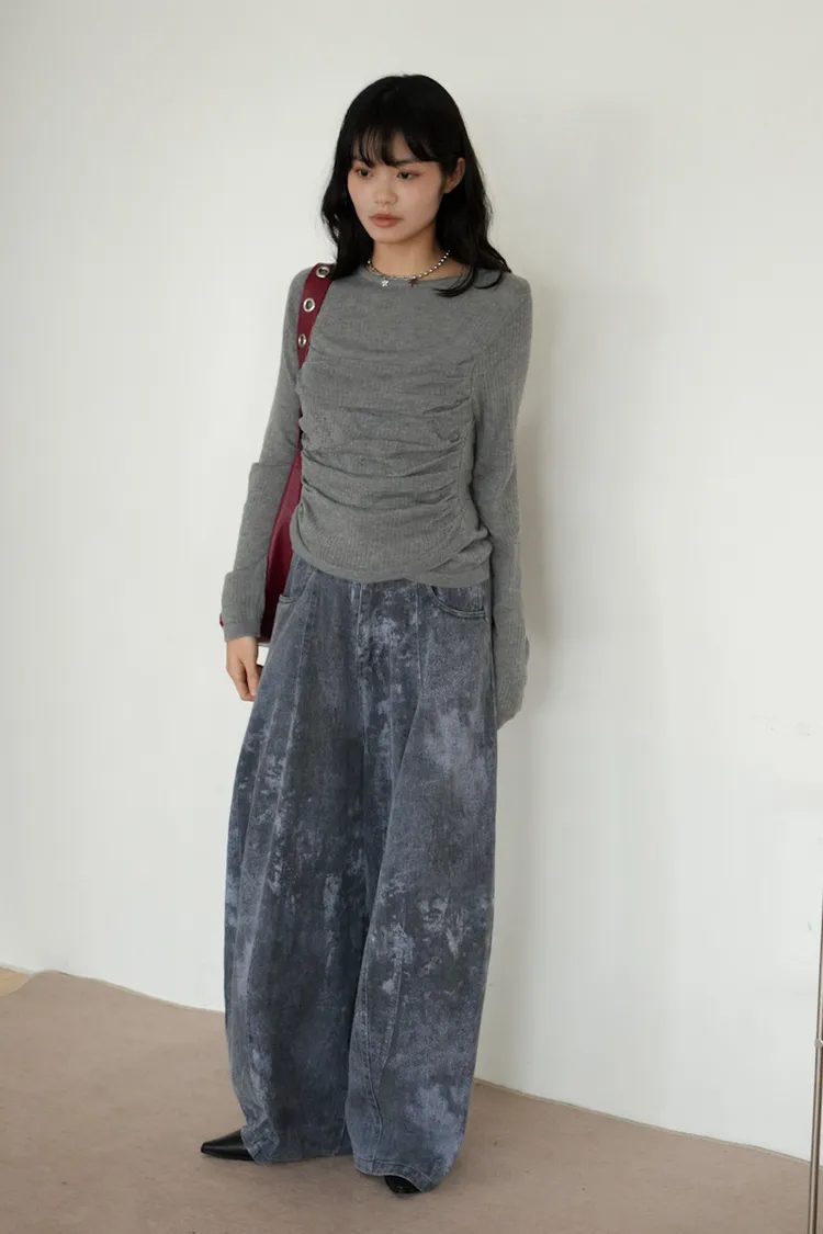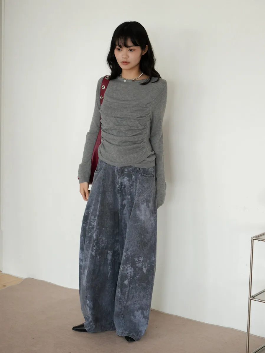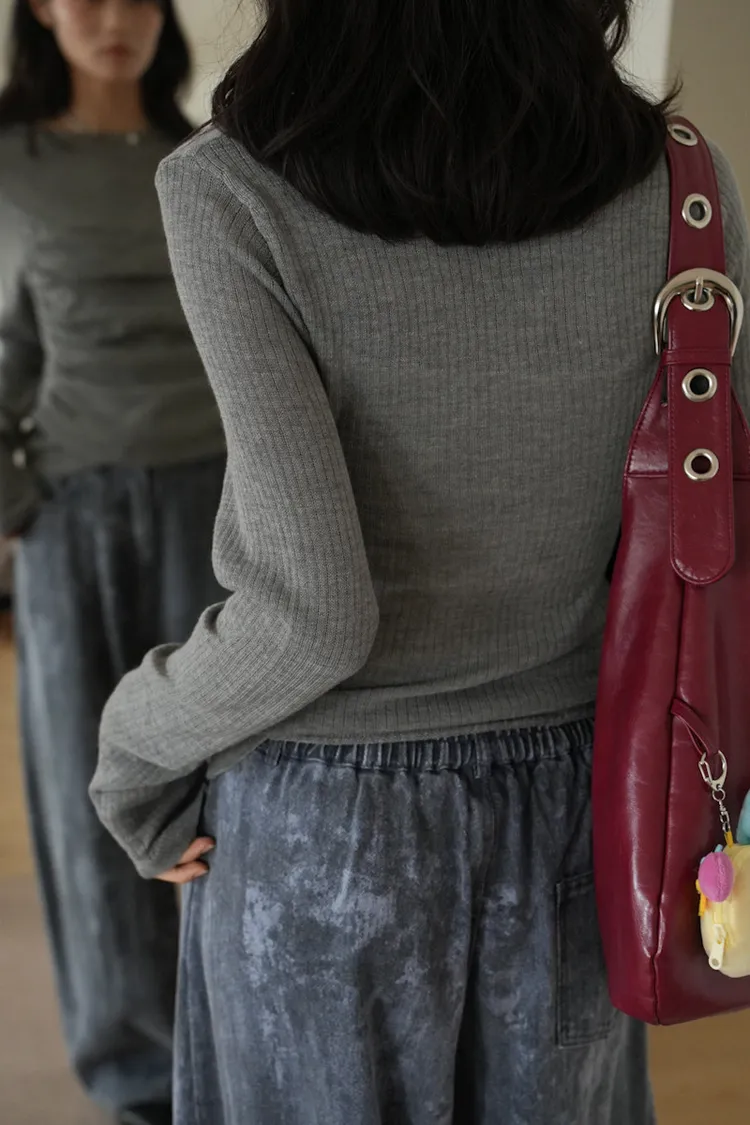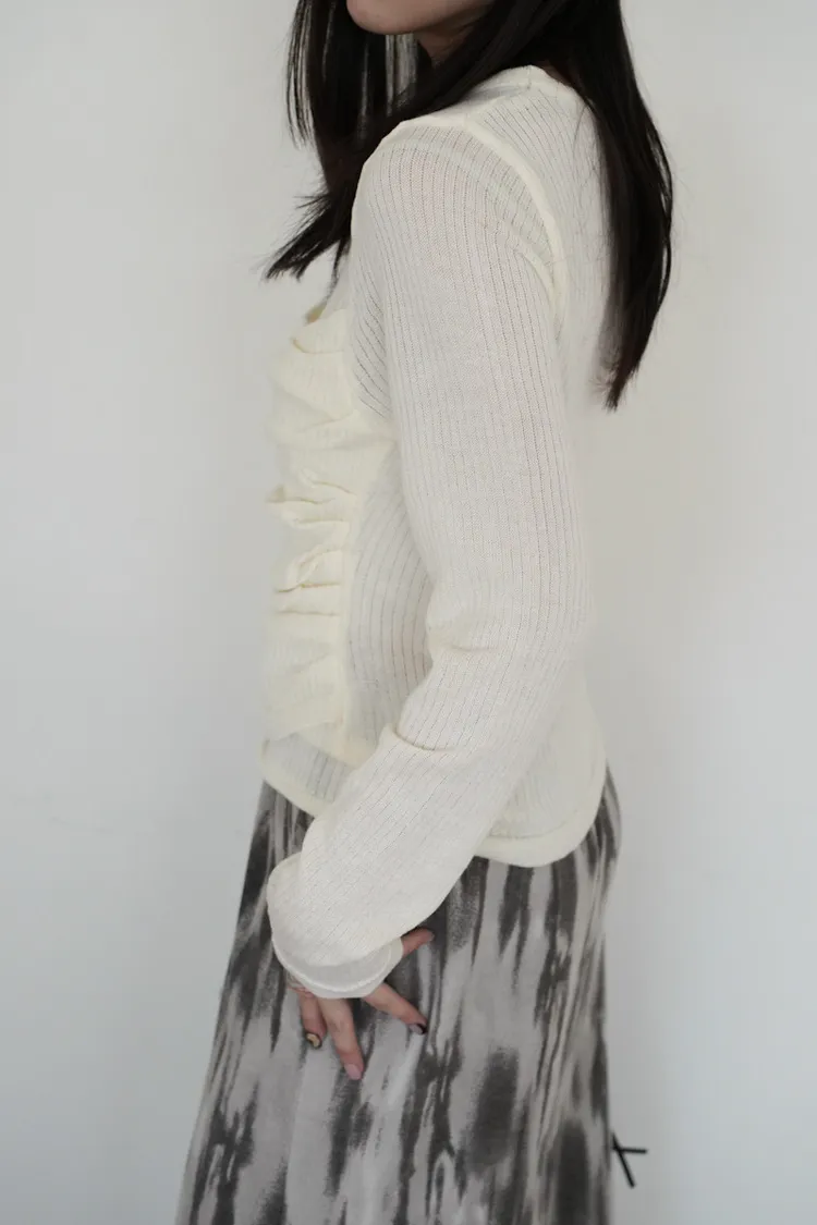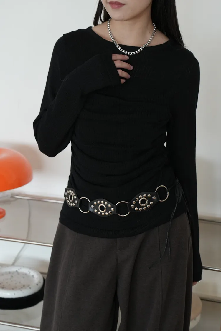 -抓褶羊毛成份毛衣上衣 黑5