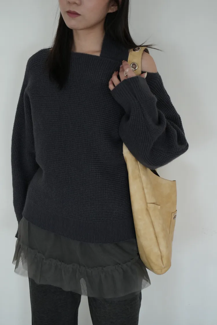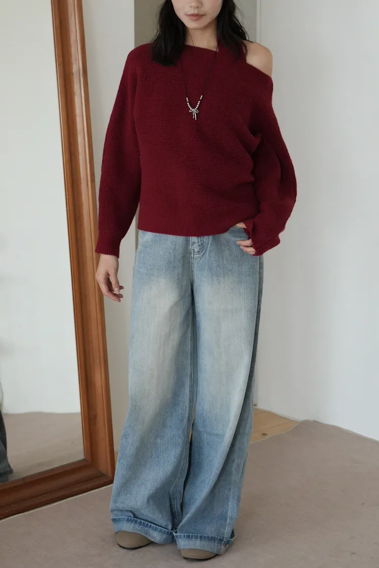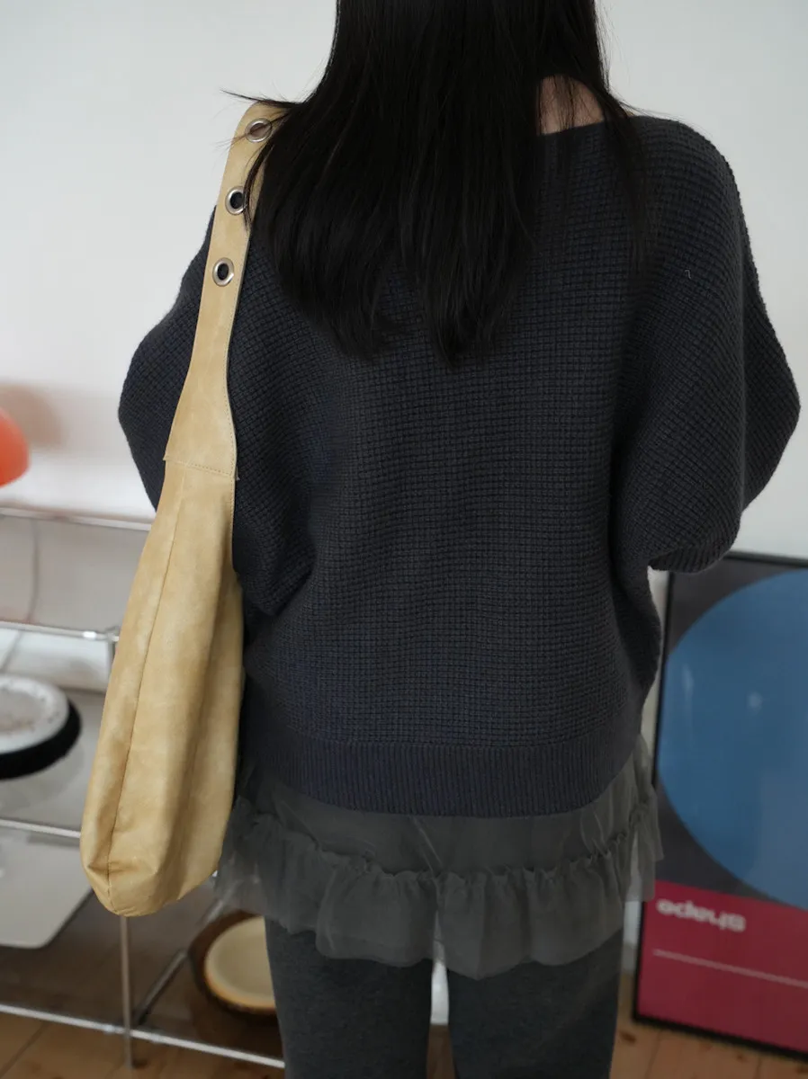 -漂亮舒適華夫格套裝(毛衣+背心)組合 灰1紅3