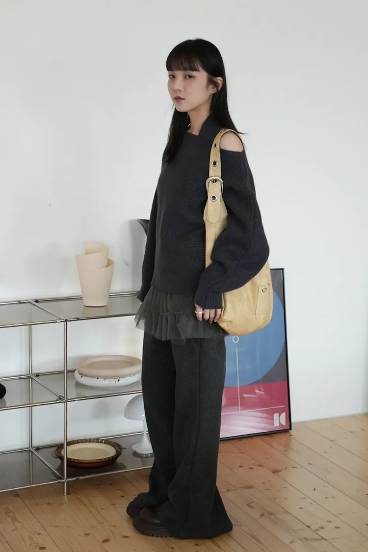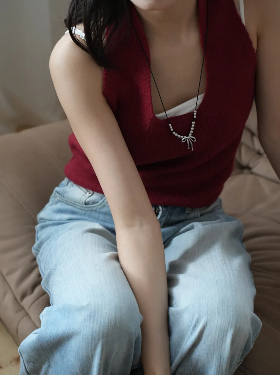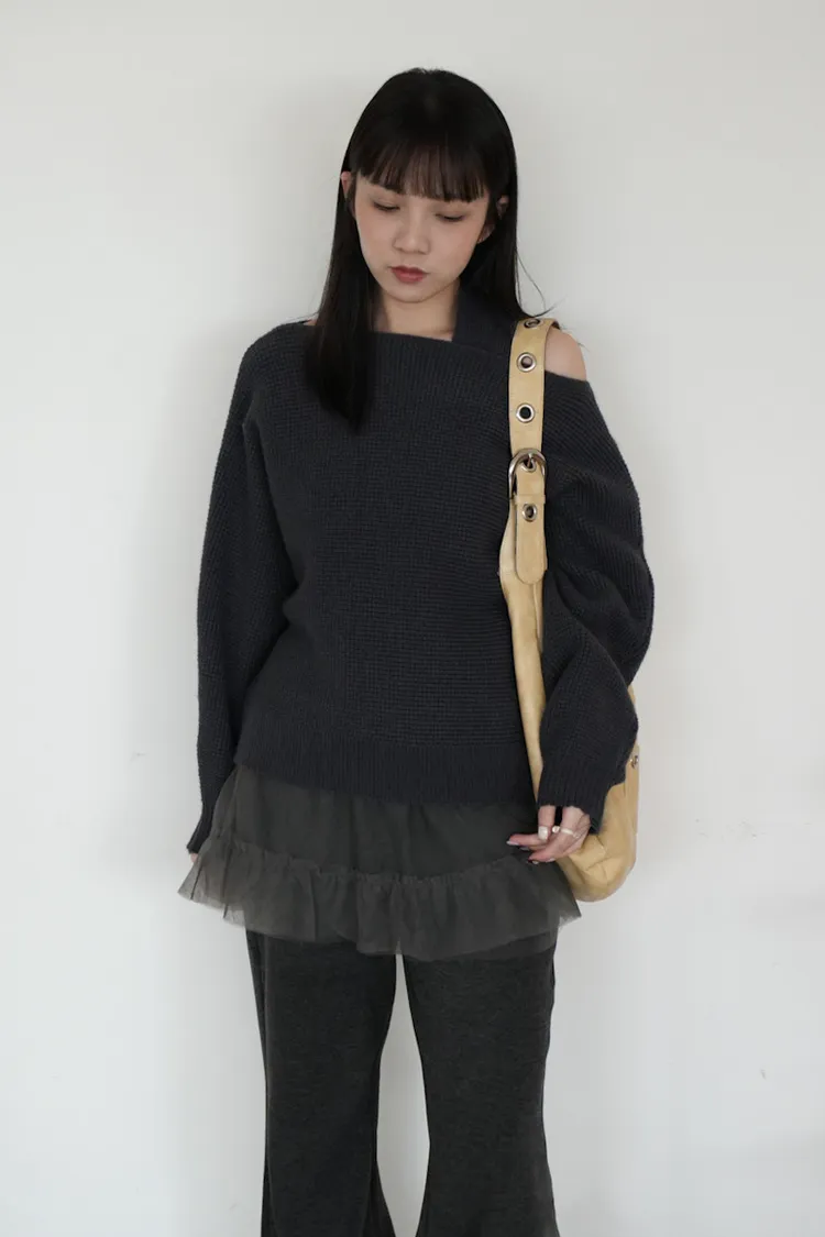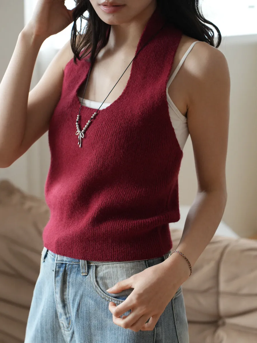 -漂亮舒適華夫格套裝(毛衣+背心)組合 灰1紅3