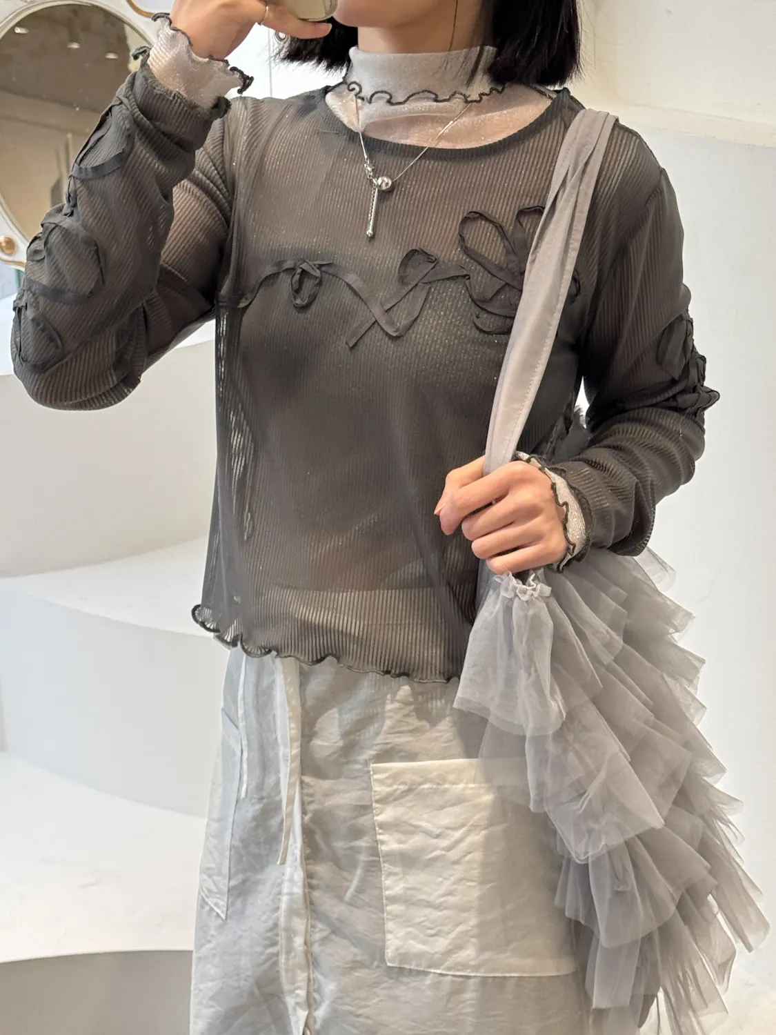 日系立體滾邊花花透色背心 3color