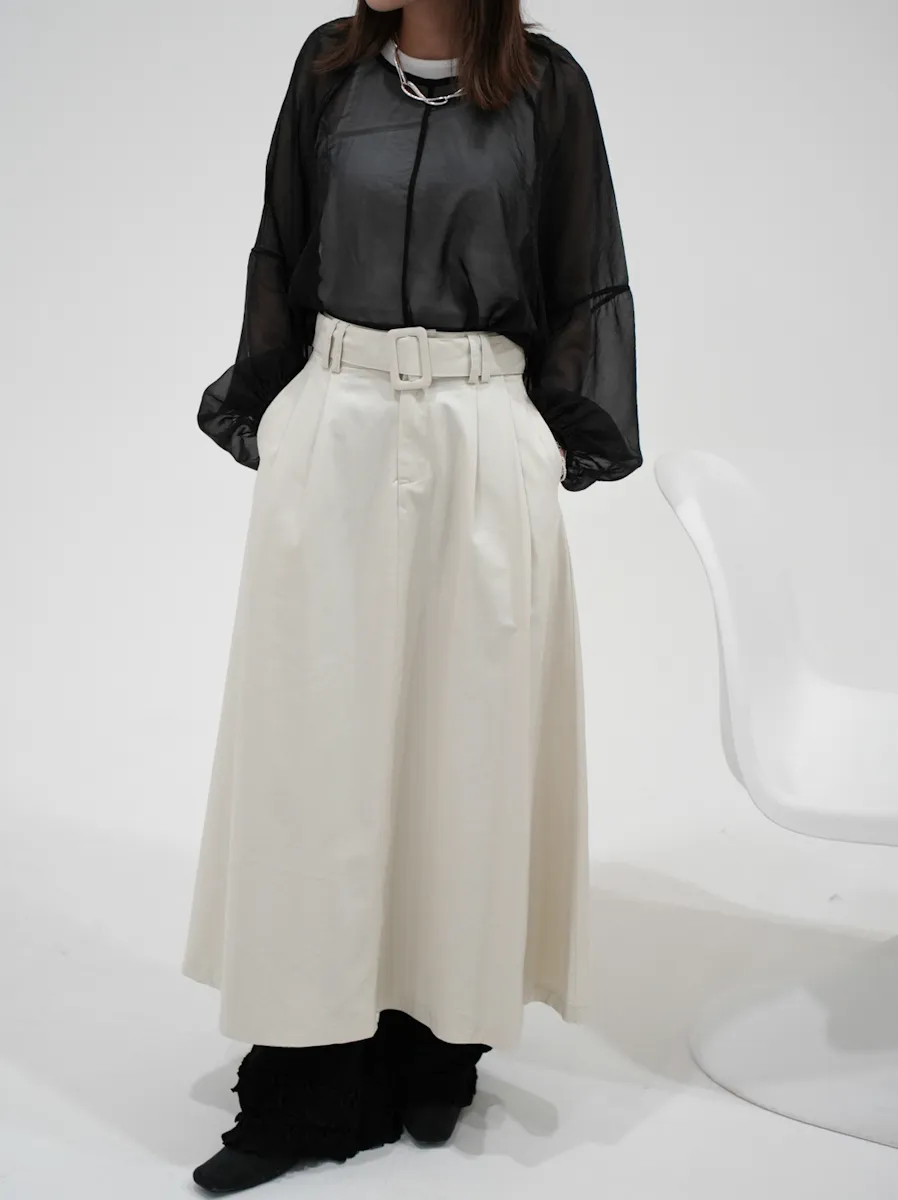 麻豆狠喜歡 垂墜西裝布傘襬附皮帶長裙 4color