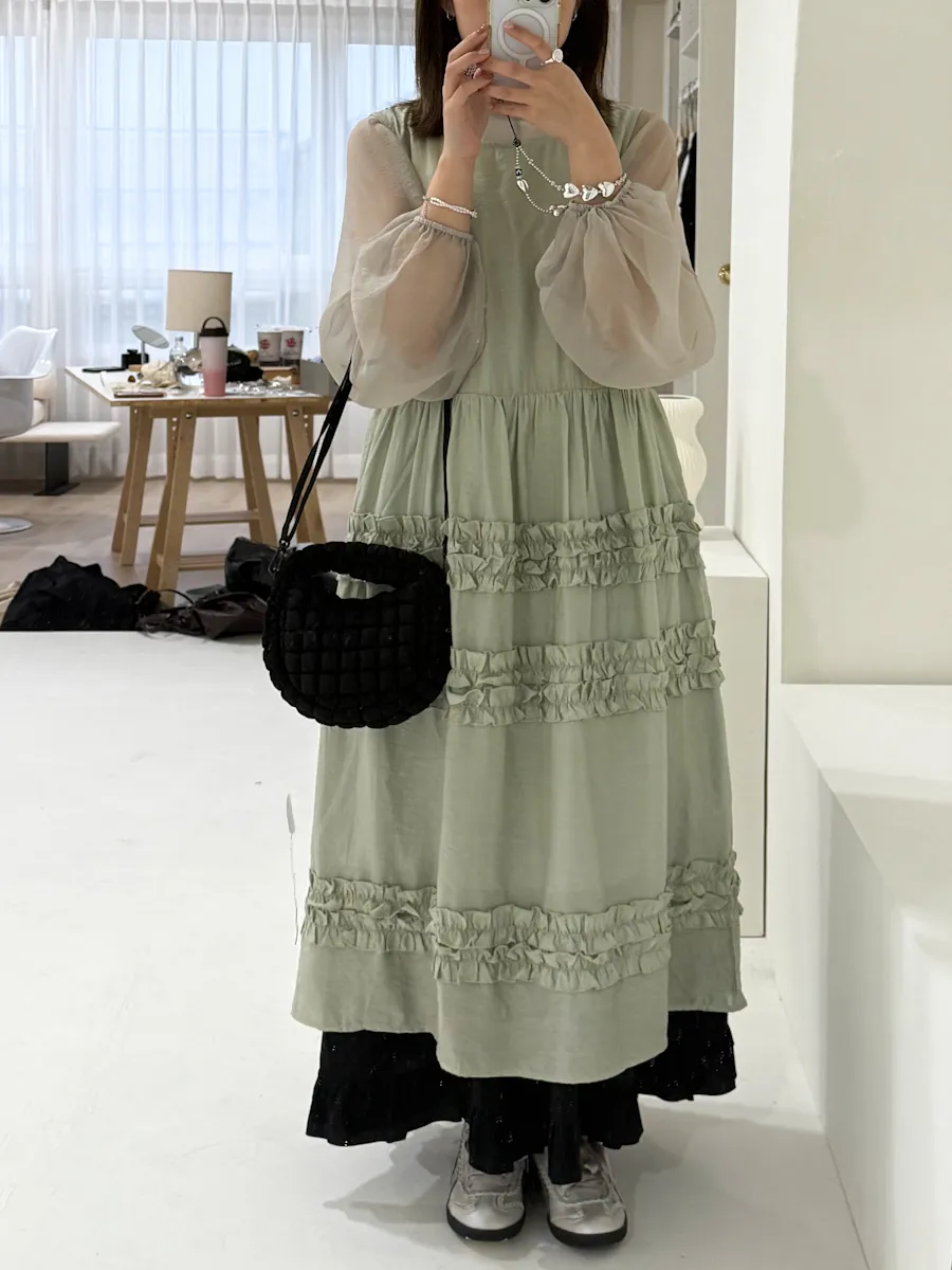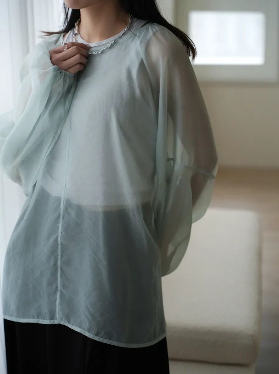 墜入愛河 透光紗質浪漫寬袖上衣 5color