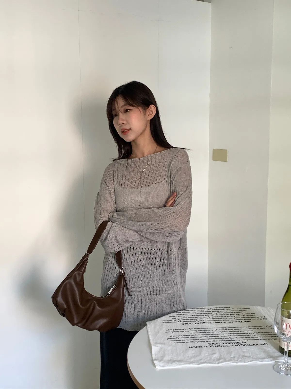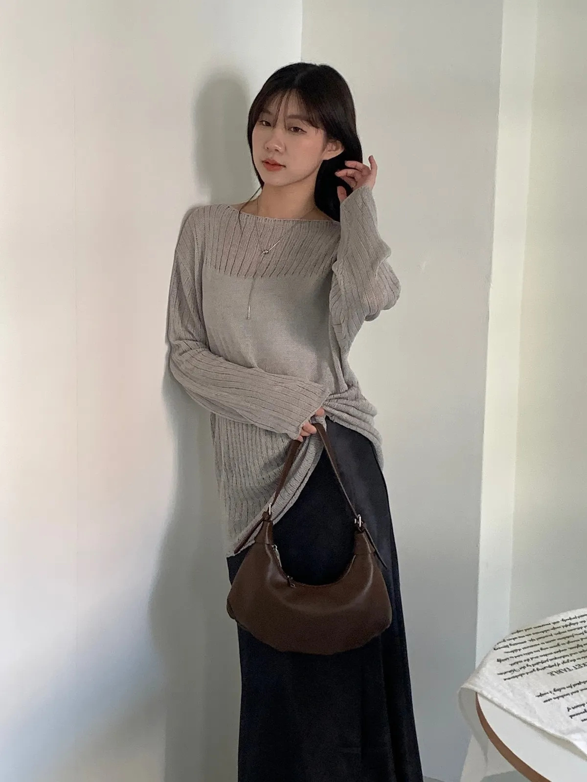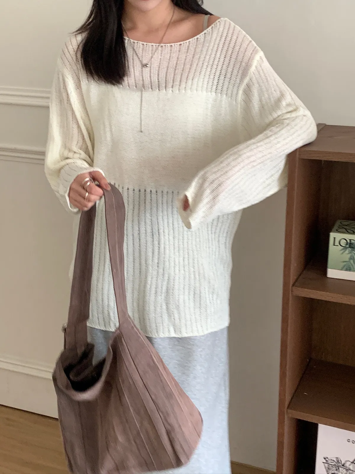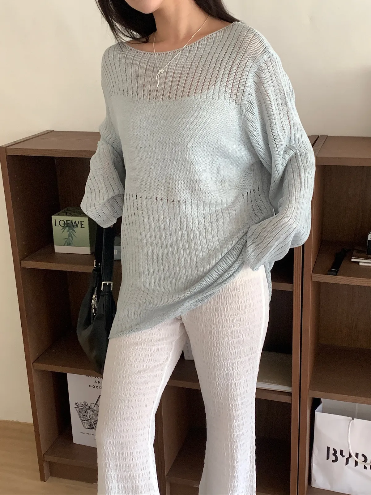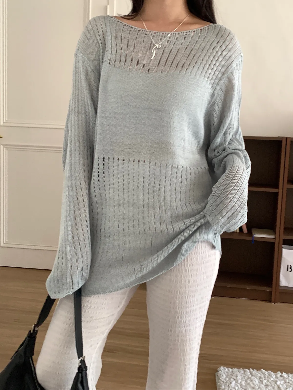 尊的好看!洞洞寬版拼塊針織上衣 3color