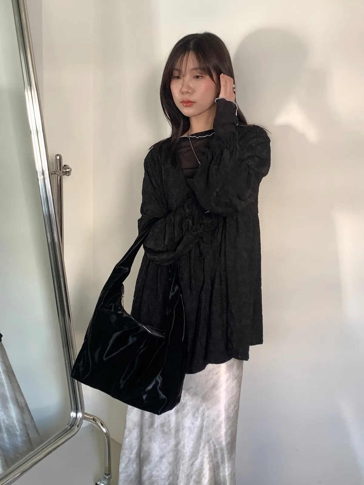 單釦,手袖鬆緊帶縮口,寬鬆版型,棉花糖可