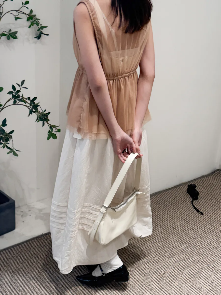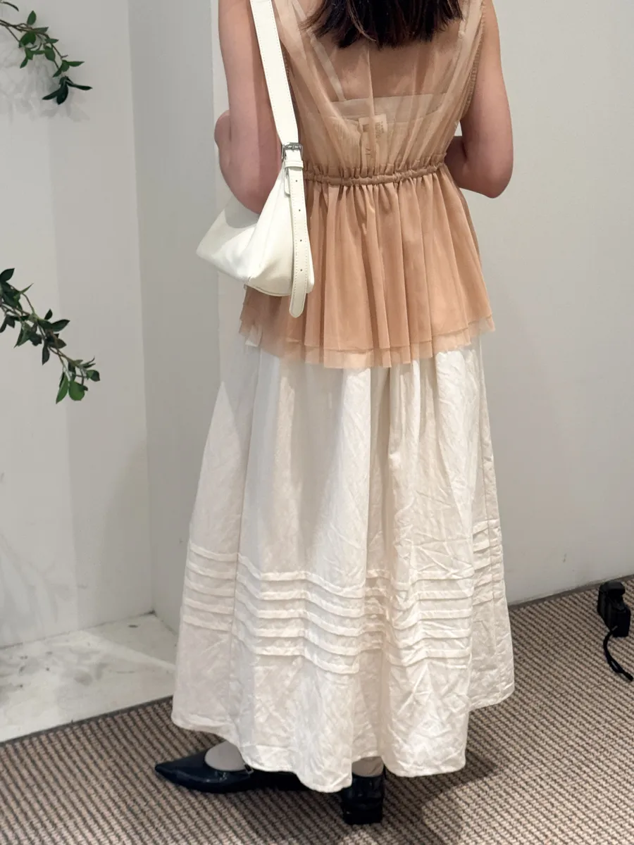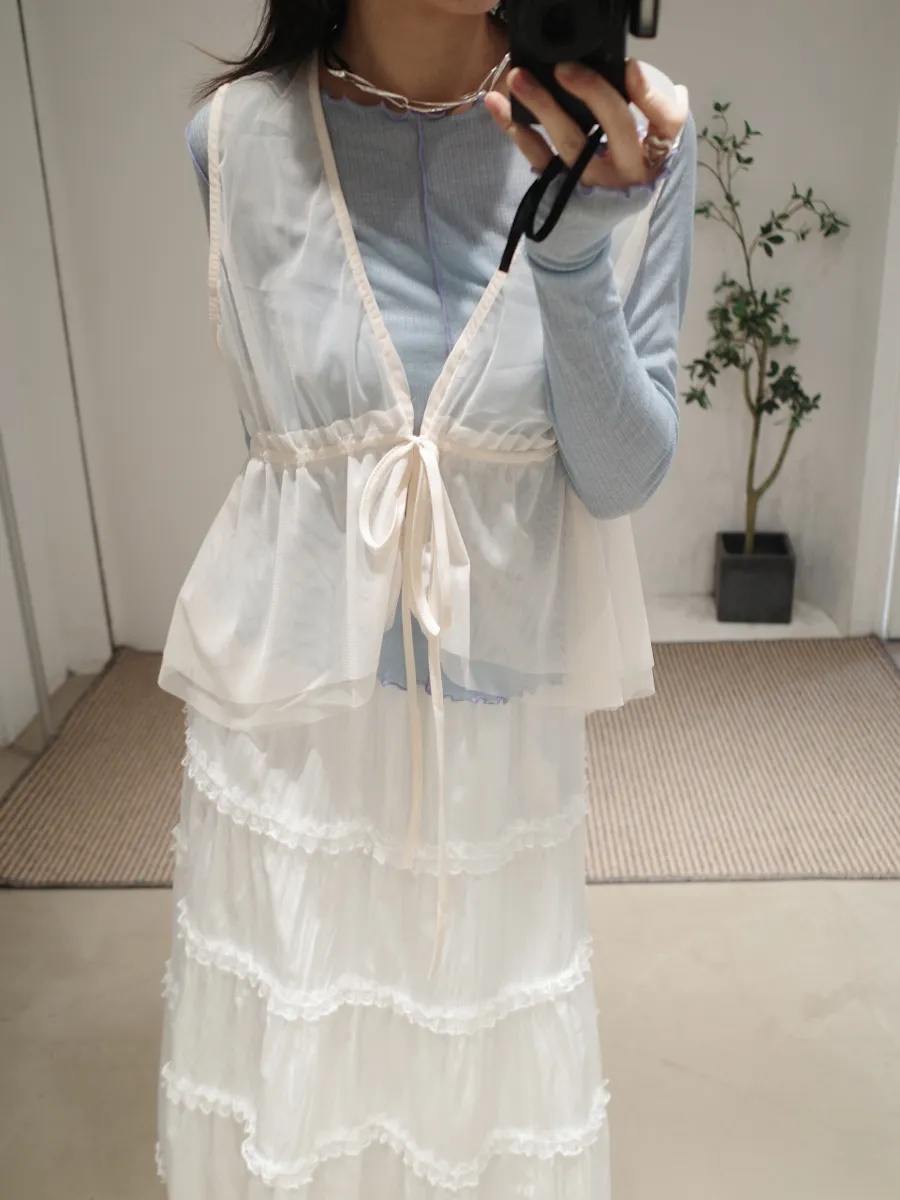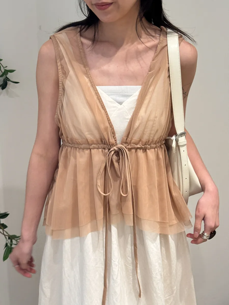 日系疊穿款紗質感抽繩背心上衣 4color