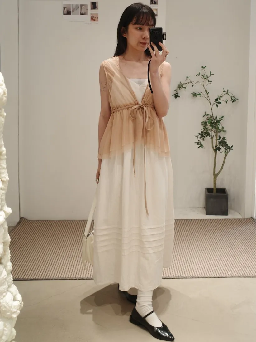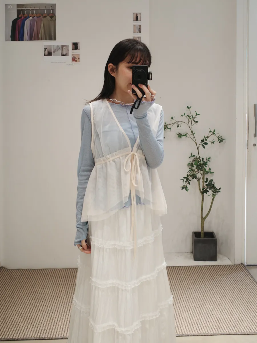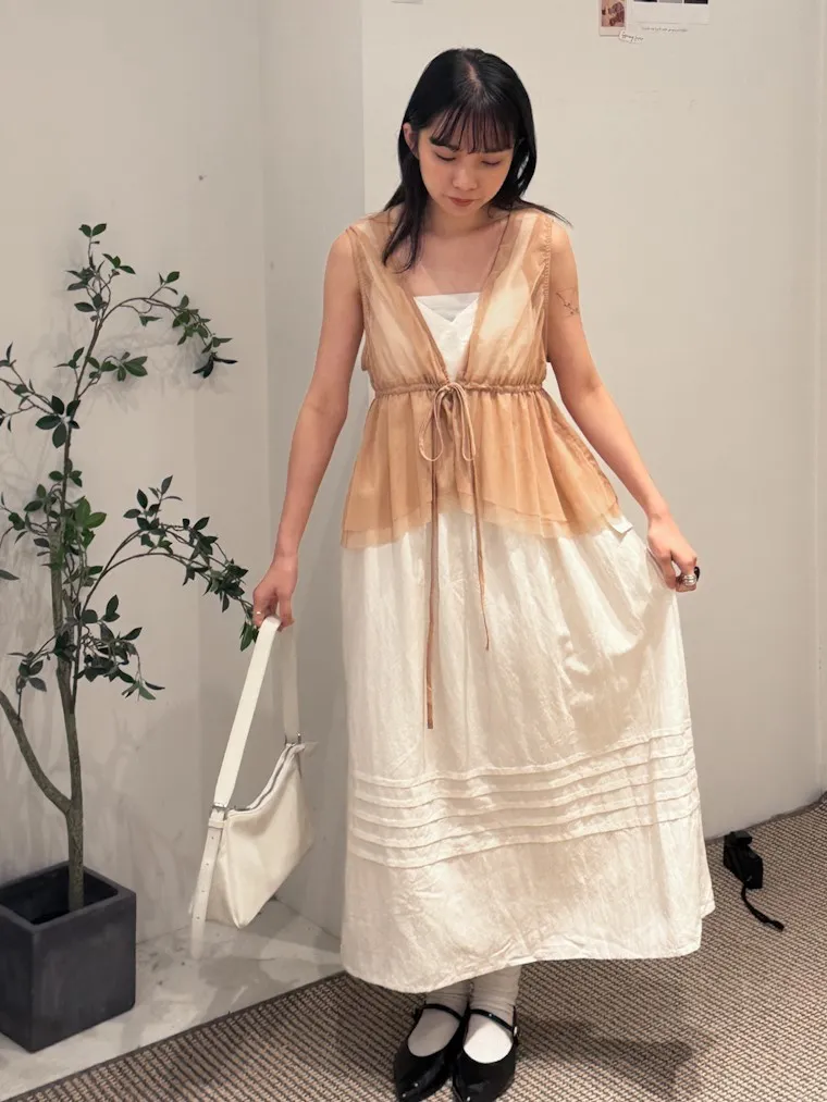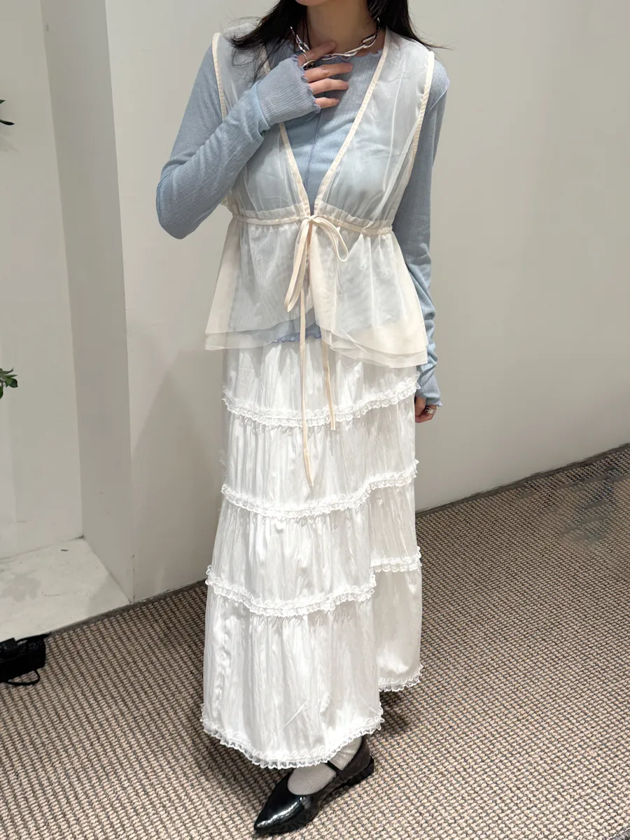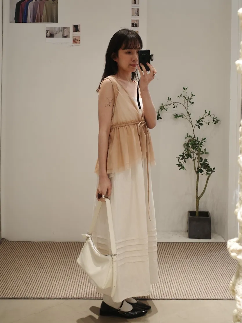 日系疊穿款紗質感抽繩背心上衣 4color