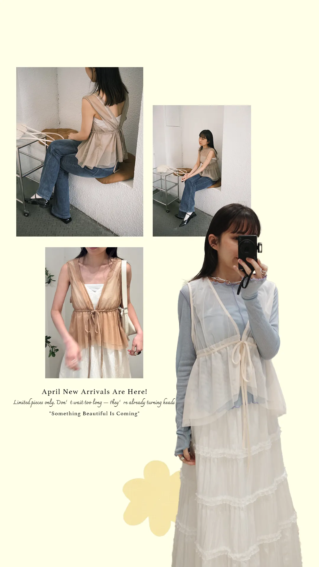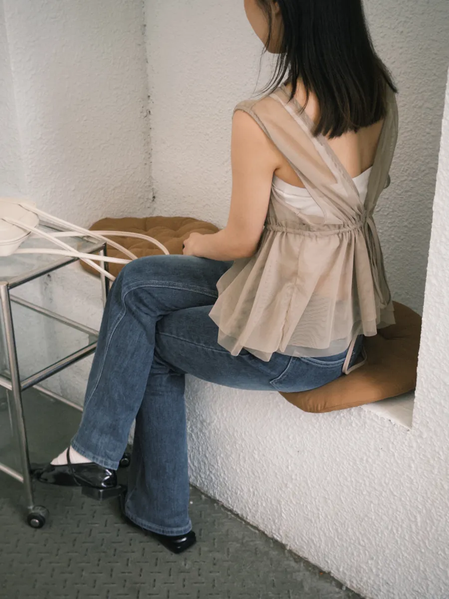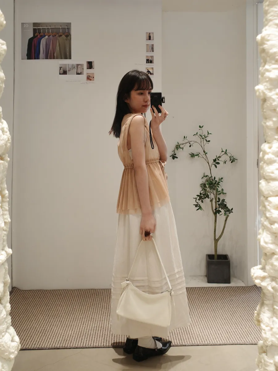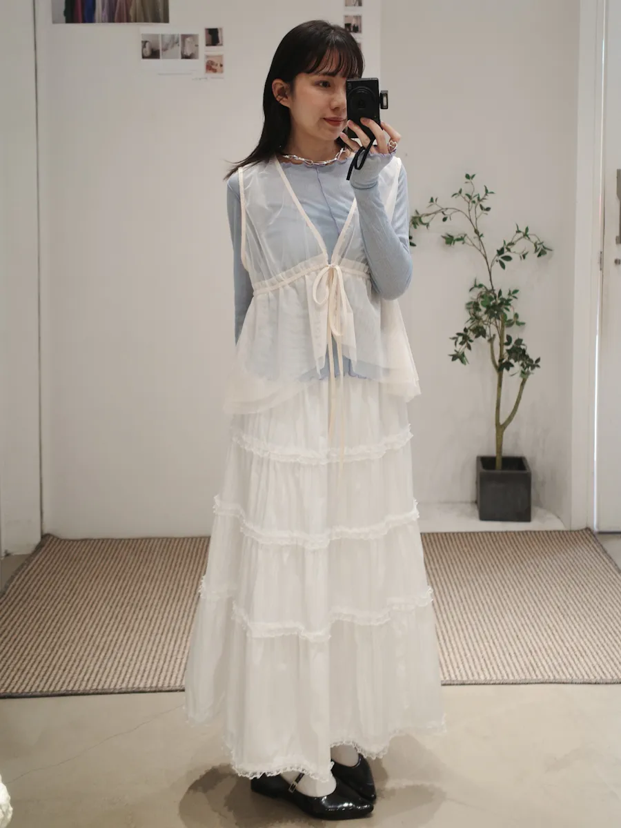 日系疊穿款紗質感抽繩背心上衣 4color