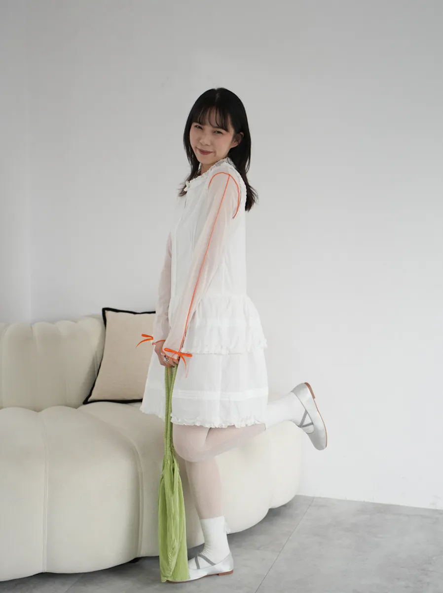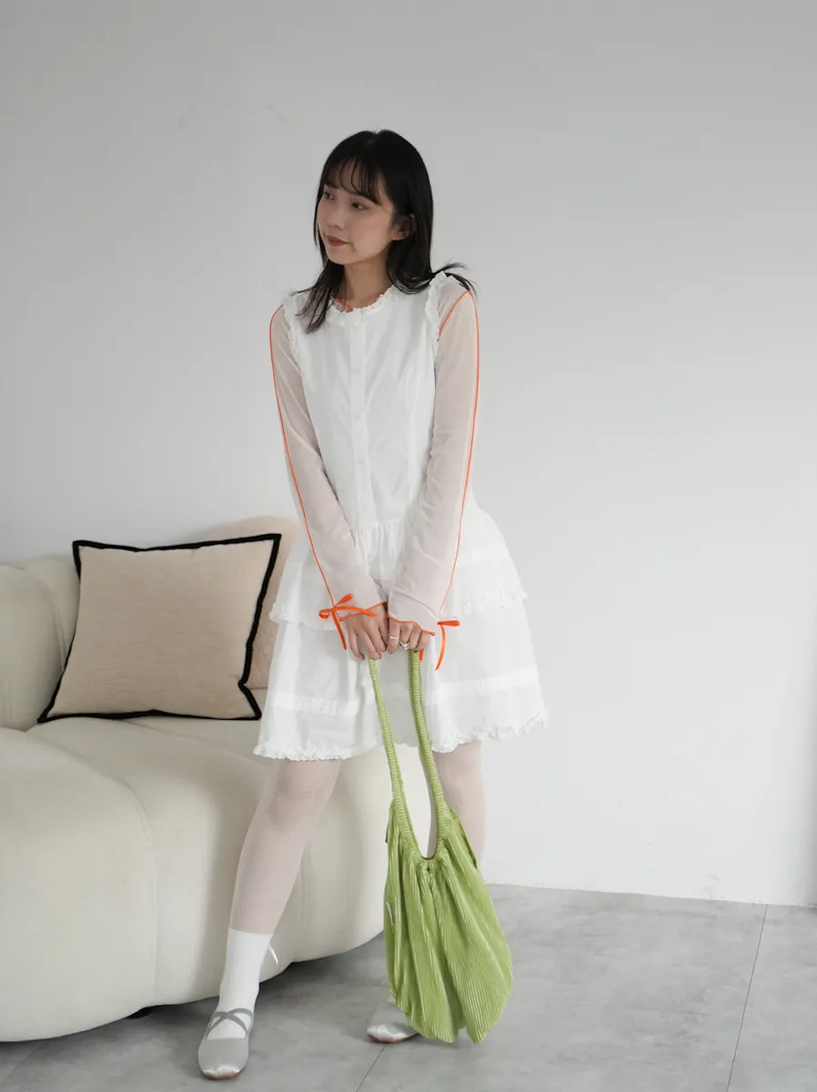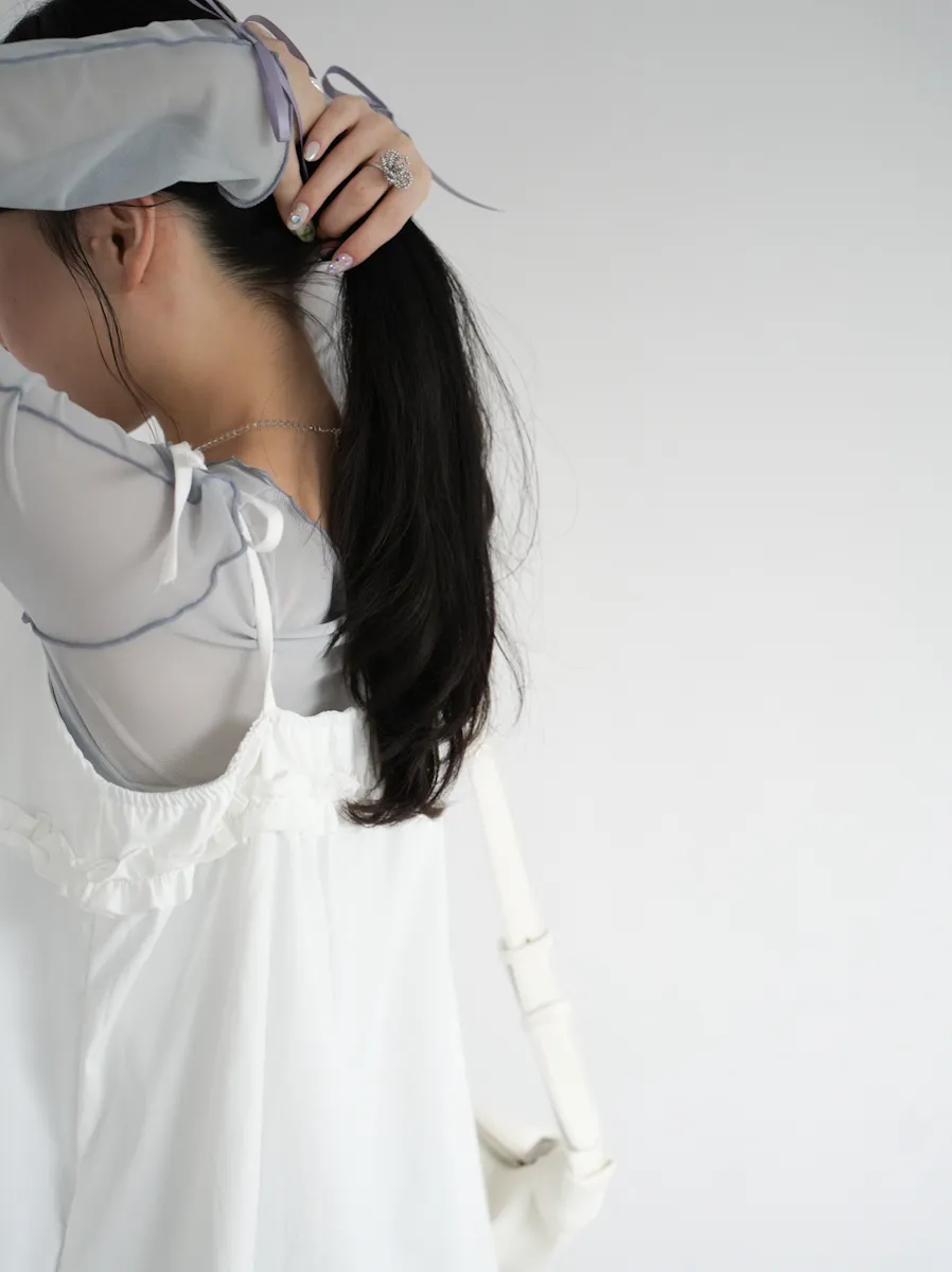 透膚還配上滾邊撞色重點是袖口還尬一個蝴蝶結