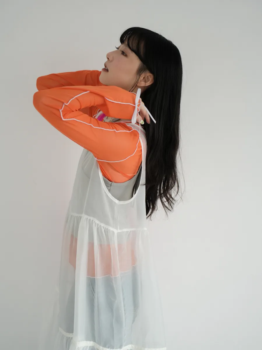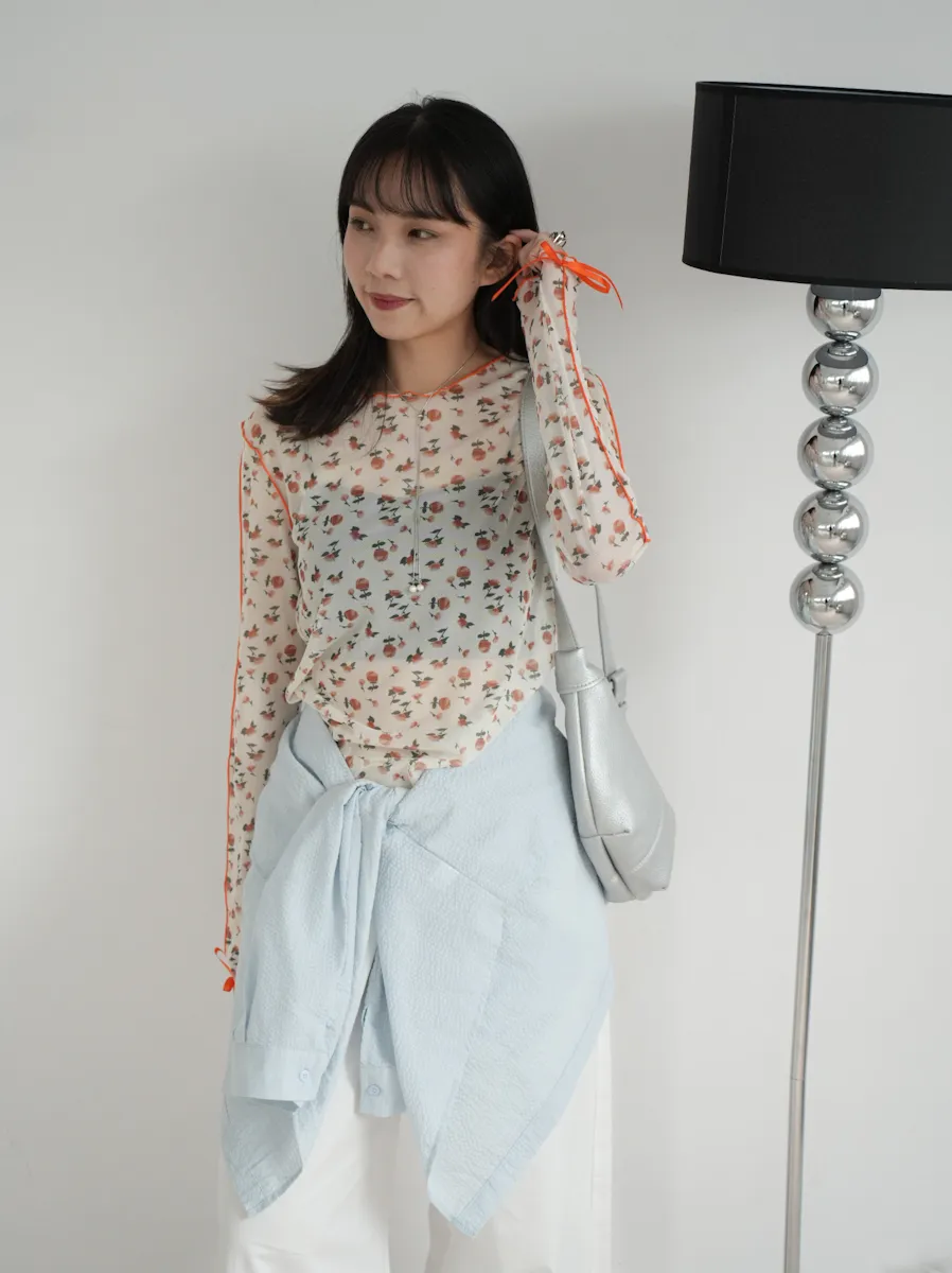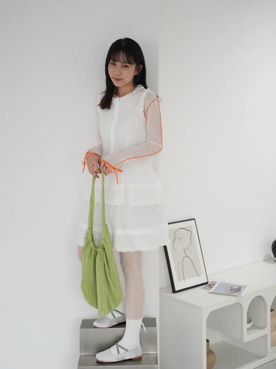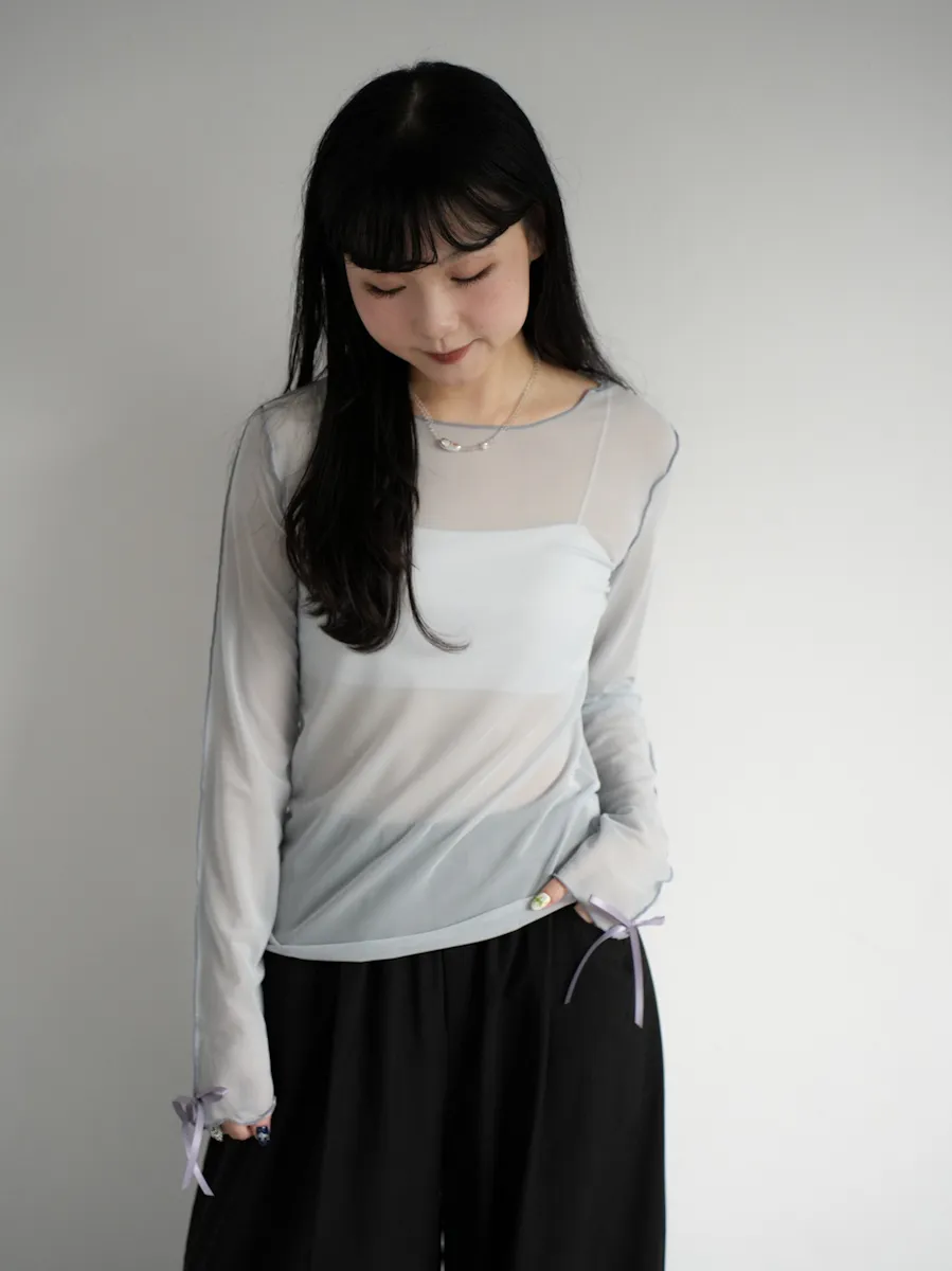 透膚還配上滾邊撞色重點是袖口還尬一個蝴蝶結