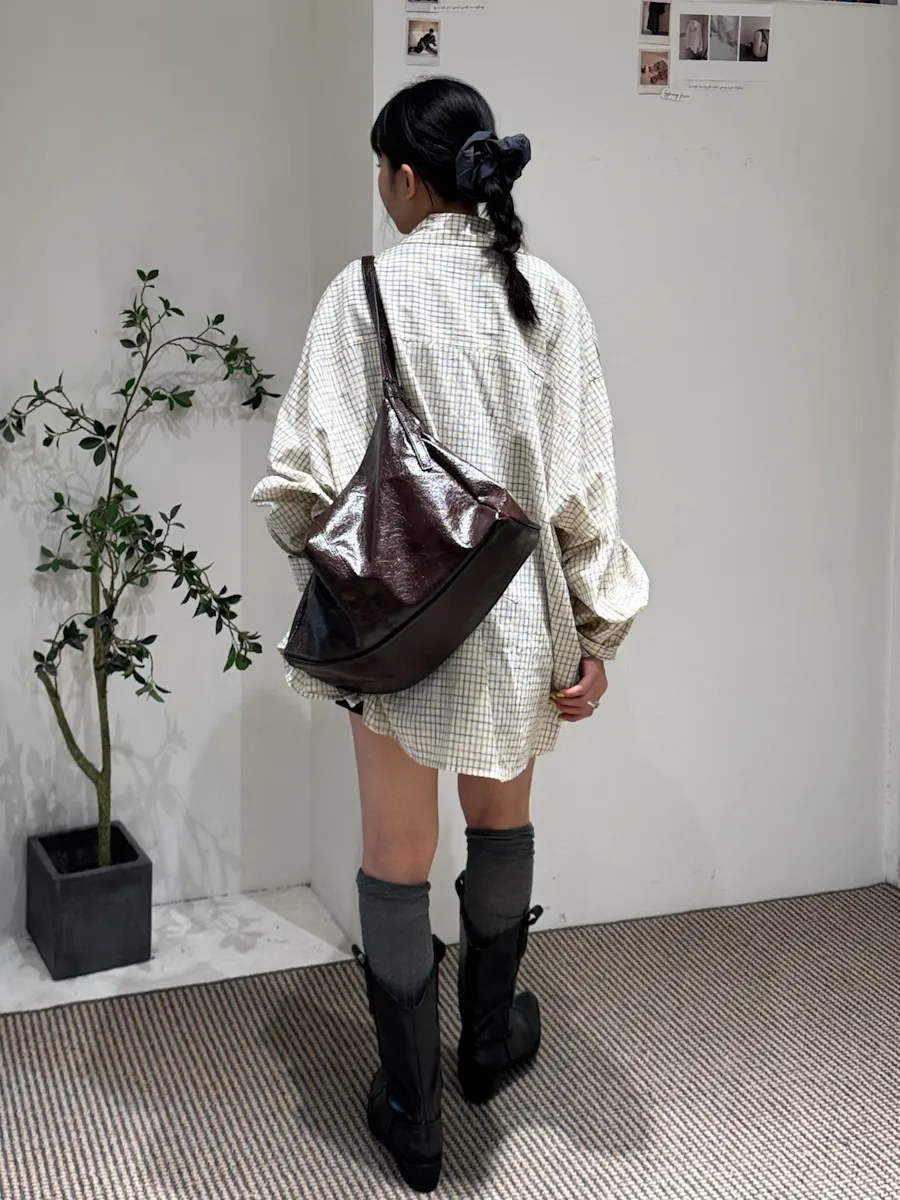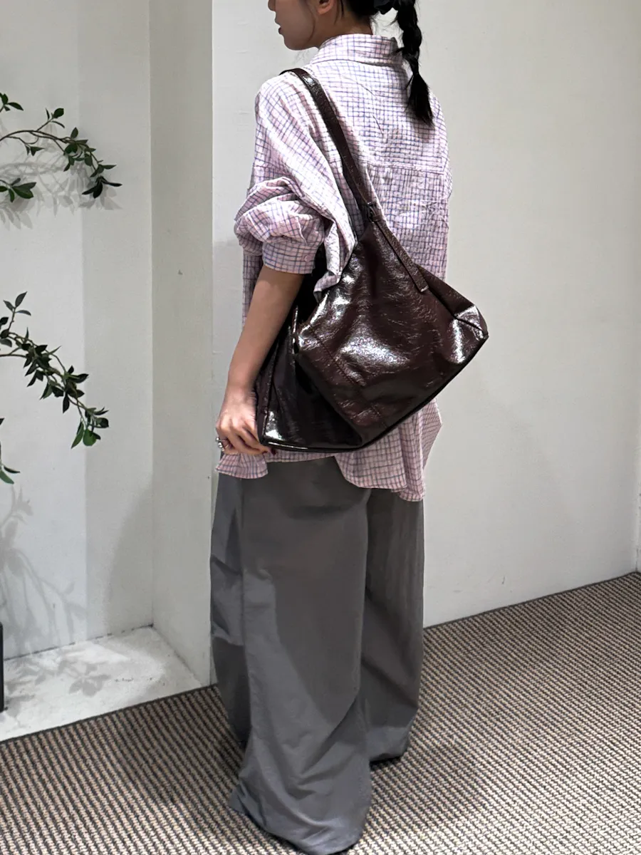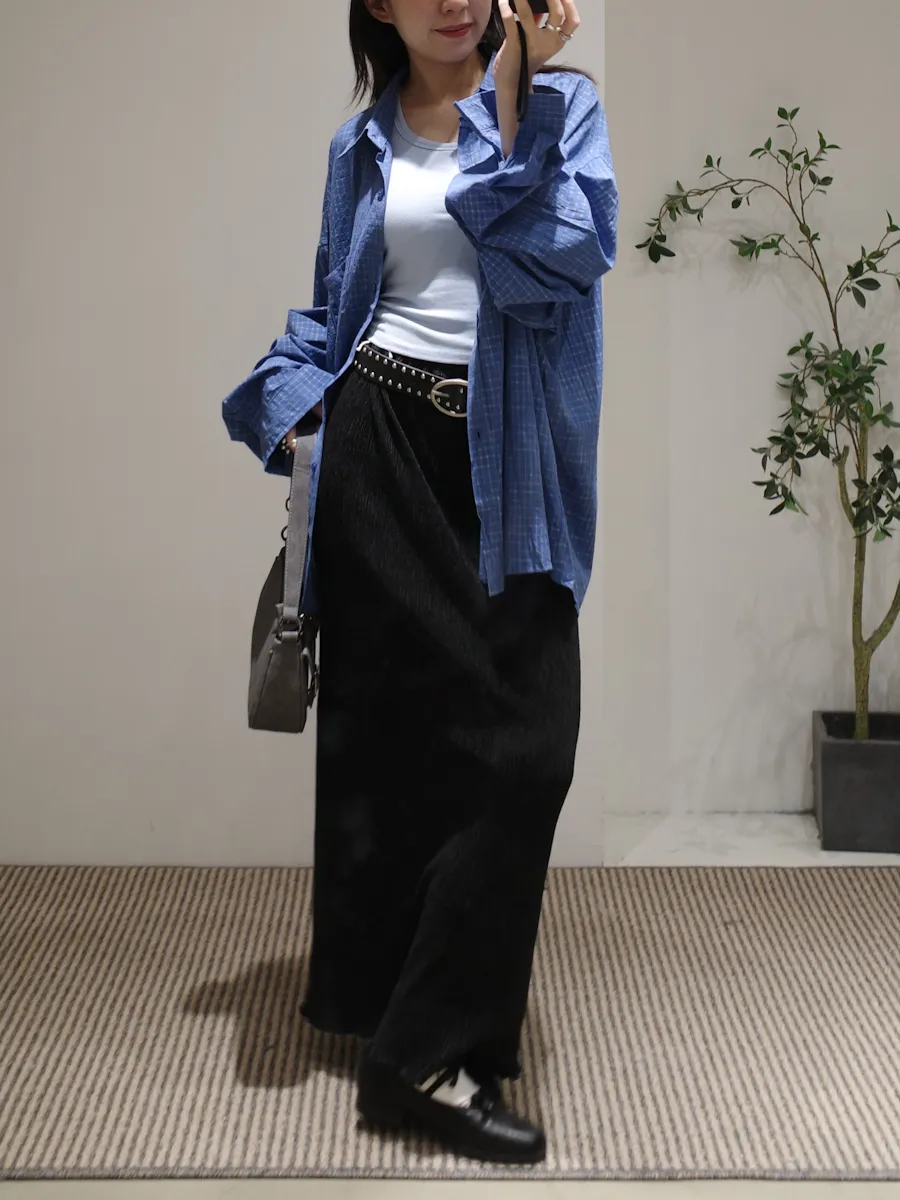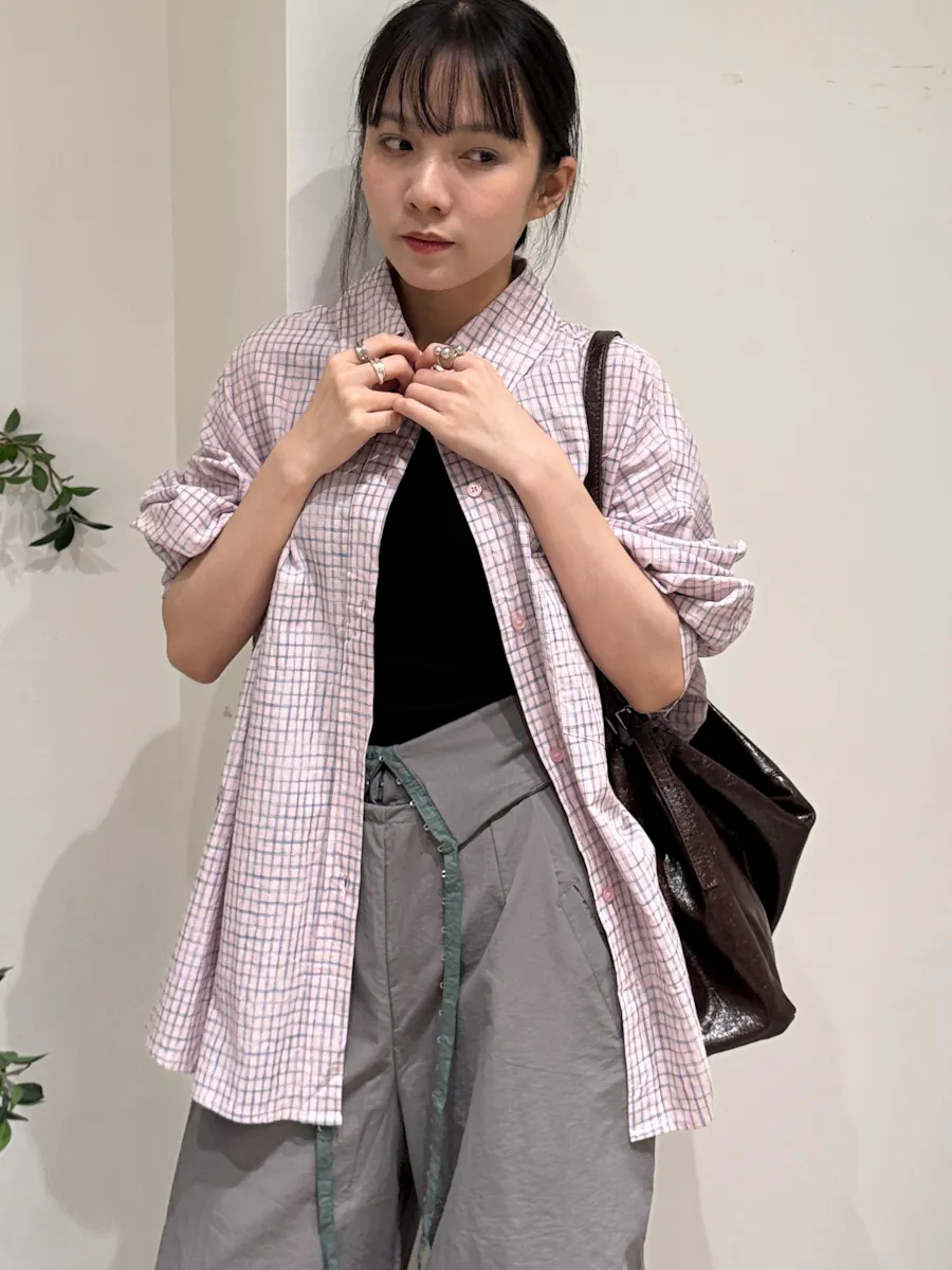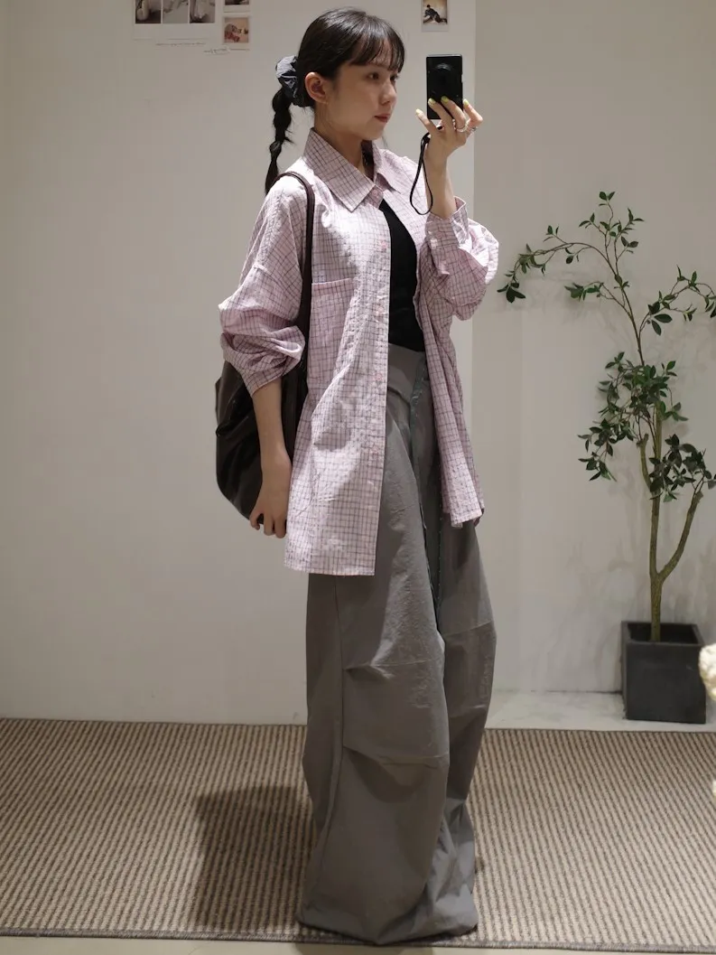 盼望愛情格紋泡泡感長袖襯衫 4color