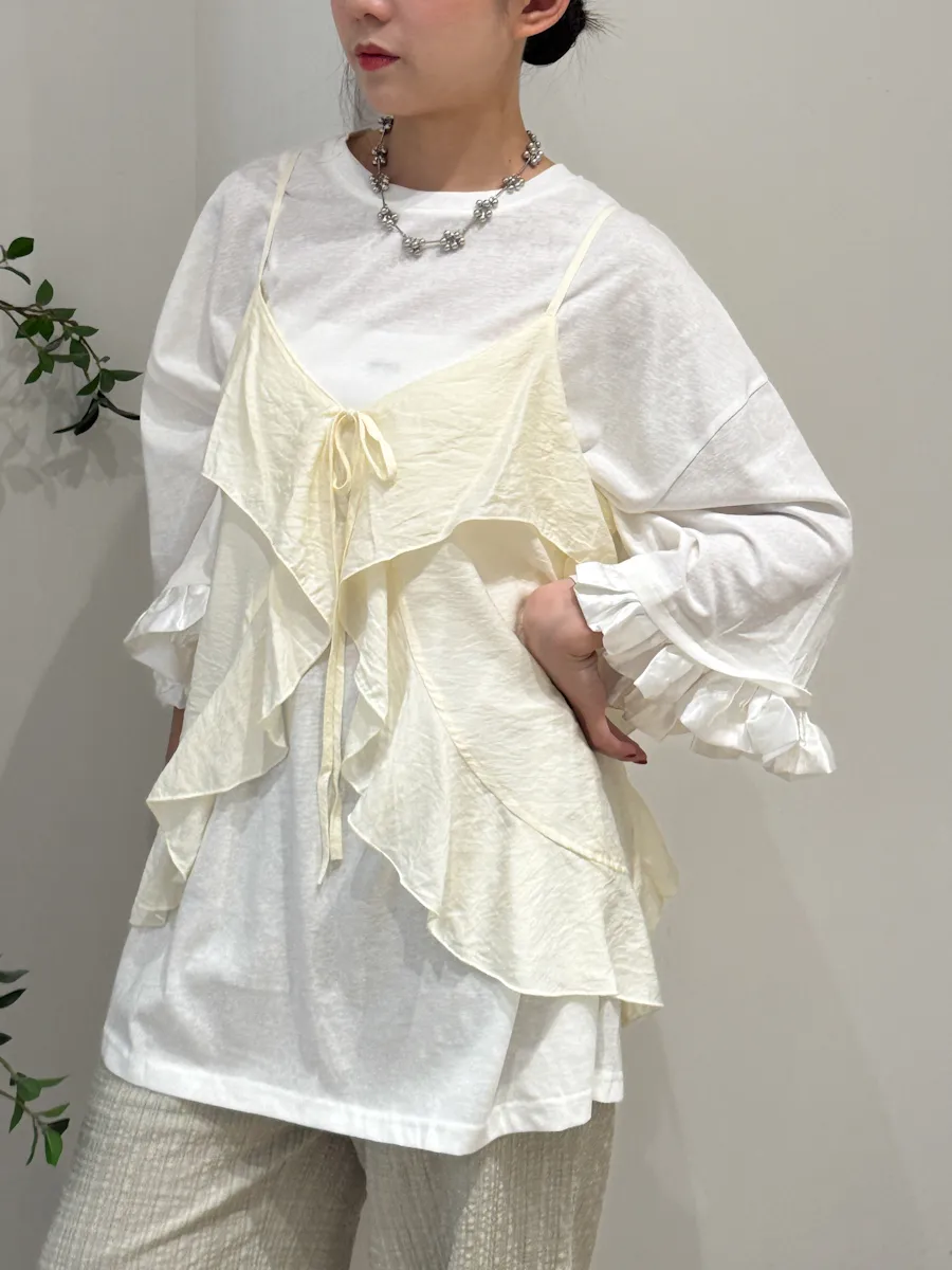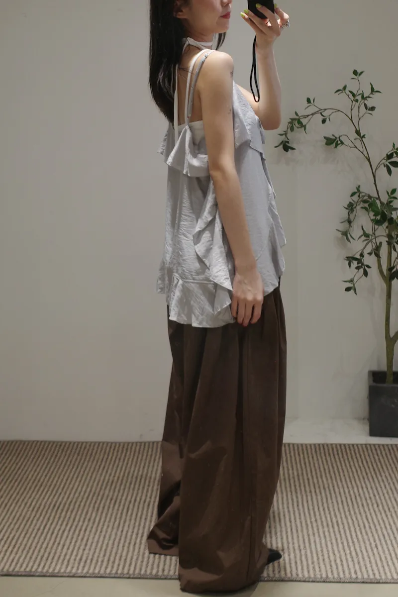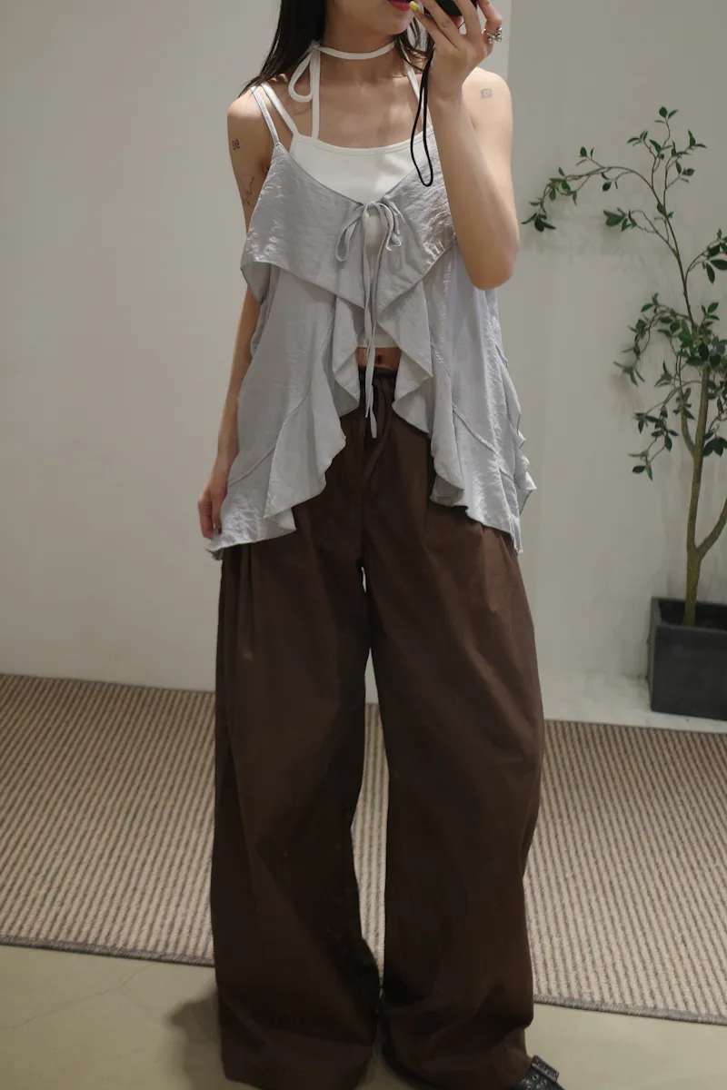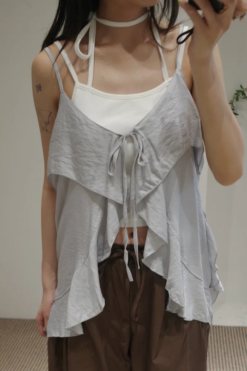 -12 °c荷葉領飄帶軟綿素色細肩背心 3color