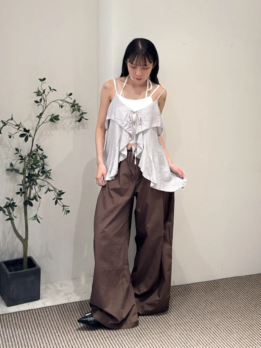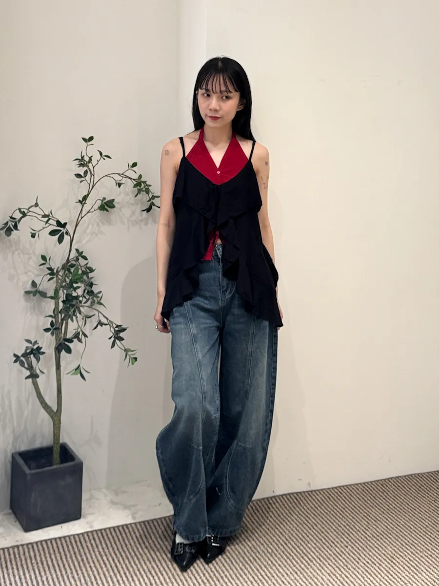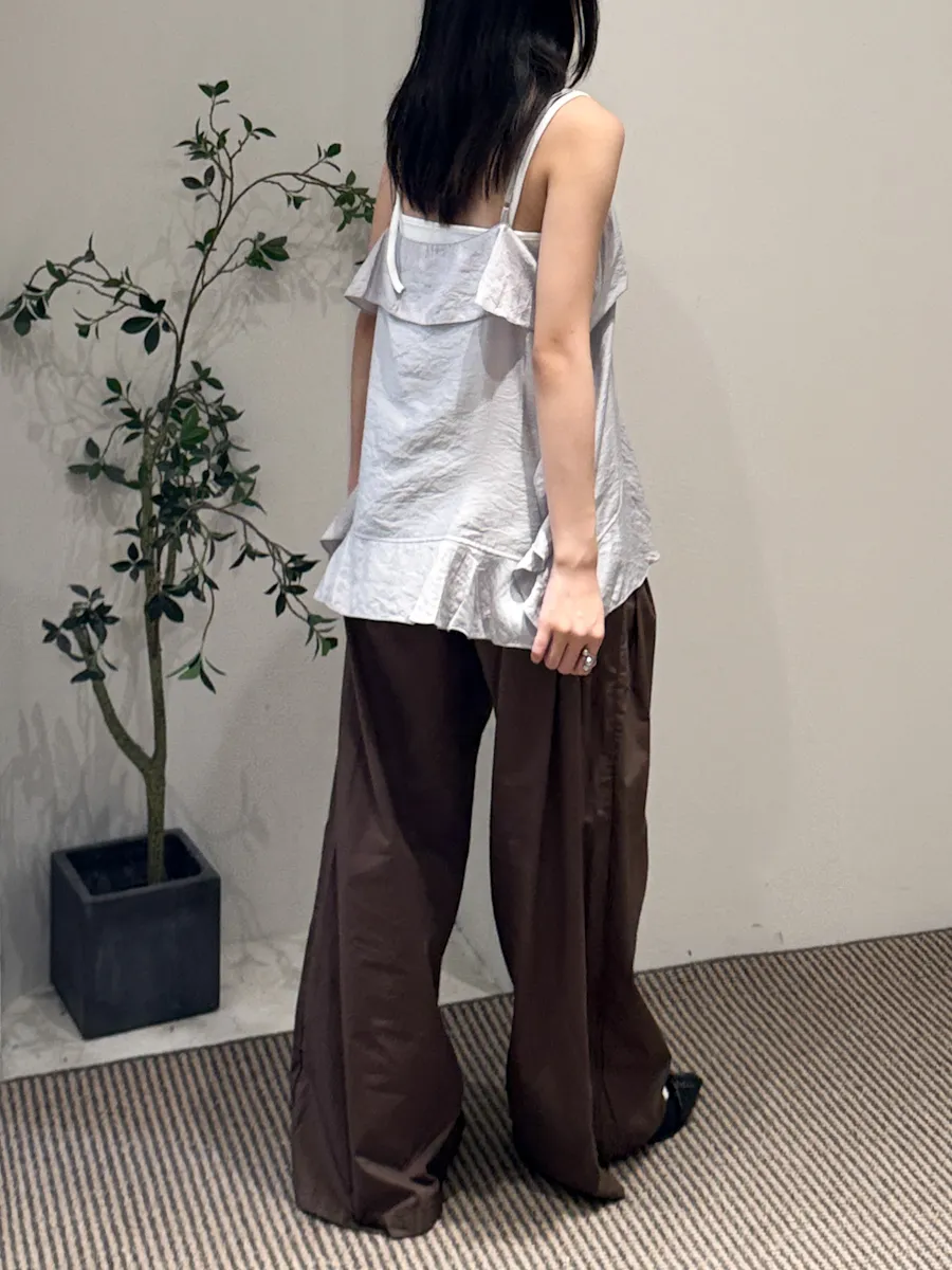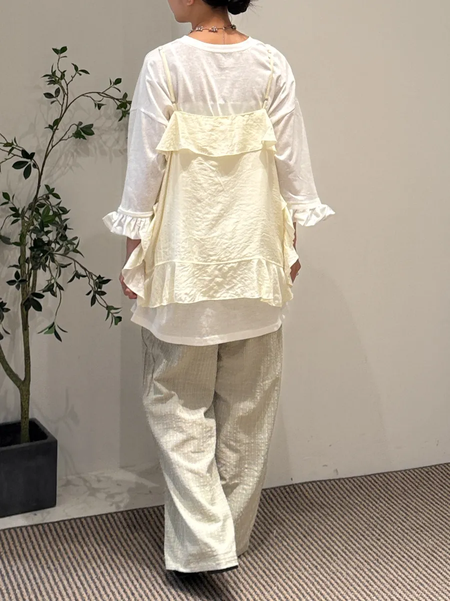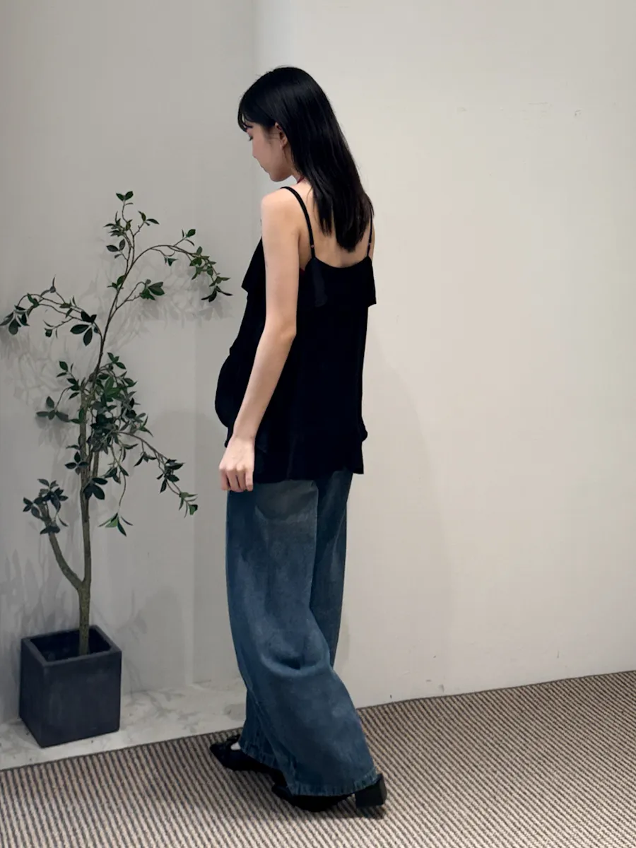 -12 °c荷葉領飄帶軟綿素色細肩背心 3color