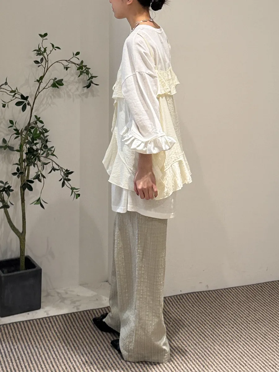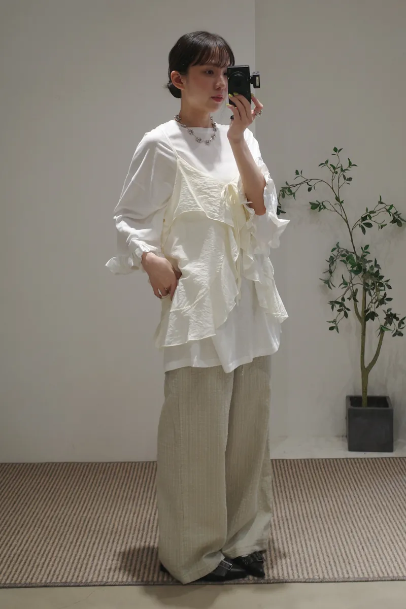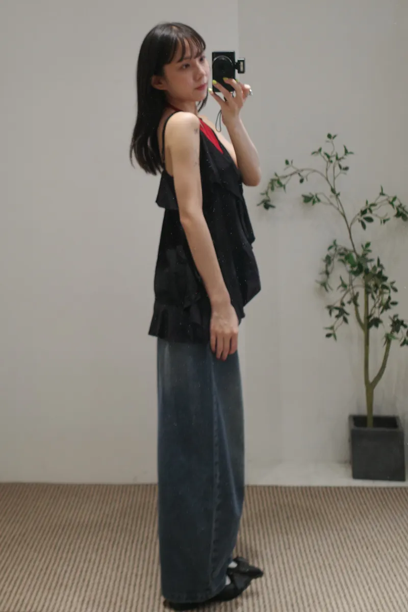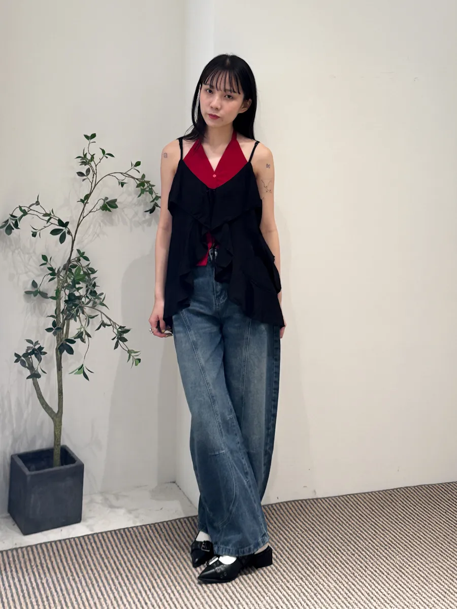 -12 °c荷葉領飄帶軟綿素色細肩背心 3color
