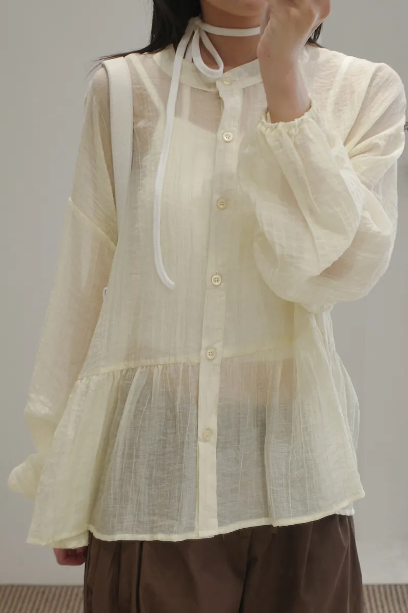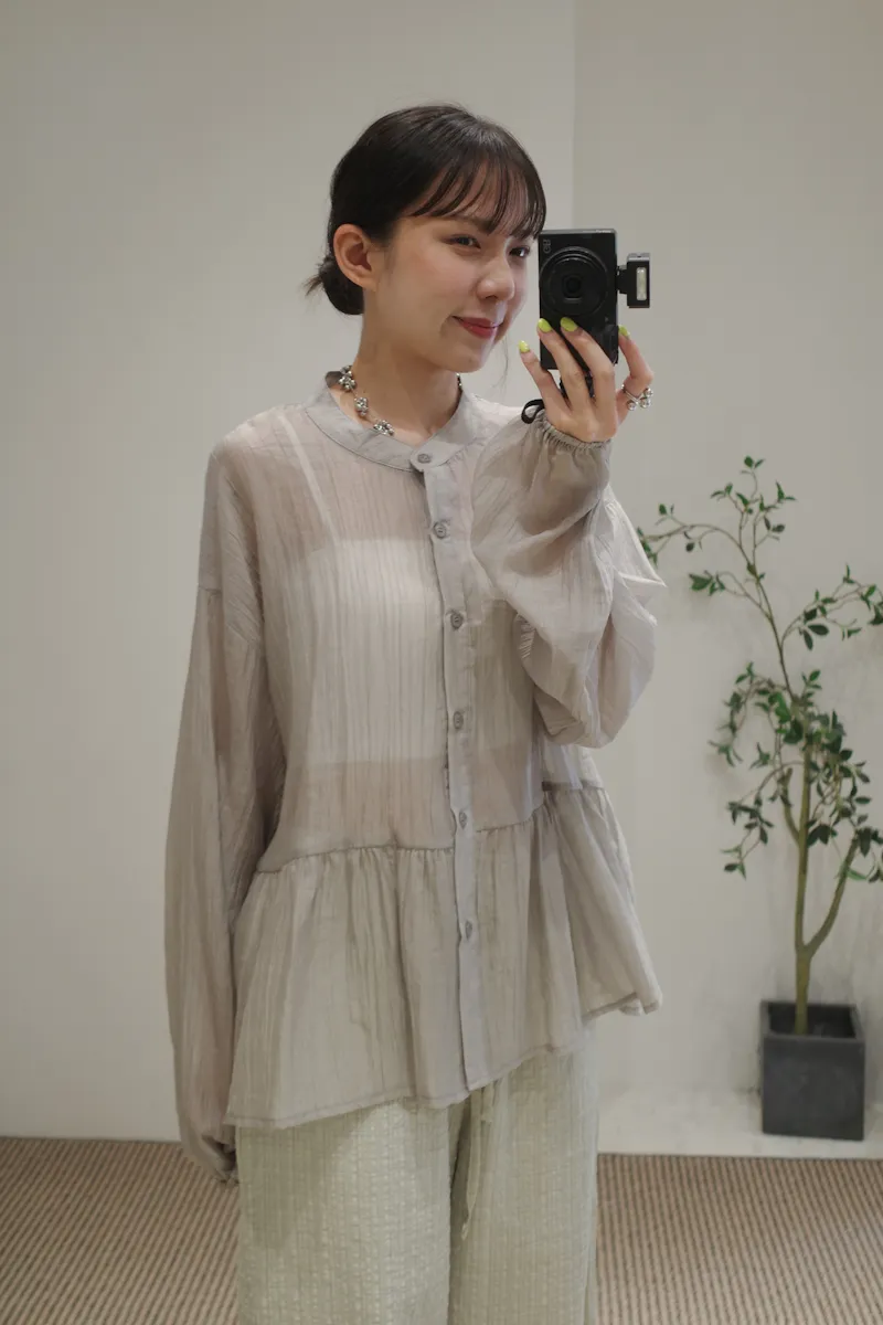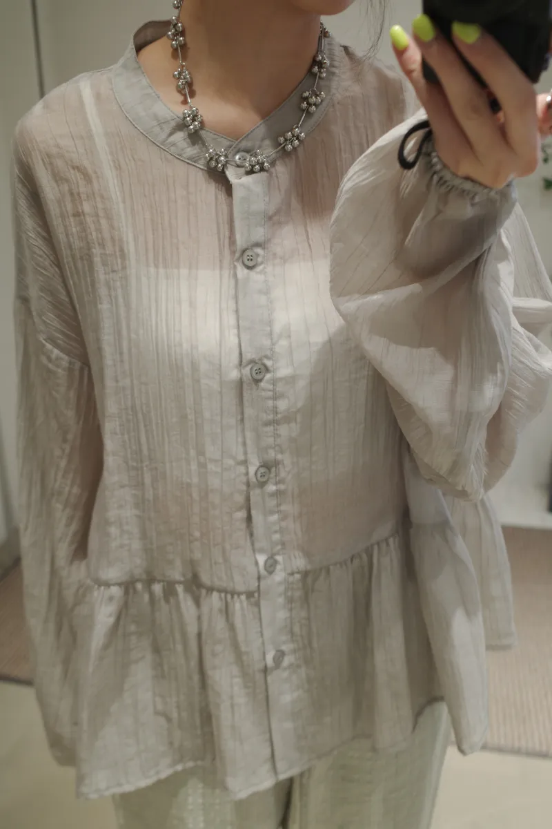 排釦可開,手袖鬆緊帶,下擺前短後長,棉花糖可