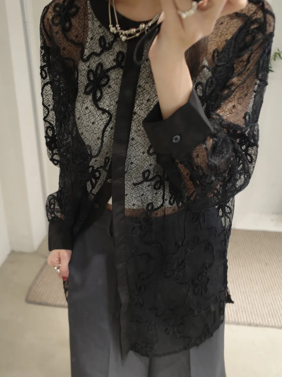 早秋蕾絲勾花襯衫外套 2color