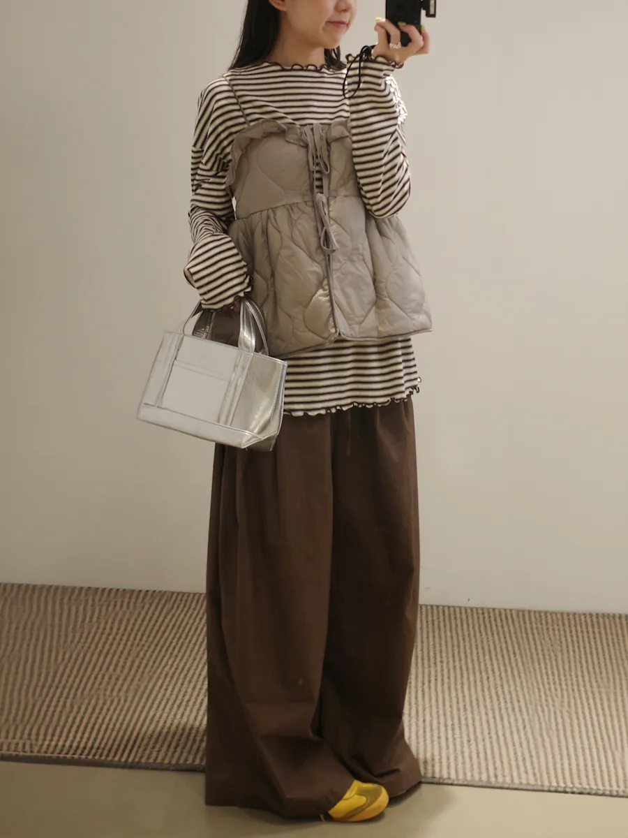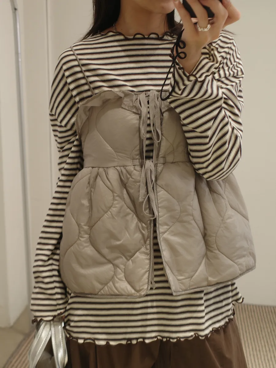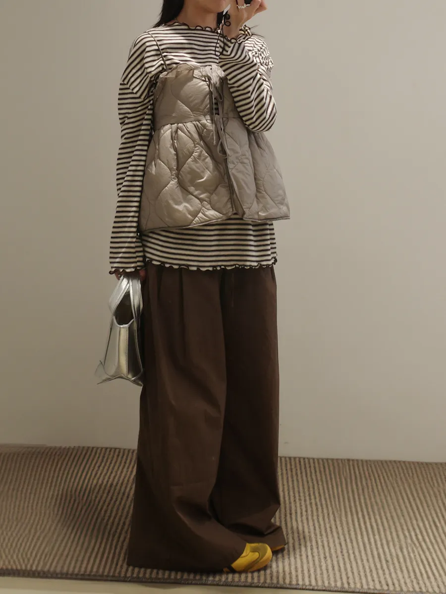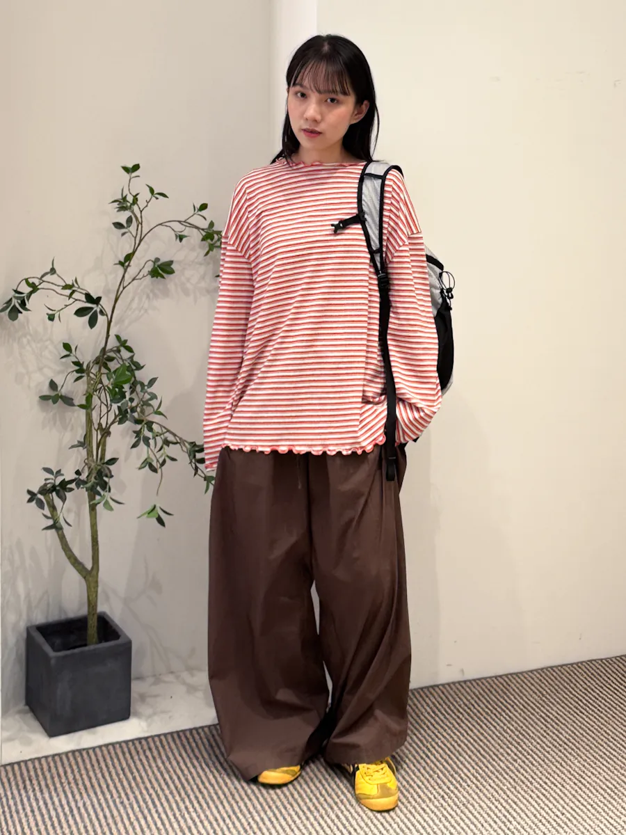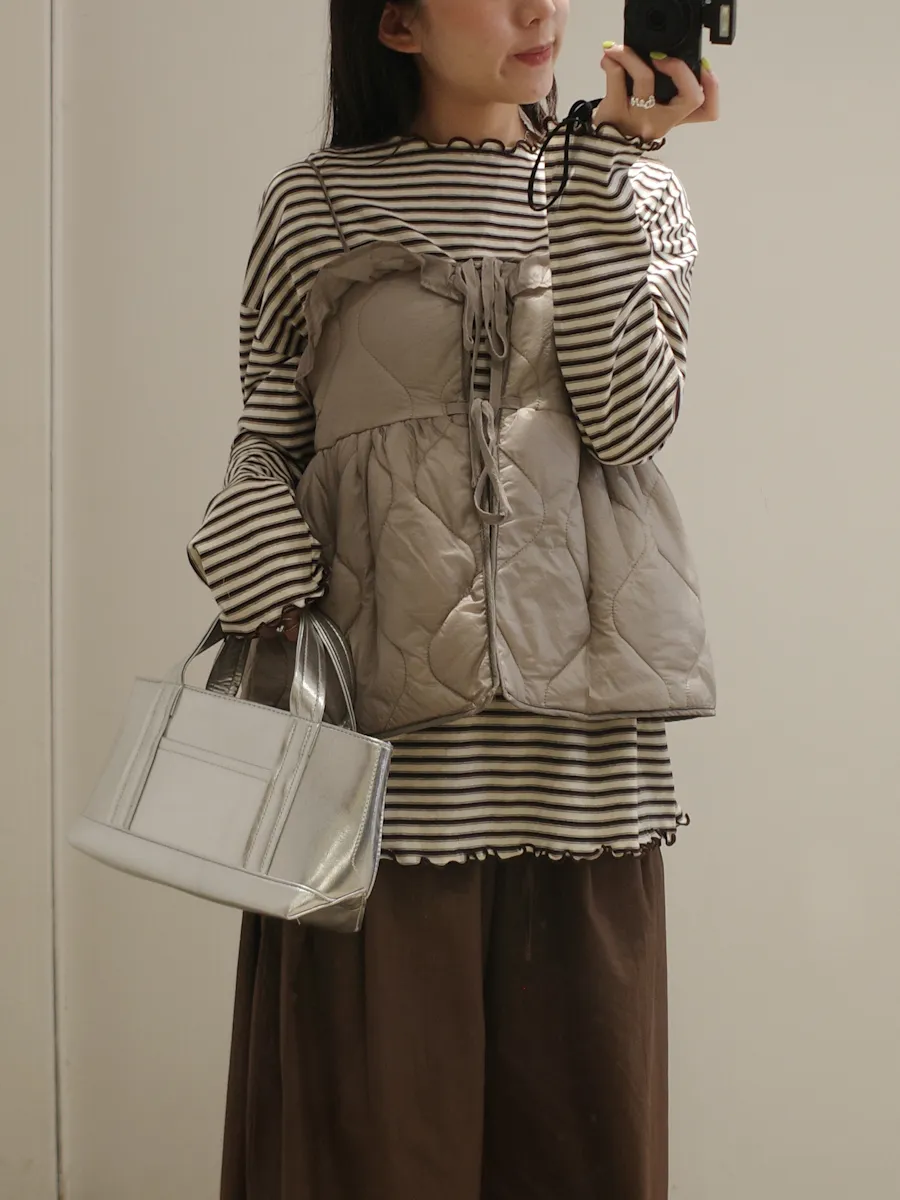 早秋花瓣滾邊橫條紋長袖上衣 2color