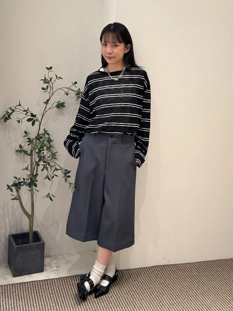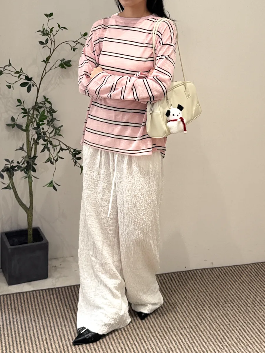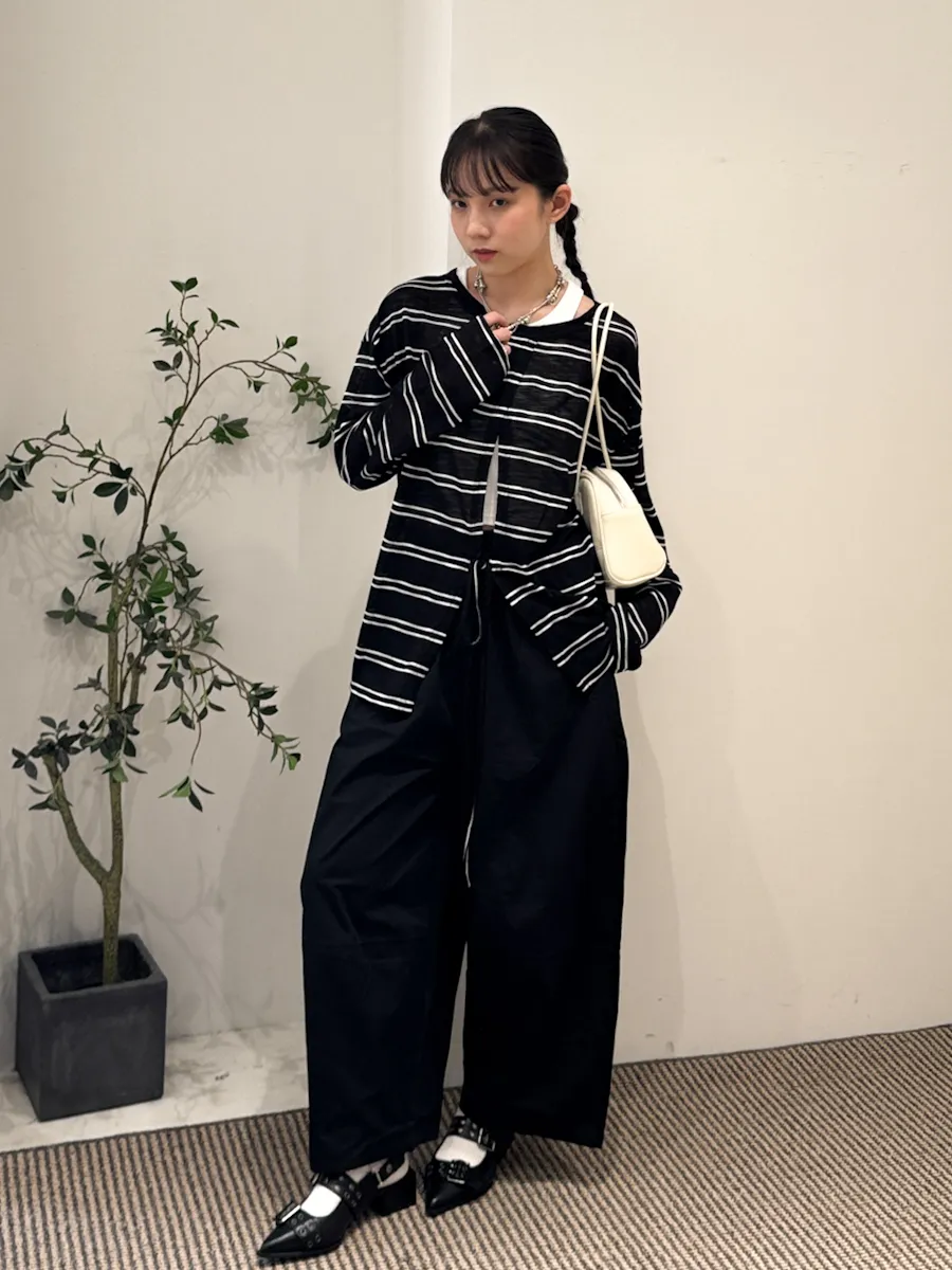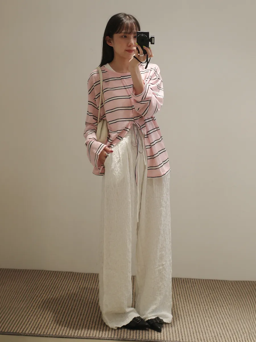 早秋橫條開衩薄針織長袖上衣 3color