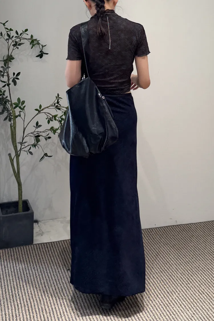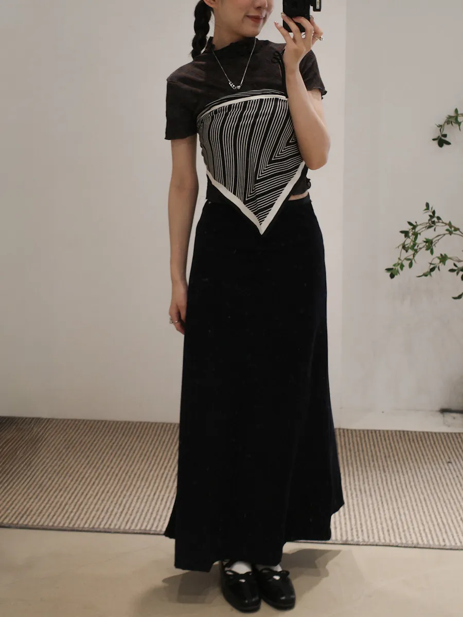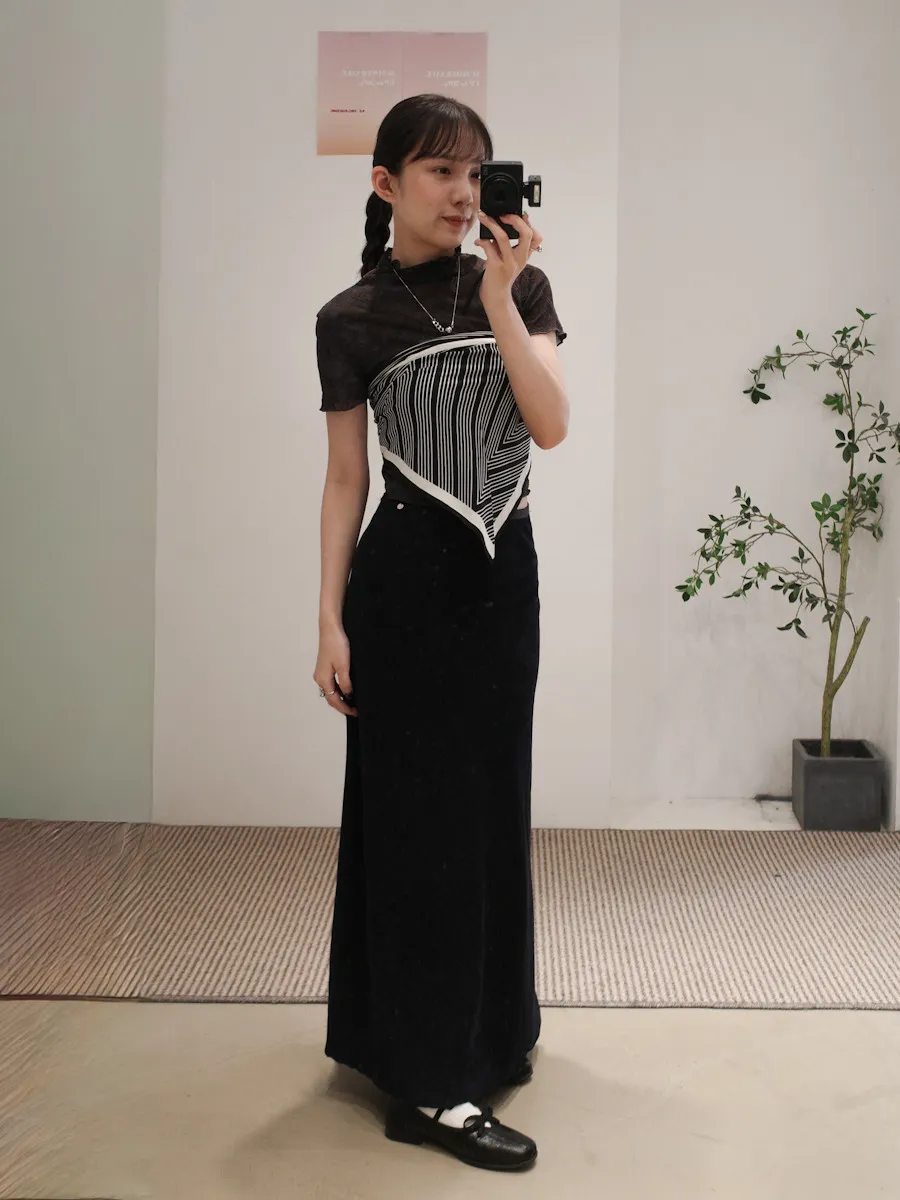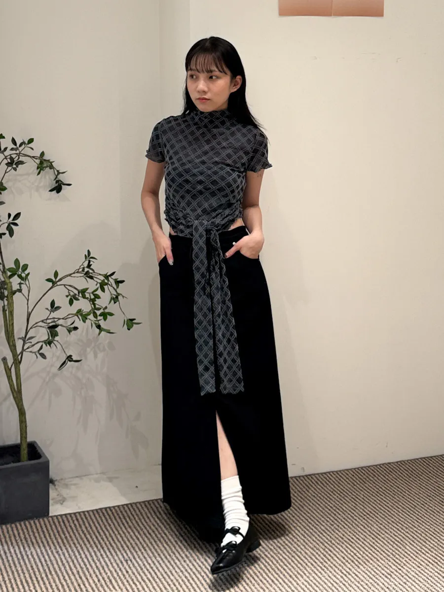 紗質半高領線格紋路短袖上衣 2color