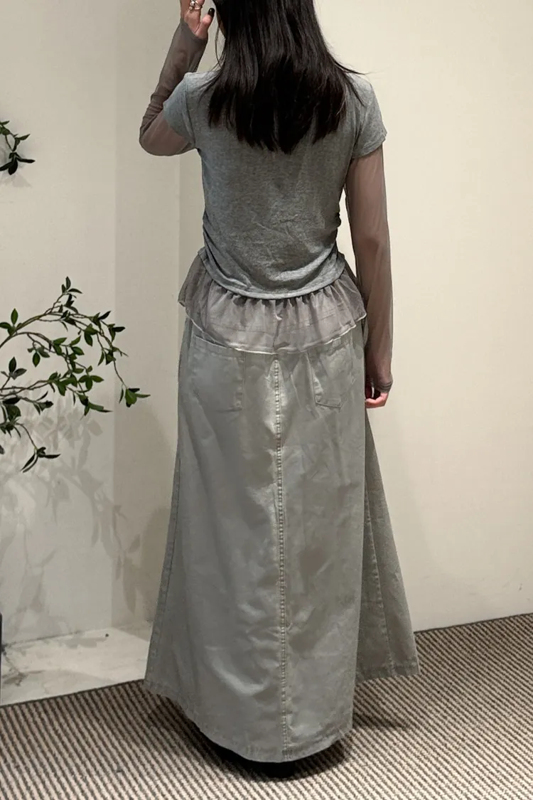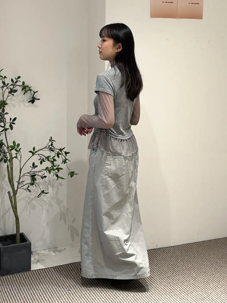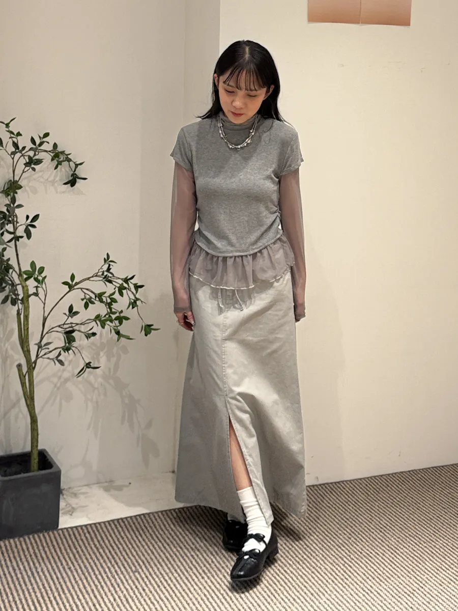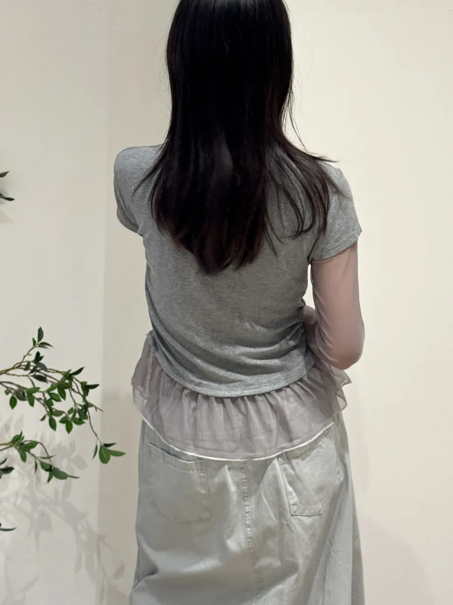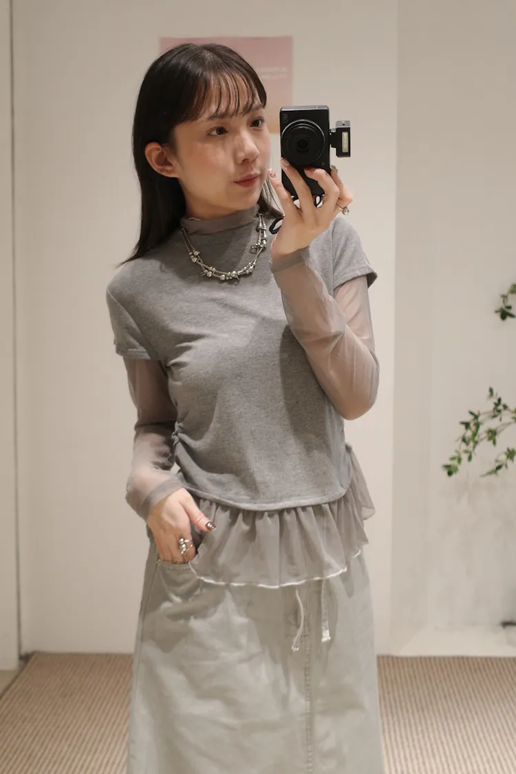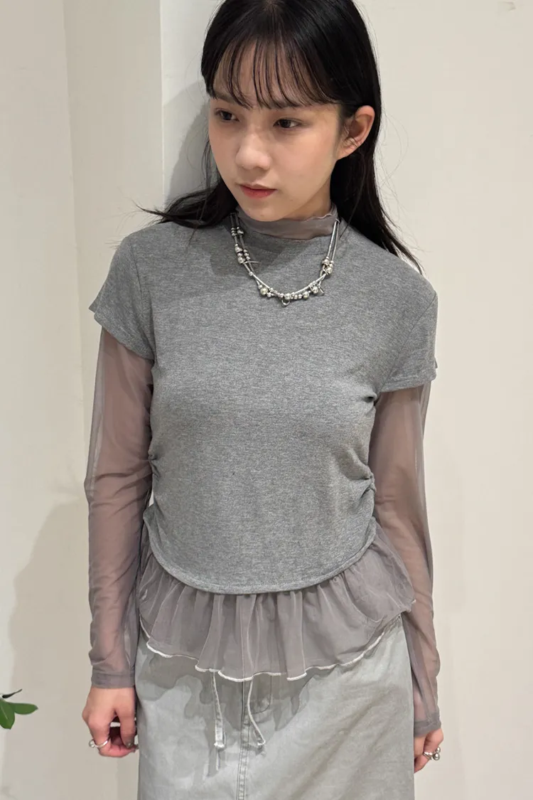 假兩件式拼接紗,側腰抓皺,有彈性