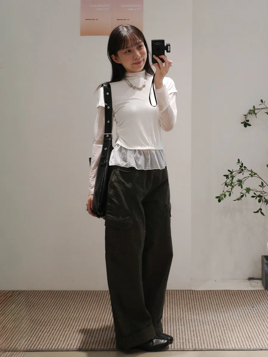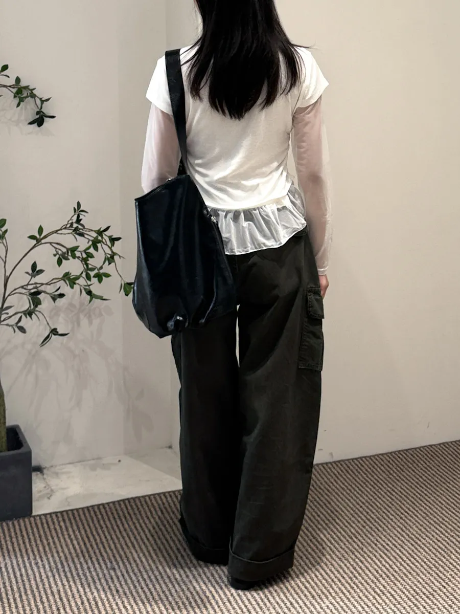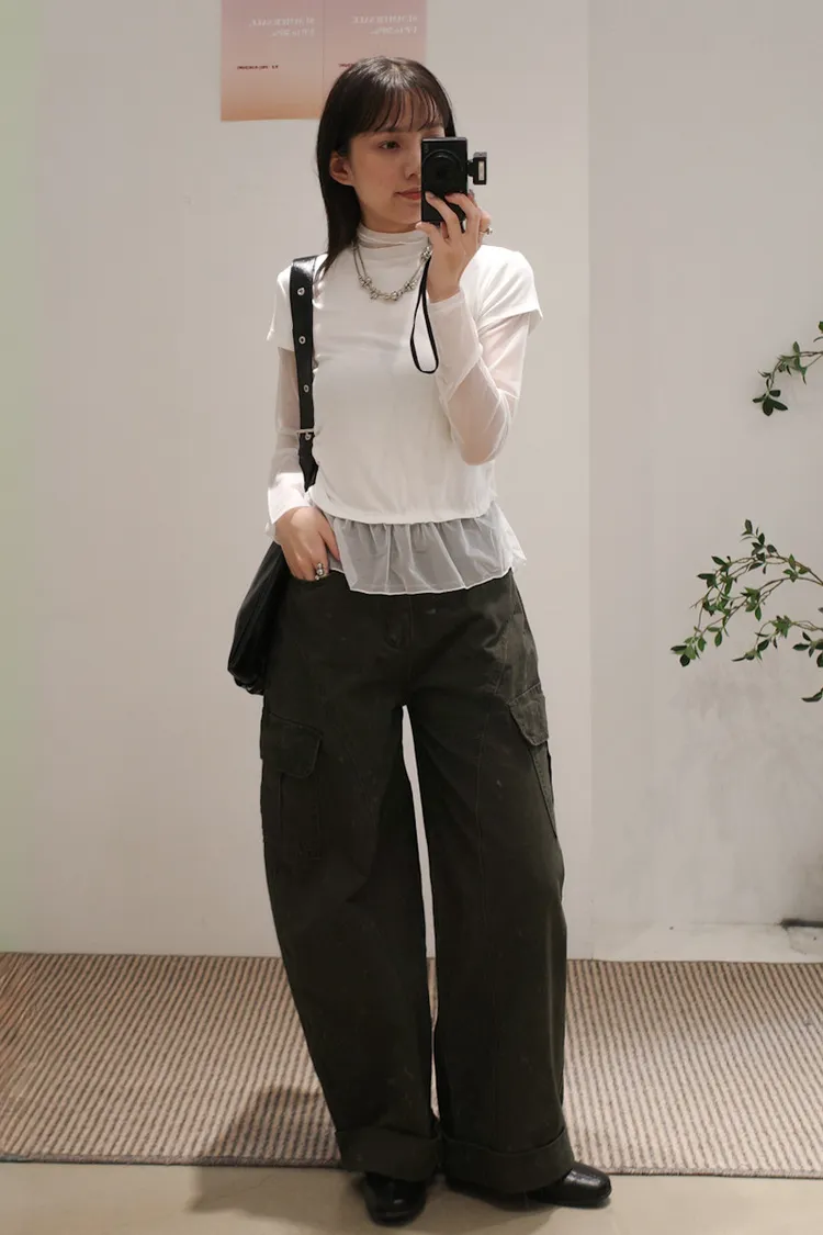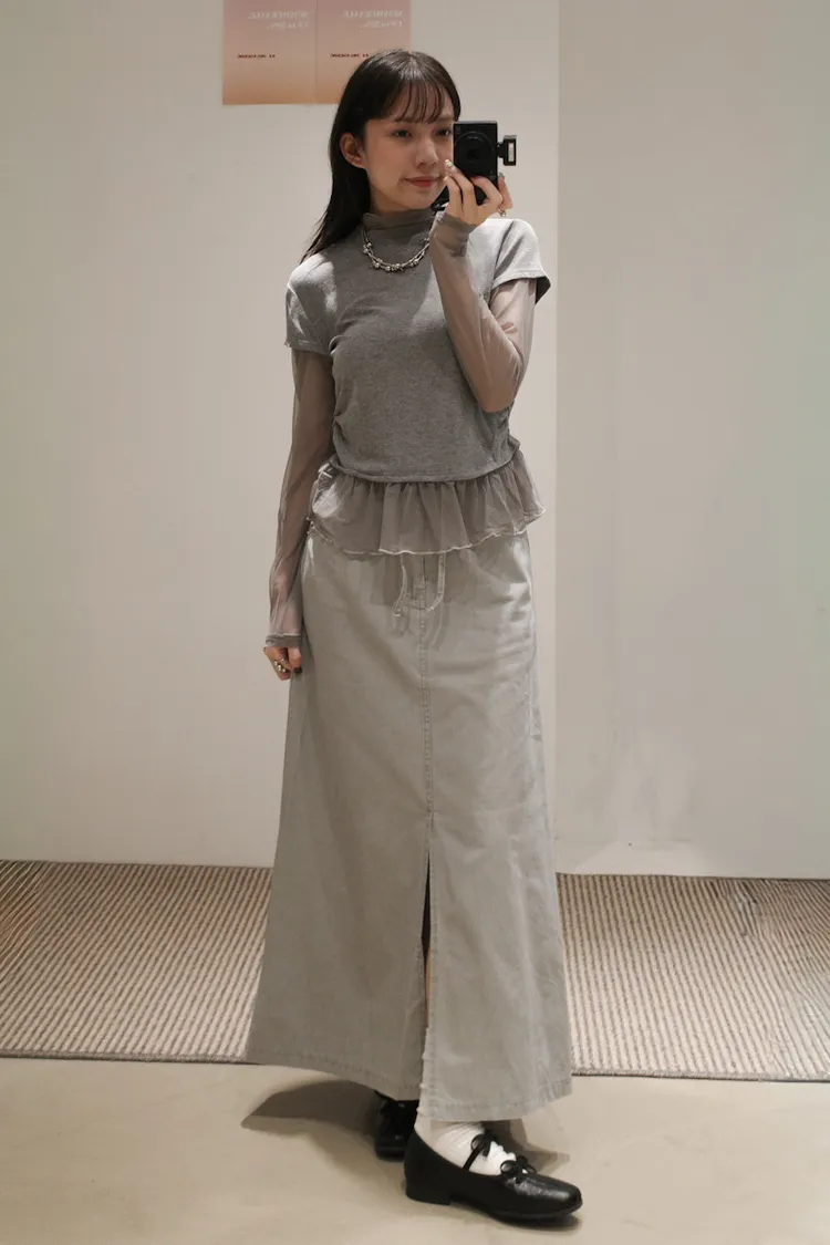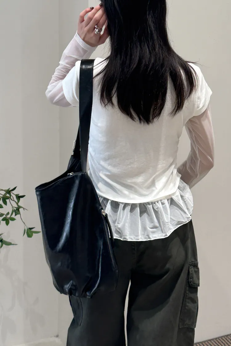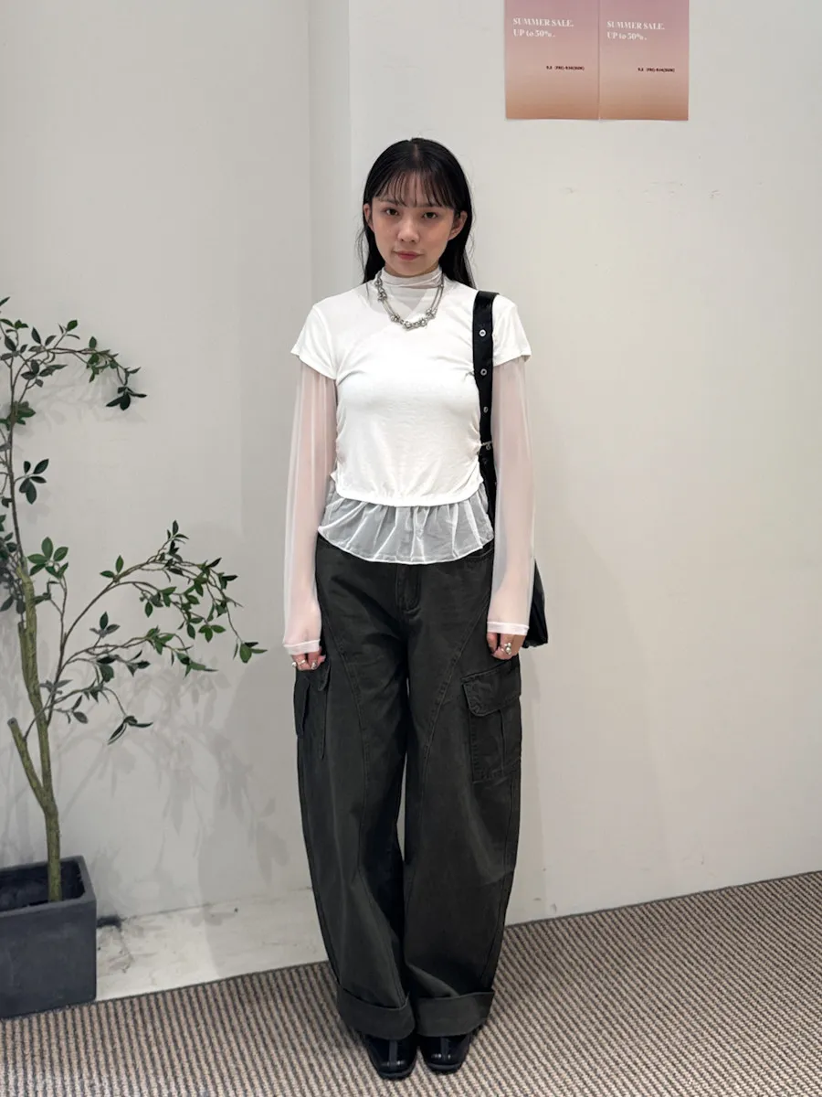 假兩件式拼接紗,側腰抓皺,有彈性