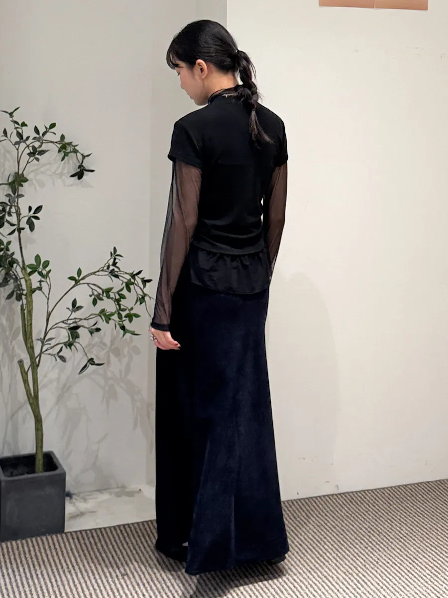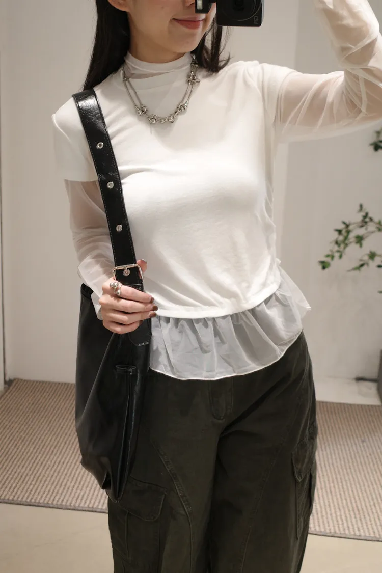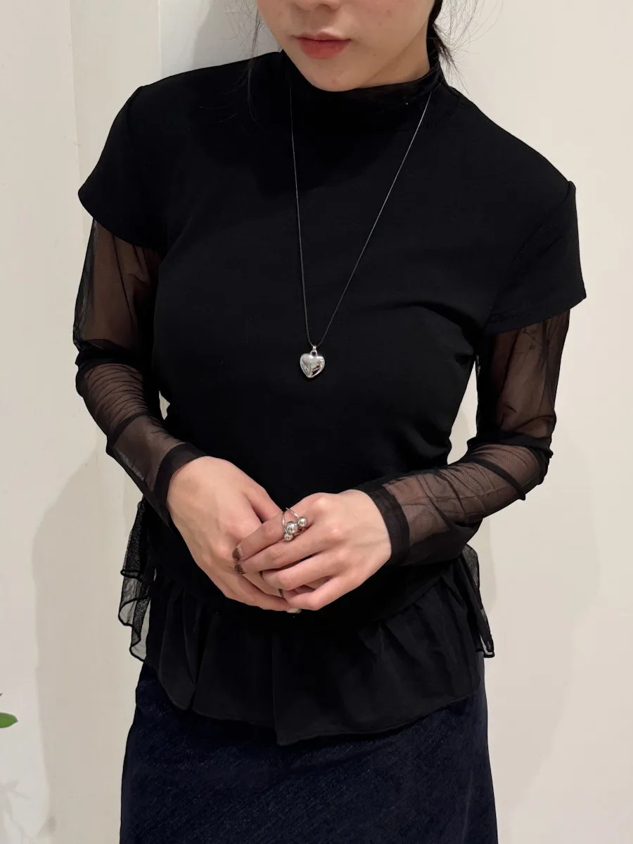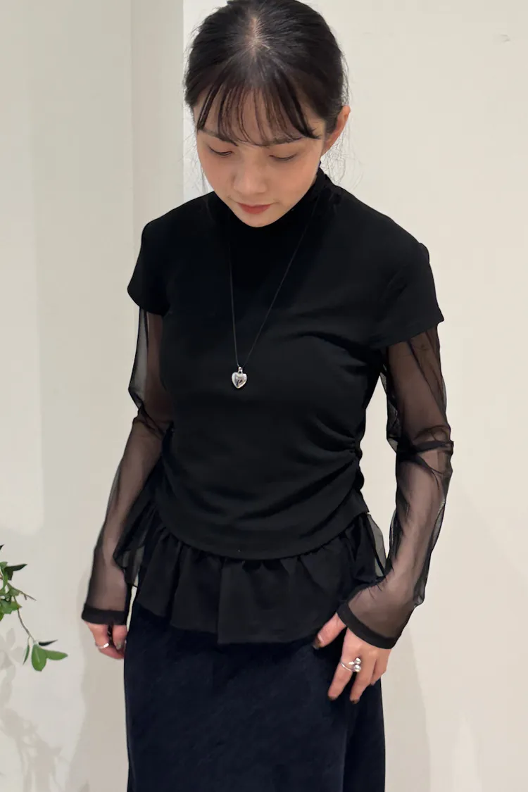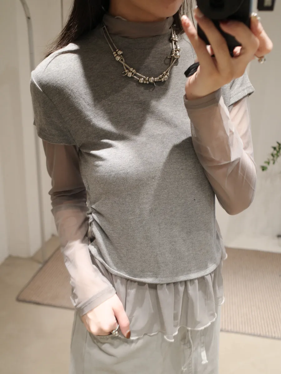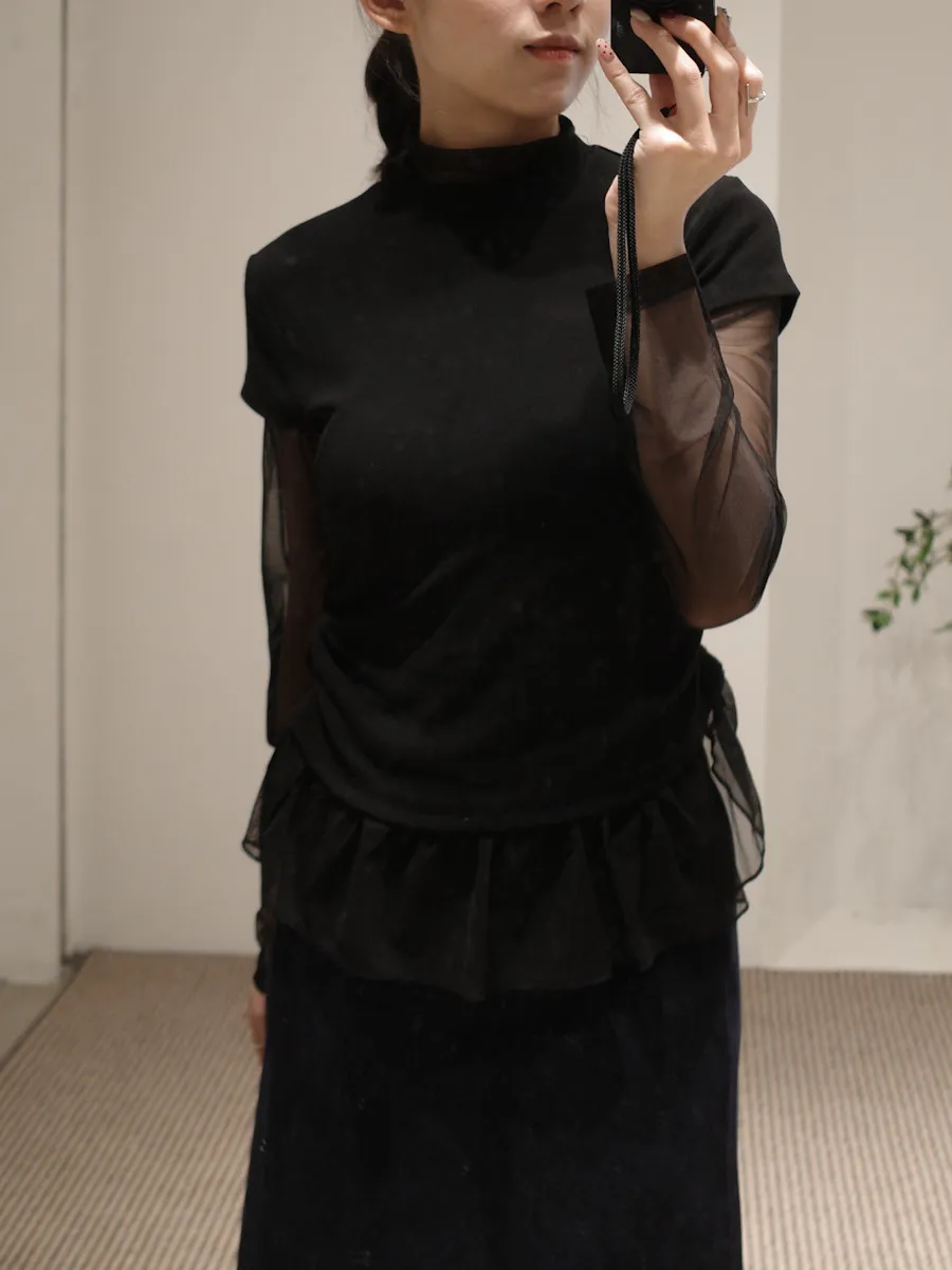 立領拼接紗彈性上衣 3color