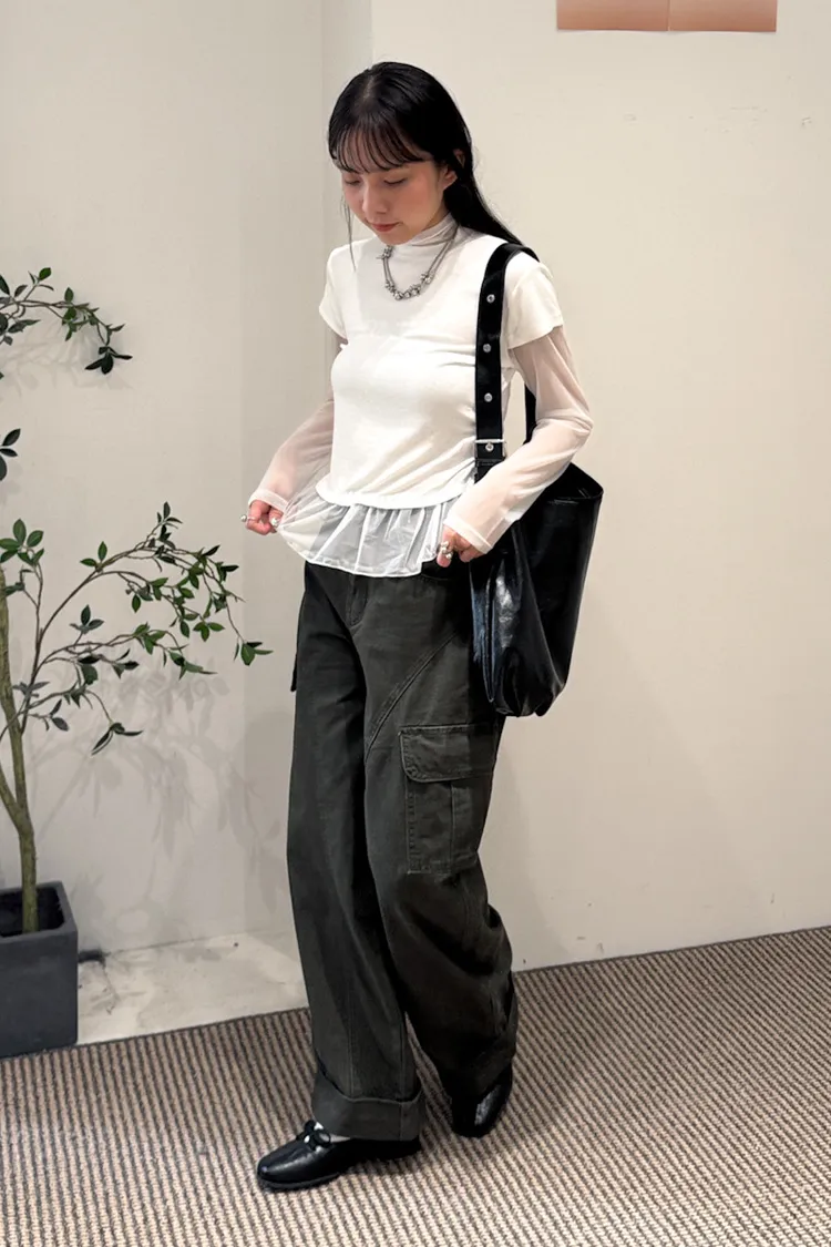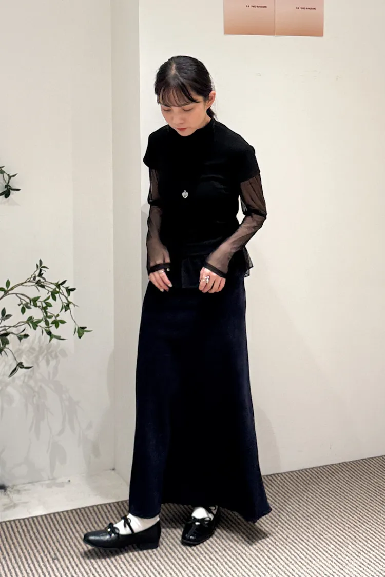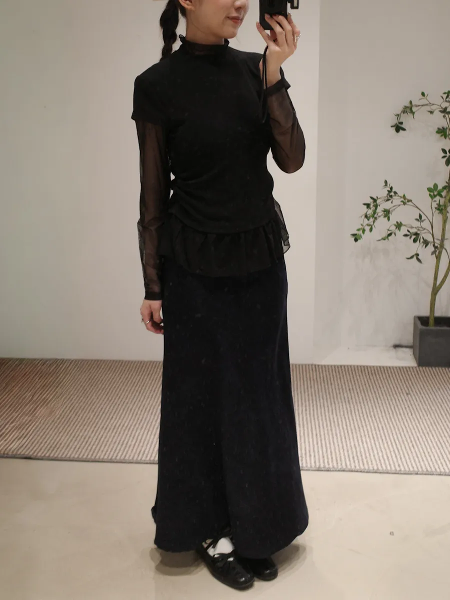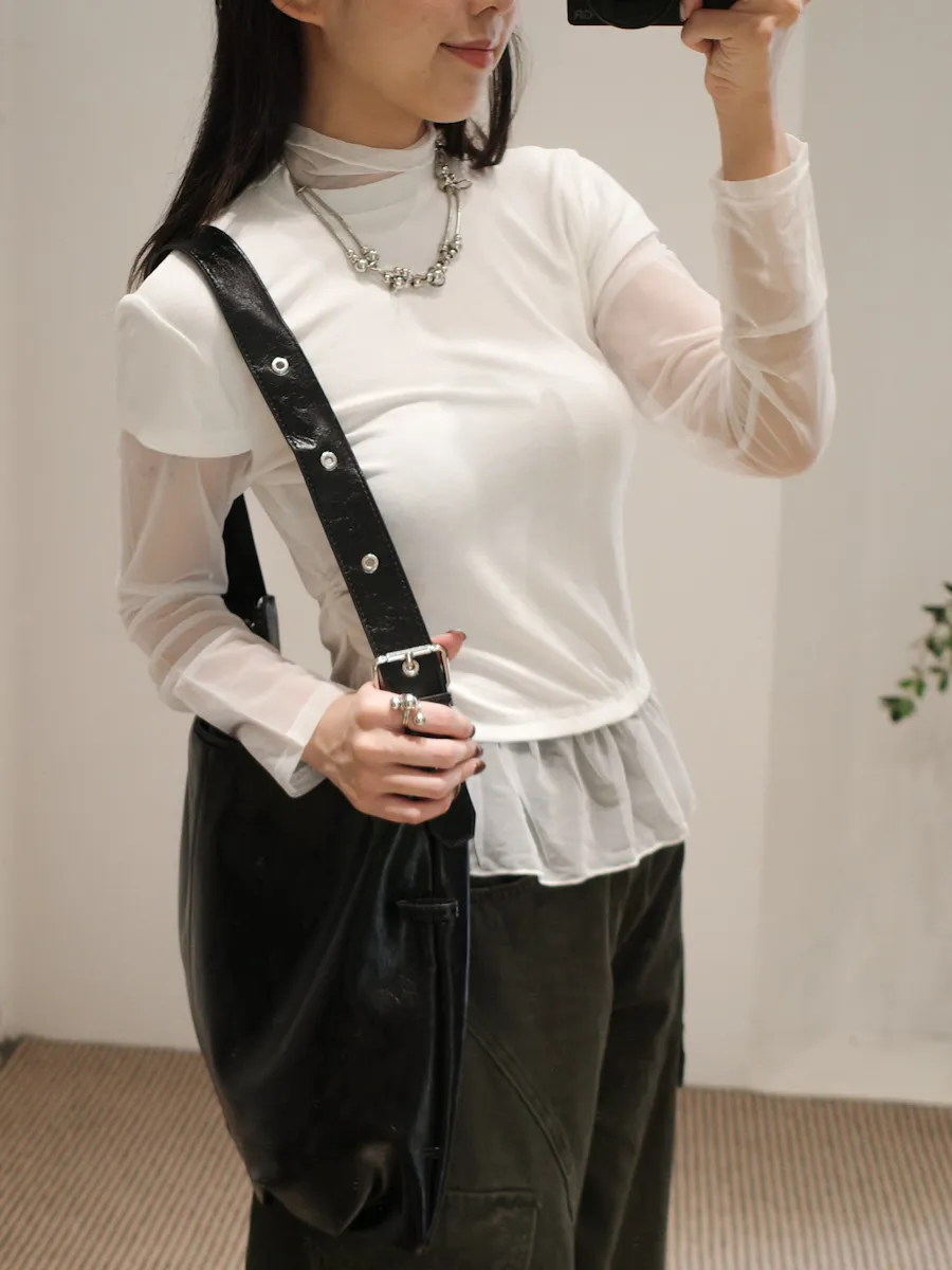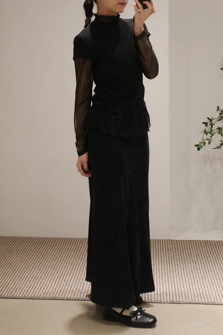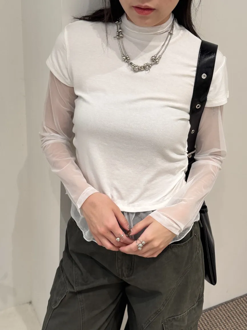 立領拼接紗彈性上衣 3color