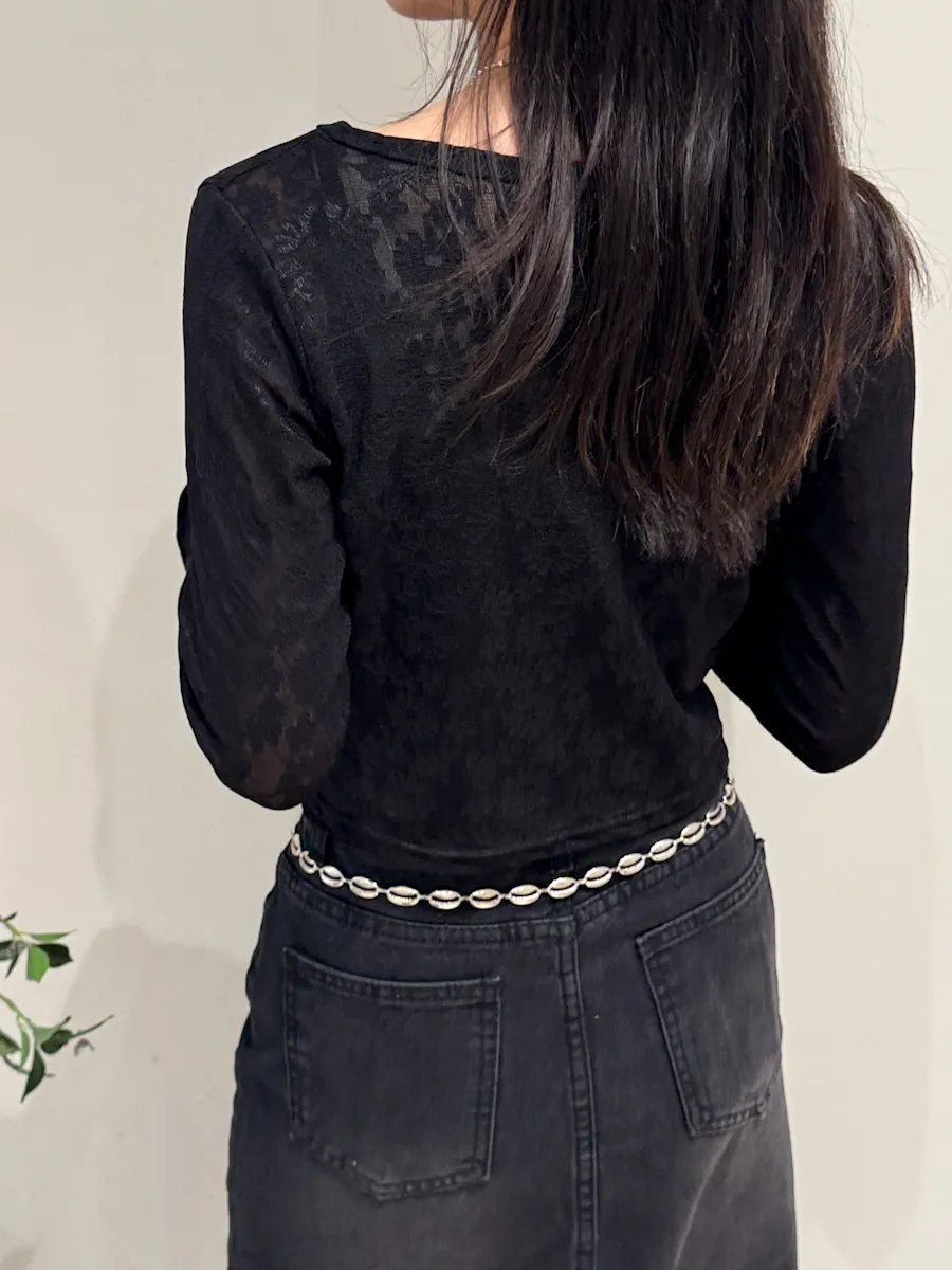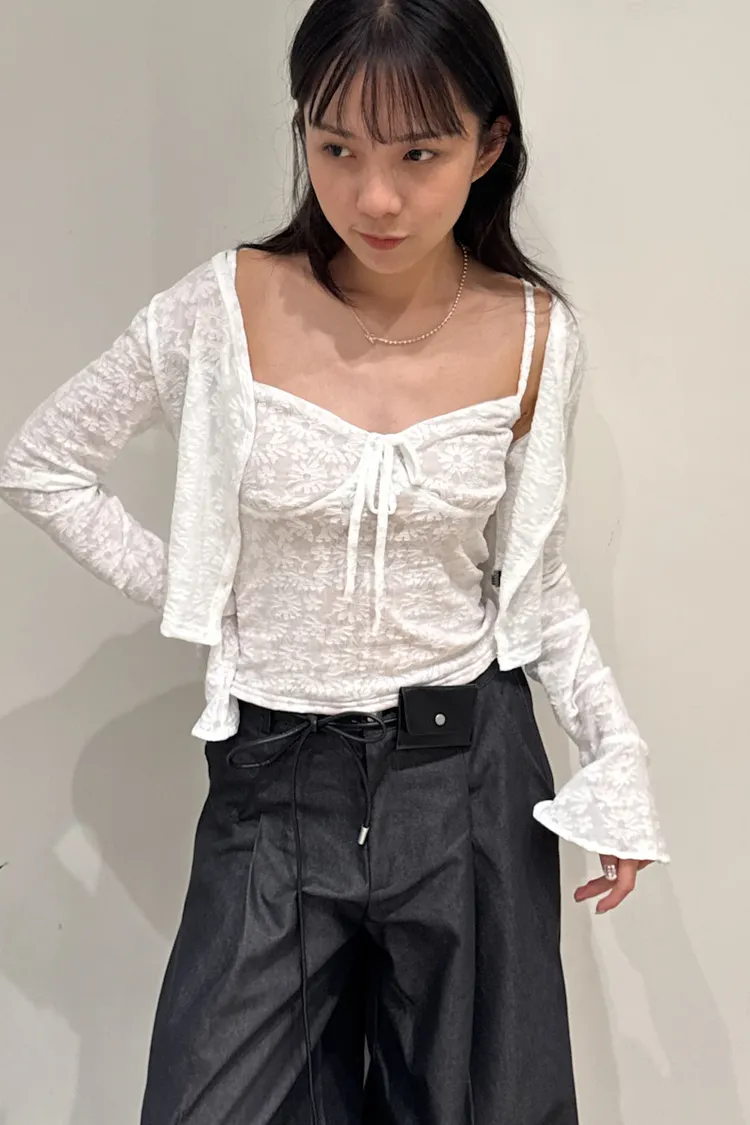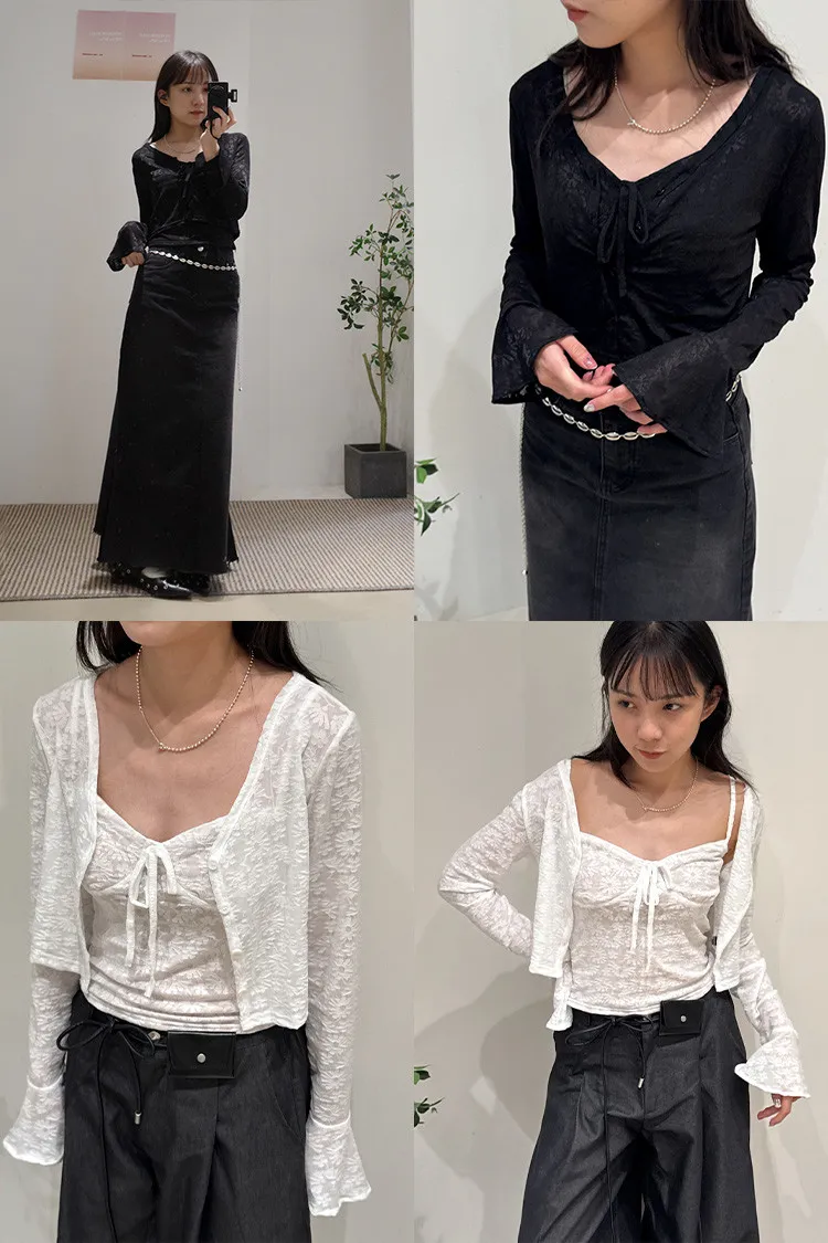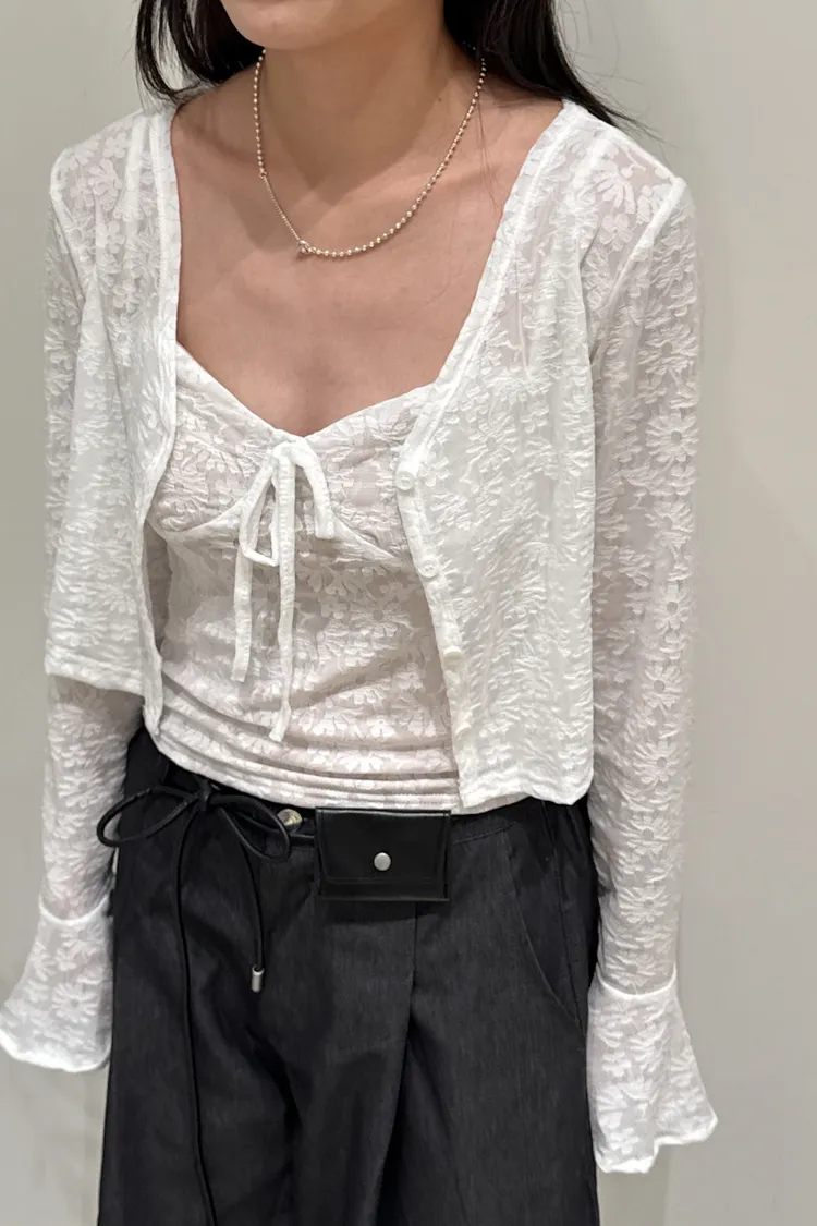 眺望首爾塔蕾絲排釦外罩+背心 2color