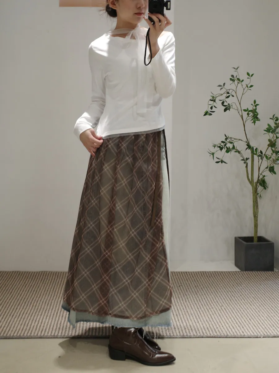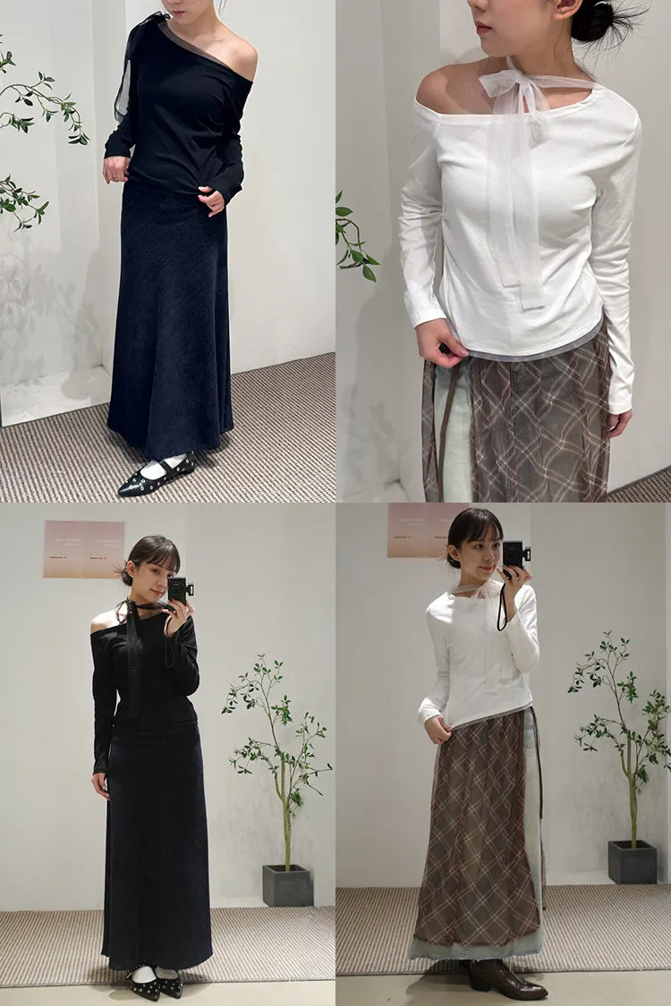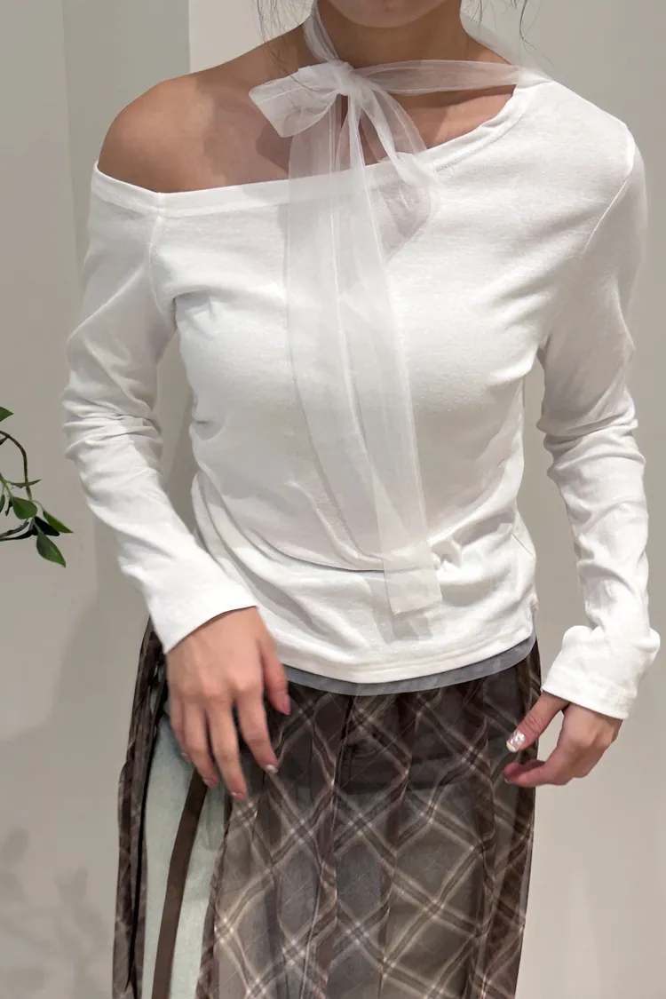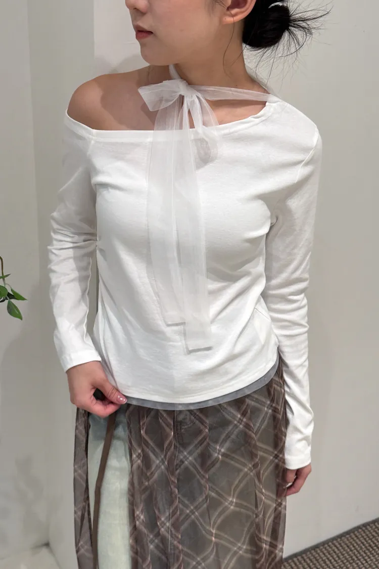 浪漫約會雪紡紗拼接領巾上衣 2color