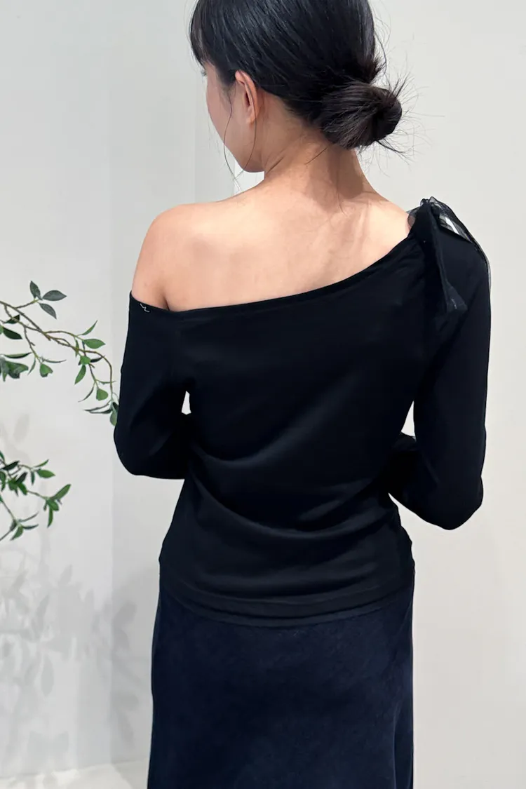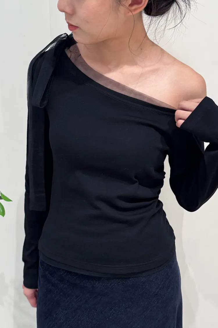 有彈性,拚接紗,單邊側腰抓皺,可一字領