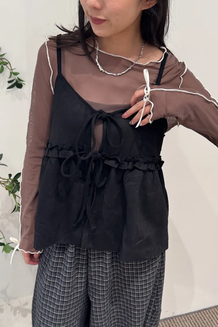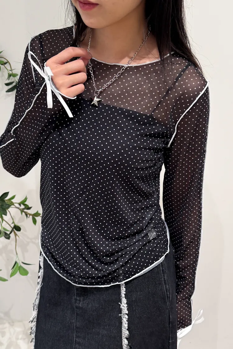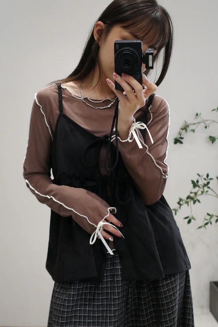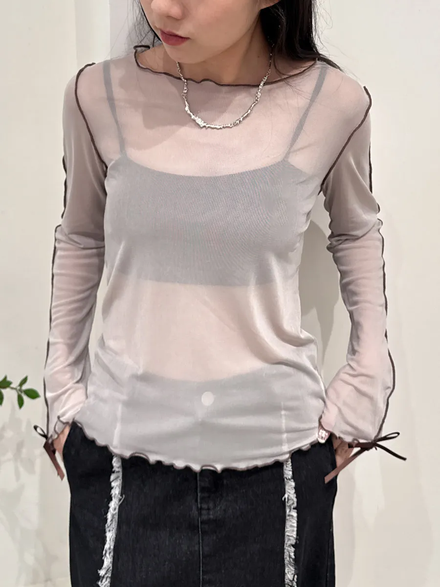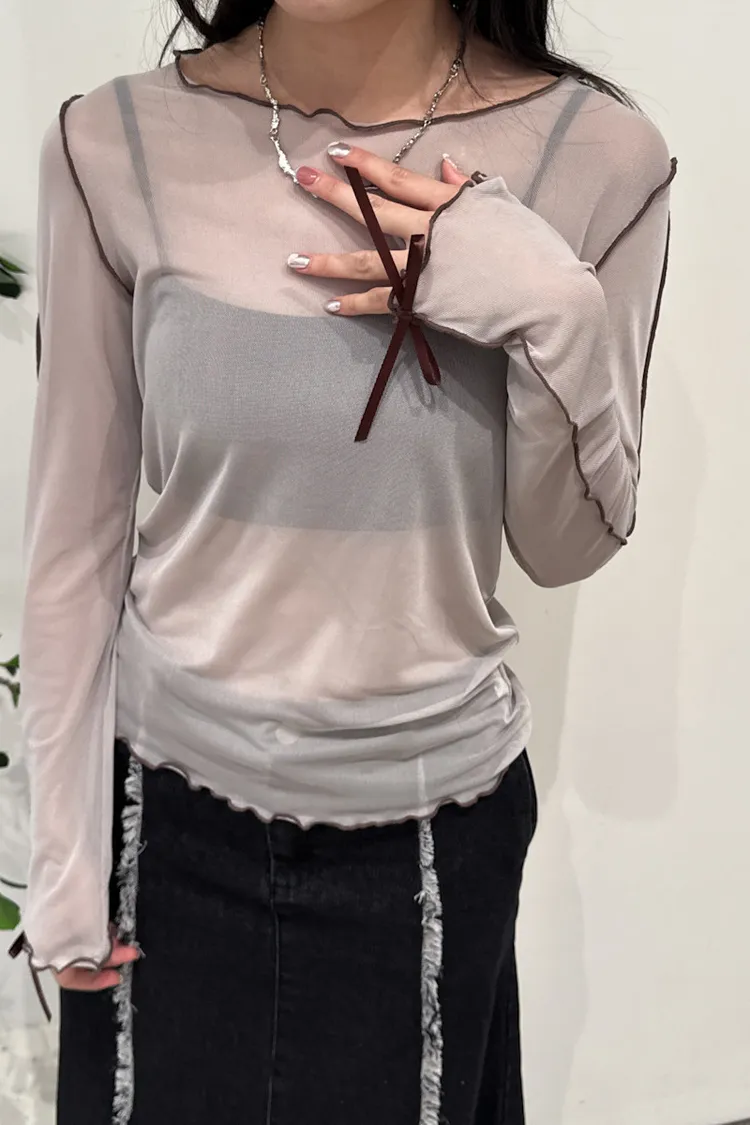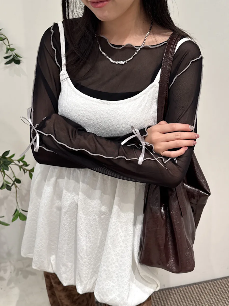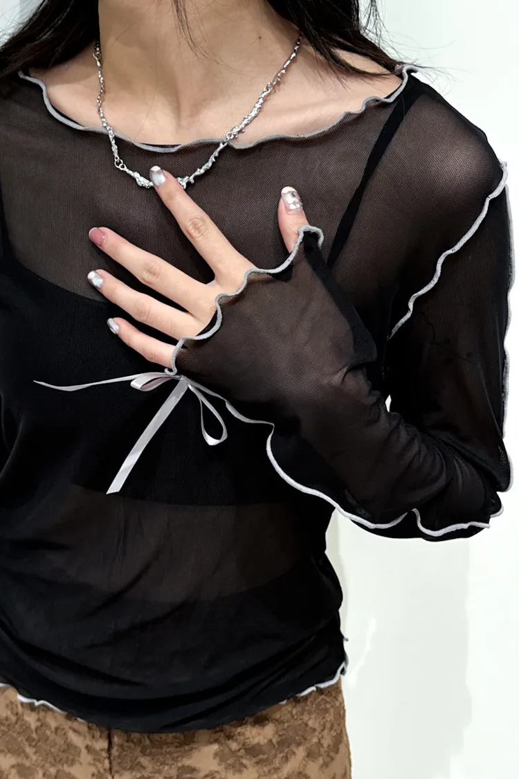日系線條透膚造型緞帶長袖上衣2.0 7color