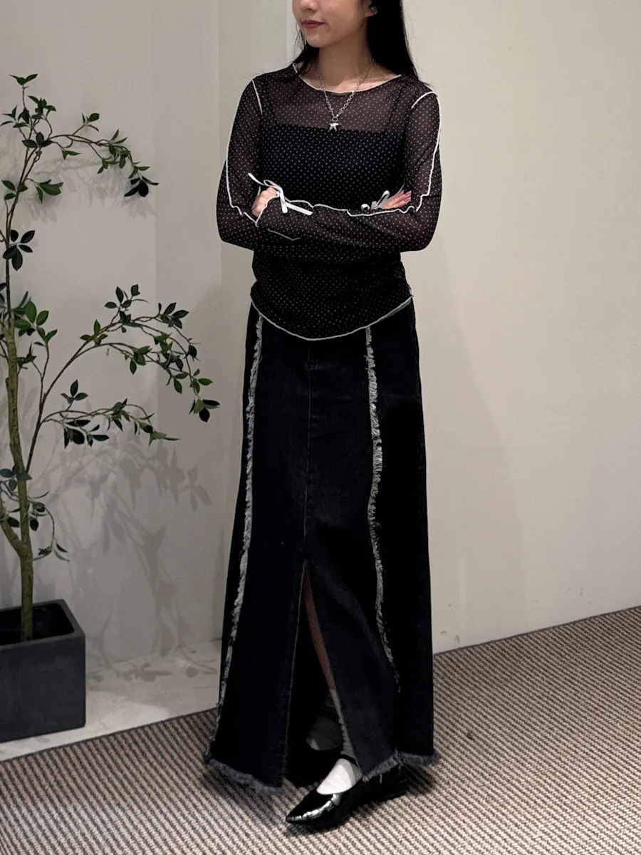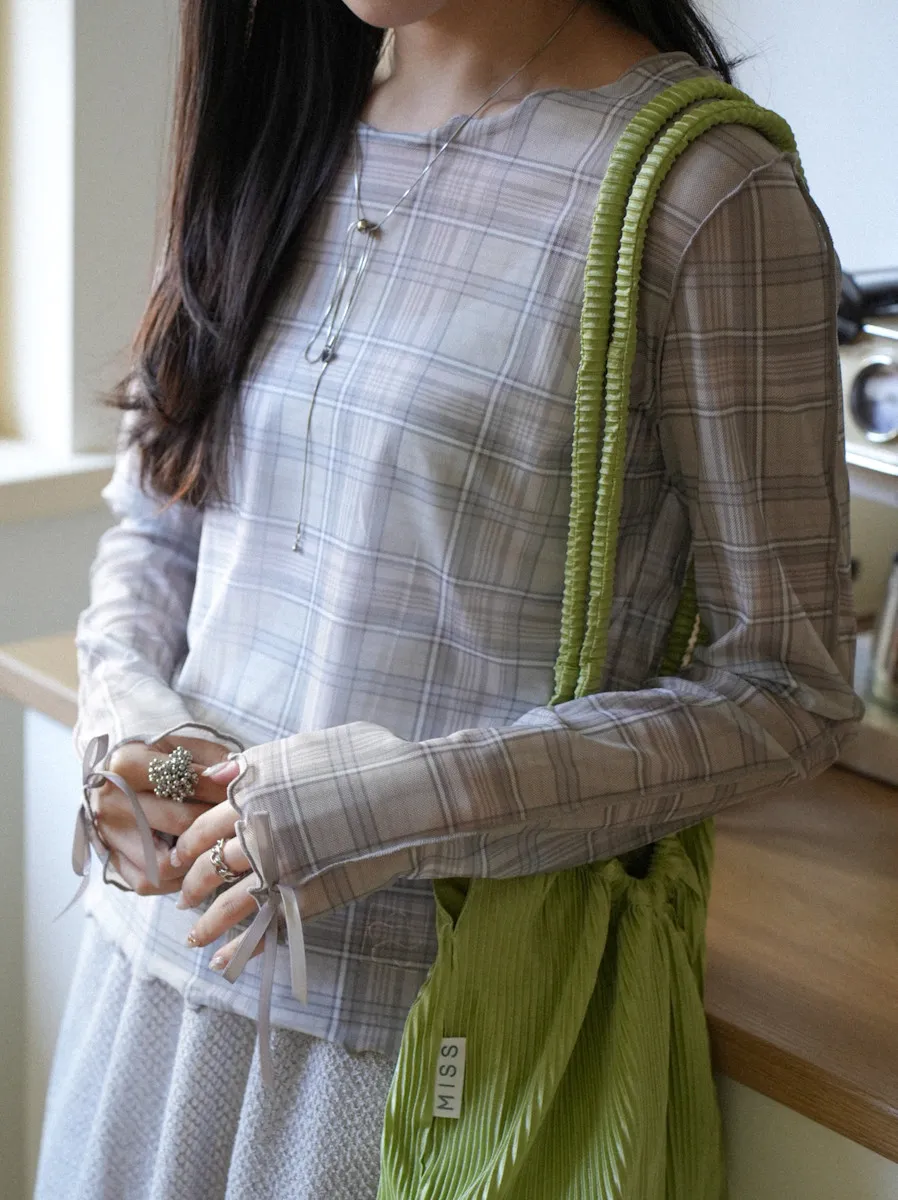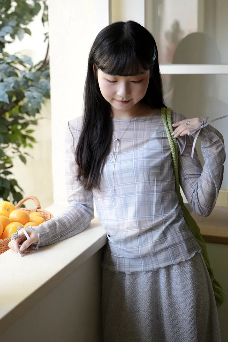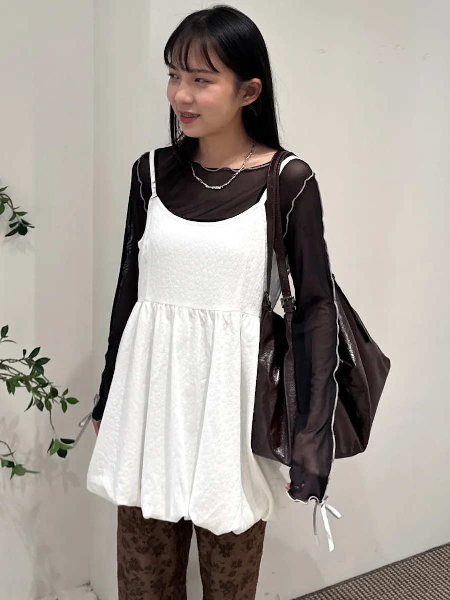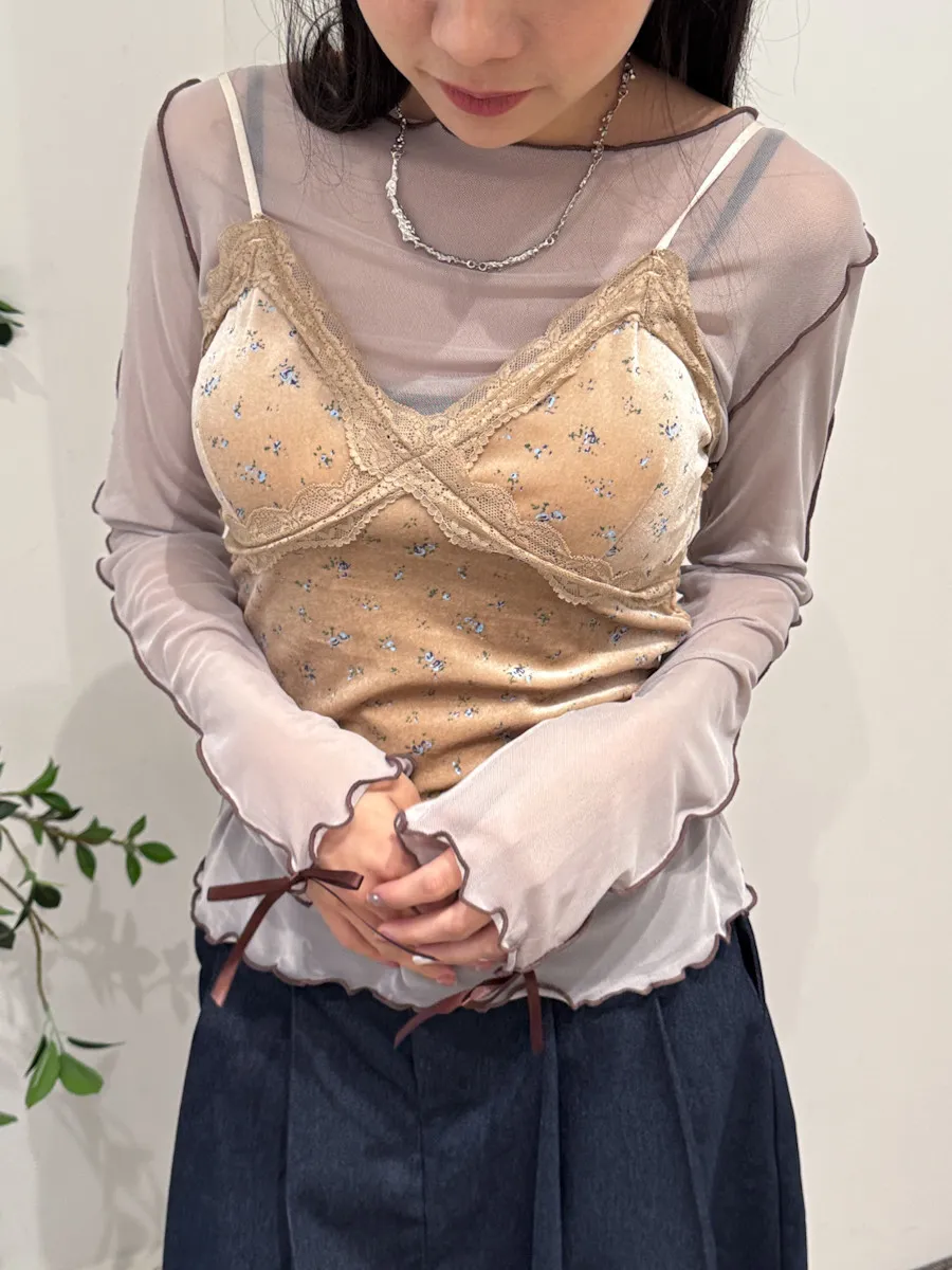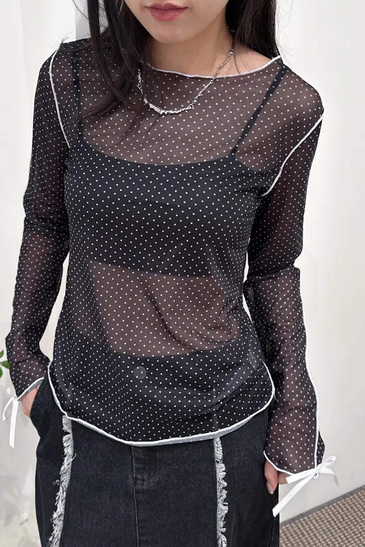 日系線條透膚造型緞帶長袖上衣2.0 7color
